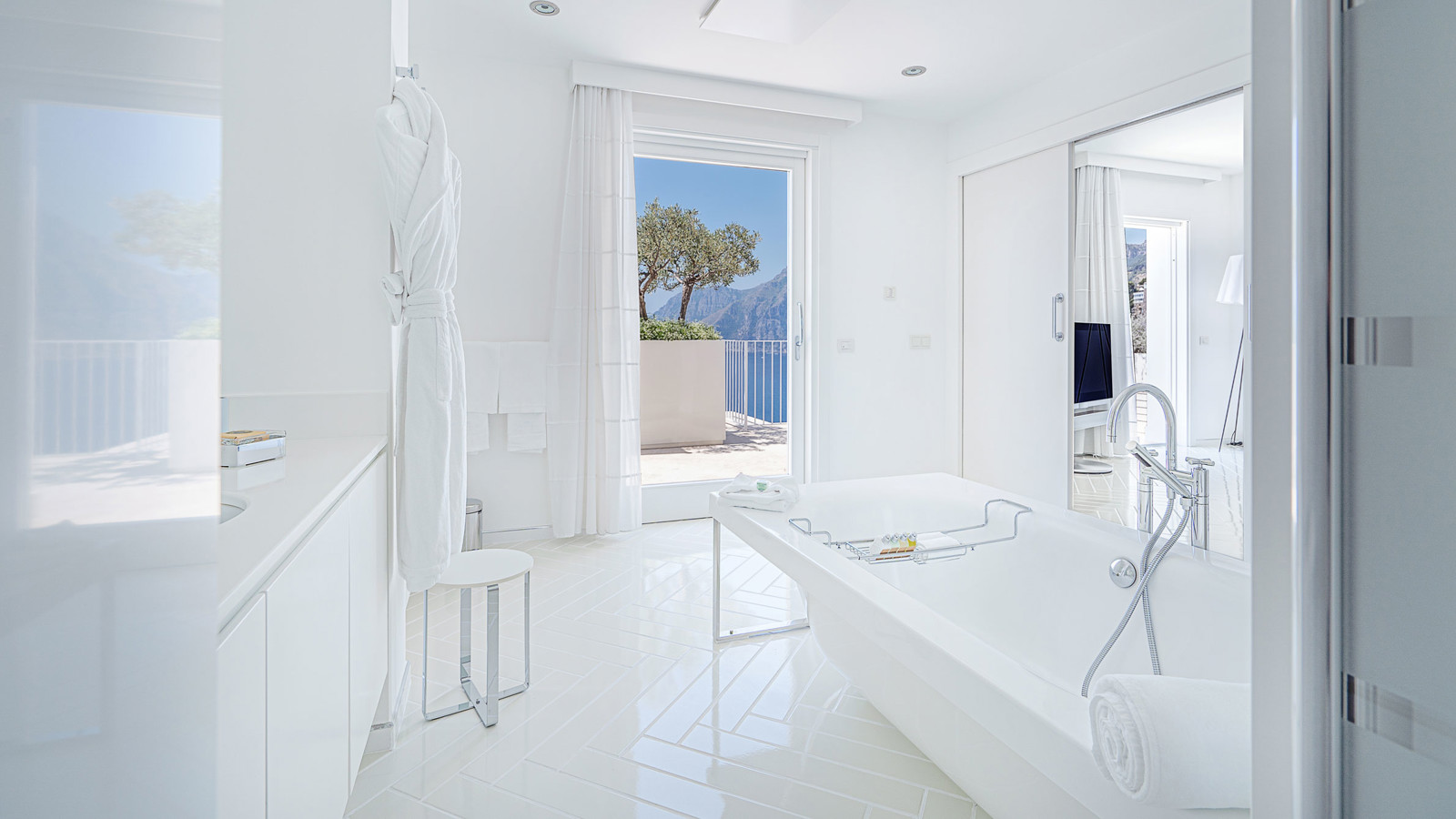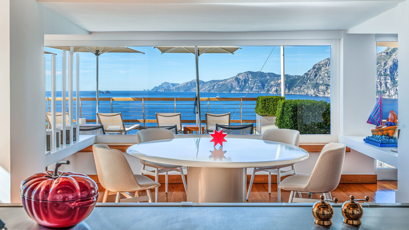 Vitt, vitt, vitt och vansinnigt vackert! Den vitputsade fasaden och den genomgående vita inredningen skapar en romantisk kontrast mot det djupblå Medelhavet och himlen. Casa Angelinas medvetna färgval och sobra miljö är en del av hotellets exklusiva koncept - liksom de välkomponerade menyerna, vinsortimentet och hotellets unika konstverk. Rummen är bekväma, välutrustade och läckert inredda helt i vitt för att framhäva utsikten. Hotellet är vackert beläget på en kulle med utsikt över Medelhavet och den charmiga staden Praiano som ligger mellan Amalfi och Positano. Efter en skön dag vid poolen eller hotellets privata strand, kan ni utforska alla pittoreska gränder, unika små butiker och det rika utbudet av små mysiga barer och restauranger.