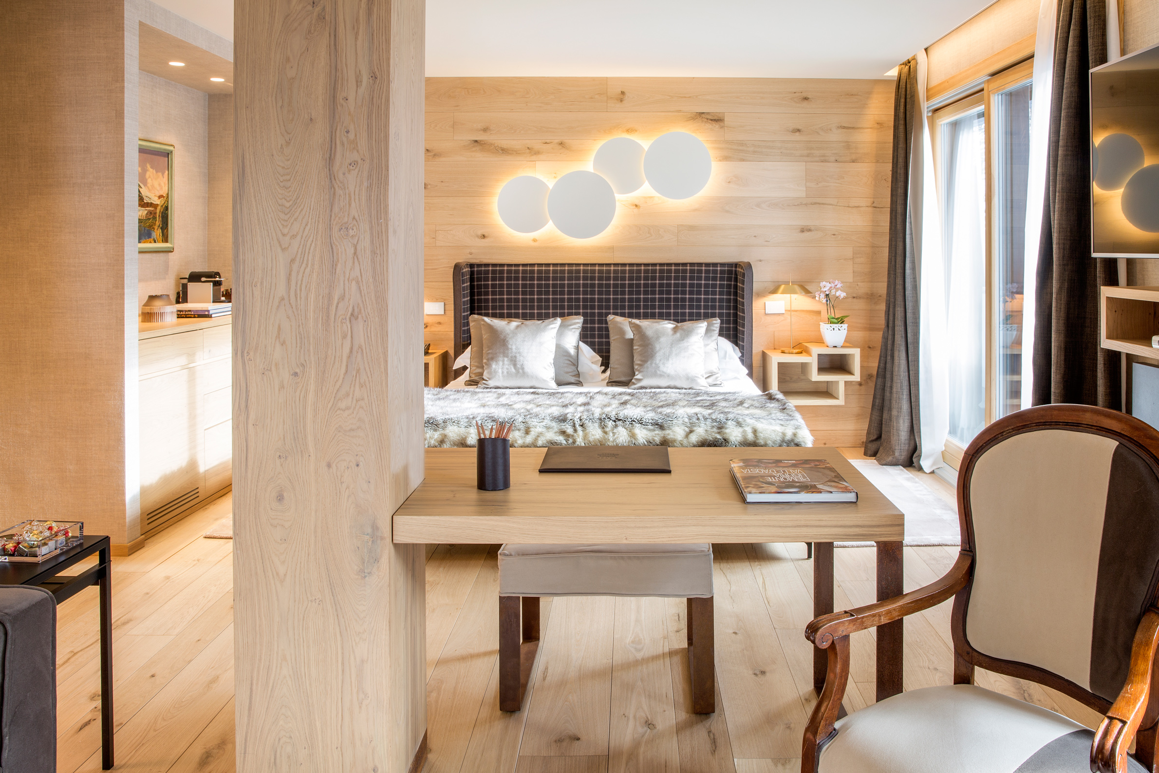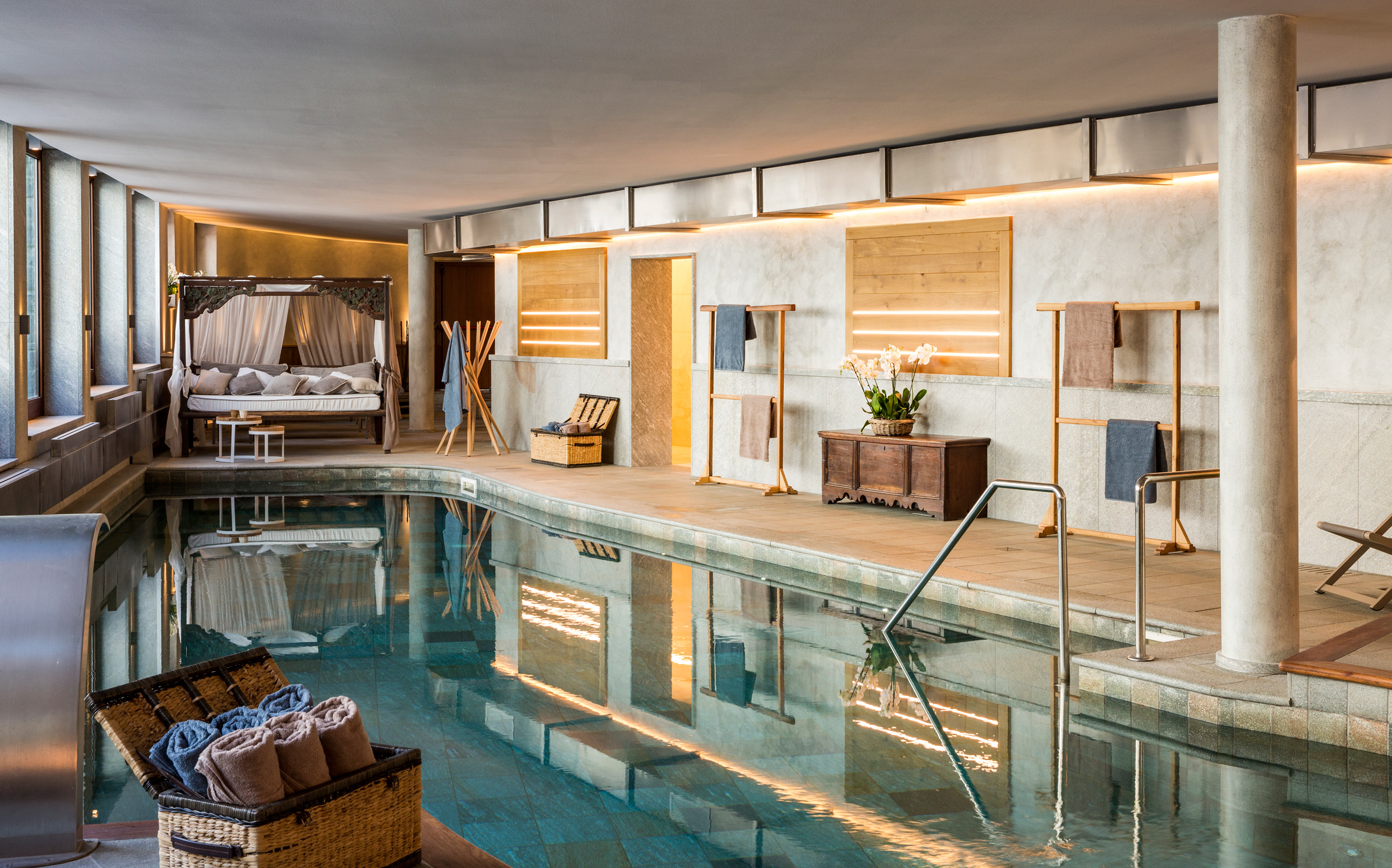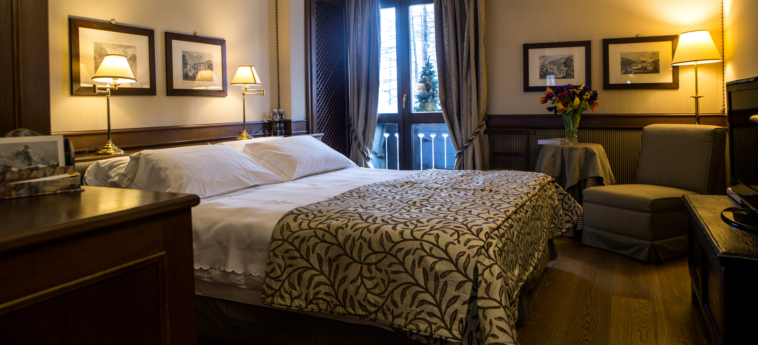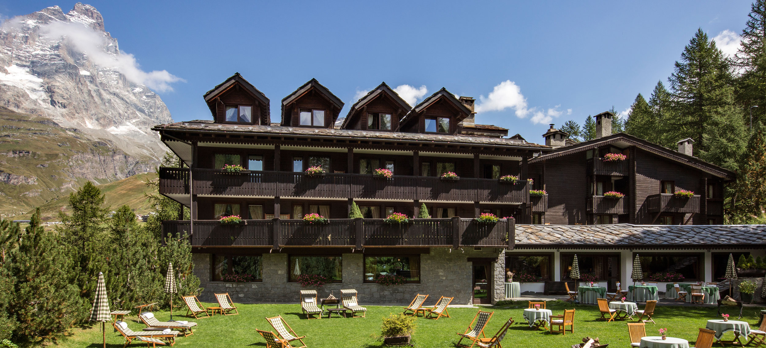Cervinia på södra sidan av spetsiga Matterhorn är en av de högst belägna skidorterna i världen och erbjuder nedfarter i två länder, Italien och Schweiz. Anrika Hermitage Hotel & Spa är en alpklassiker i traditionell stil med inredning i varma bruna träslag och ett underbart spa väntar efter långa dagar i eller off pist. Läget är det bästa, endast 300 meter från linbanan och en 10 minuters promenad från nattlivet i byn. Berömda The Whymper Suite är utformad som en egen chalet och har en fantastisk utsikt över världens kanske vackraste och mest fascinerande berg. Rum och sviter är alla klassiskt inredda med stämningsfulla trädetaljer, vackra tyger och antika möbler och målningar. Det är detaljerna som gör det. Som t.ex den stora öppna spisen i lobbyn har inte slocknat på över 50 år och den härliga inomhuspoolen har med sitt vackra vattenspel. Köket är för riktiga finsmakare där Chef Roberto Pession i restaurangen La Chandelle skapar raffinerade rätter från Aostadalen och Piemonte som hjortgryta, Taglioni Khorasan med kräftor, gnocchetti och sås från Langhe. Vinkällaren rymmer över 700 utvalda skatter. Hermitage Hotel & Spa förmedlar skidlärare och guider som kan varje nedfart och stig i Cervinia, Zermatt, Courmayeur, Gressoney och Chamonix. Golfbanan i Cervinia sträcker sig bland lärkträden vid foten av Matterhorn och är en av Europas högst belägna 18-hålsbanor med sitt läge på 2050 meters höjd över havet.