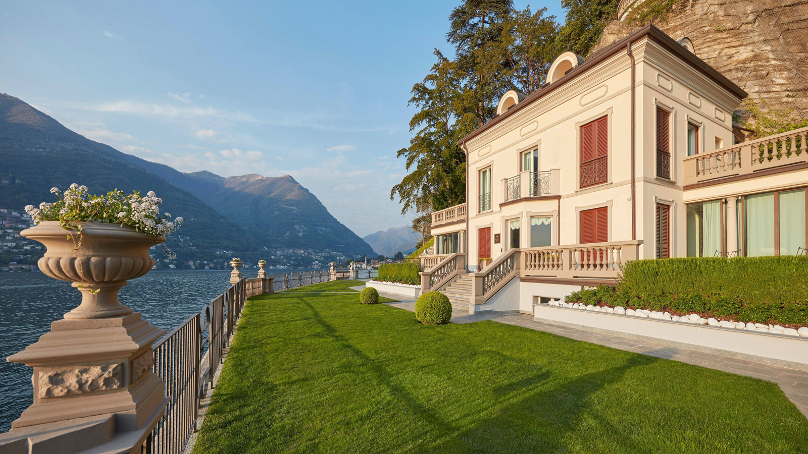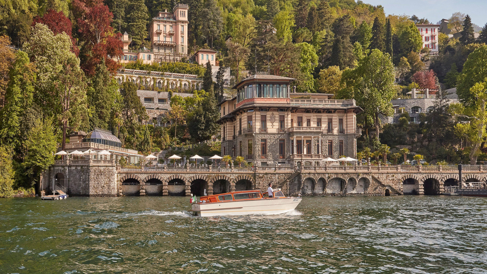 Mandarin Oriental ligger precis utanför den lilla byn Blevio vid Comosjön, en kvarts bilfärd från både Piazza Cavour och Casa del Fascio i Como. Hotellet är omgivet av frodiga botaniska trädgårdar och erbjuder panoramautsikt över den vackra sjön. Den ståtliga huvudbyggnaden är från 1700-talet och kombinerar historia med modern lyx. De 73 rummen och de två privata villorna har alla ett unikt utseende på grund av byggnadernas arkitektur. Samtliga är inredda i en klassisk italiensk stil med en touch av art deco. Vissa rum har privat balkong som vetter ut mot sjön eller den vackra trädgården. Incheckad på Mandarin Oriental kan du svalka dig i den härliga utomhuspoolen eller, om du föredrar, inomhus. Här finns även ett stort spakomplex, en designdröm med härlig belysning och innovativa behandlingar, bastu i bokträ och ett Himalayasalt-terapirum. L’Aria heter hotellets Michelinprisade restaurang som serverar sofistikerade italienska rätter. För en något mer avslappnad matupplevelse finns COMO Bar & Bistro, som erbjuder en informell italiensk meny. Baren är även den perfekta platsen för en kvällscocktail i solnedgången.