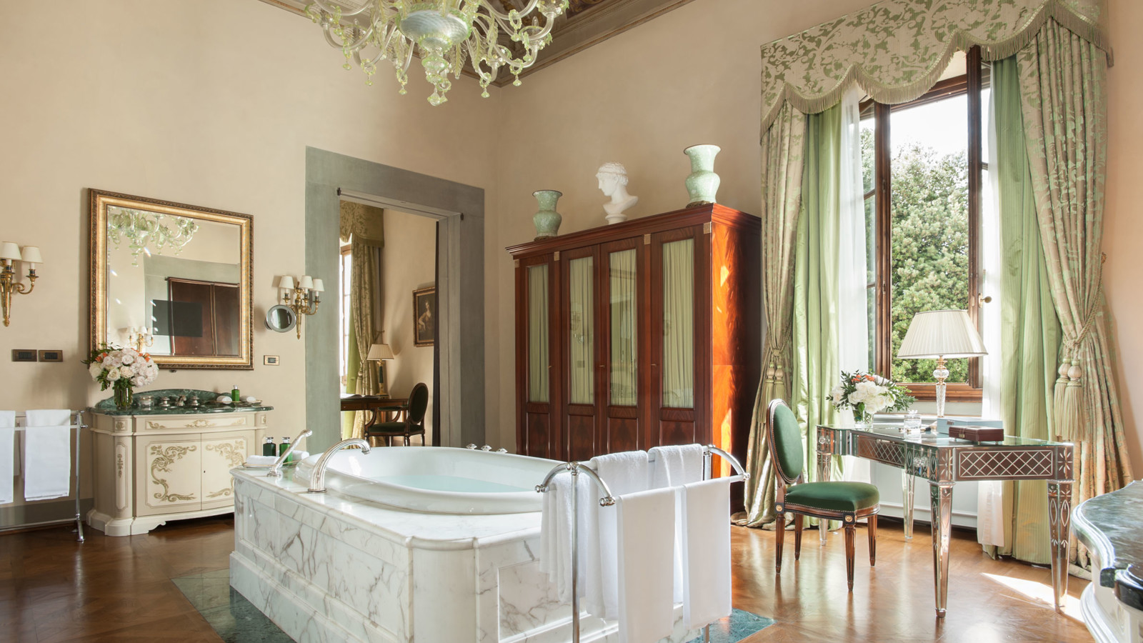 Även om staden grundades redan under romartiden är Florens mest känd som platsen för renässansens födelse med all sin kunskap, konst och arkitektur. Four Seasons Hotel Firenze består av renoverade Palazzo della Gherardesca och ett ombyggt kloster med en stor trädgård mitt bland historiska kyrkor, kupoler och gallerier i den förtrollade staden. Rum och sviter har högt till tak och är vackert inredda med antikviteter och stilfulla möbler. Väljer man någon av de större sviterna bor man som en kung eller drottning under välvda tak bland vackra fresker, stuckaturer och originalgolv i majolikakeramik. Efter exklusiv shopping i de stora modehusen och ett besök hos Michelangelos David är avkoppling i spaet eller i den 30 meter långa poolen att rekommendera. För de yngre anordnas egna spännande aktiviteter med till exempel bakning av traditionell stenugnspizza. Chef Vito Mollica står för gastronomin i det utsökta köket. Du har även möjlighet till en exklusiv middag i den glittrande solnedgången över floden Arno, serverad på en privat terrass på Ponte Vecchio. Fira det speciella tillfället med äkta guld; en juvelerare på Ponte Vecchio tillverkar en vacker Four Seasons-ring bestående av vitt guld, diamanter och en ros av safirer.