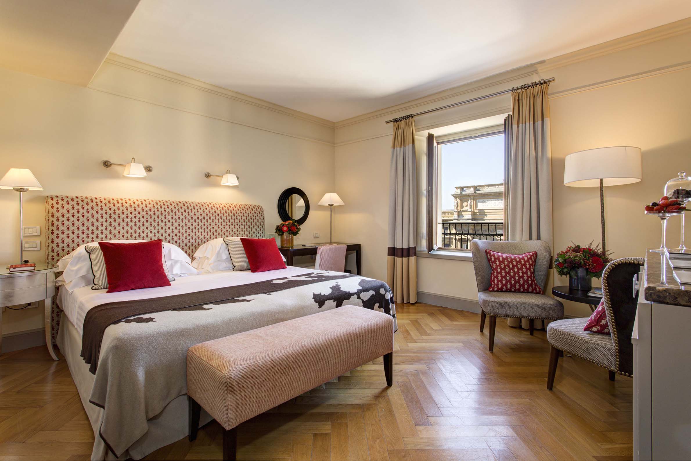 Precis som Florens har klassiska Hotel Savoy en lång och fascinerande historia som tog sin början vid öppningen 1893. Redan då var hotellet omtalat för sin personliga service och sitt ypperliga läge i hjärtat av staden. Här bor du en kort promenad från Il Duomo, Piazza Signoria, mängder av museer och den vackra bron Ponte Vecchio som korsar floden Arno. Efter renoveringen 2018 erbjuder Hotel Savoy färre rum, men desto fler spatiösa sviter för riktigt kräsna resenärer. Du noterar samarbetet med det florentinska modehuset Emilio Pucci så fort du sätter foten i lobbyn och den färgglada och konstnärliga twisten med djärva mönster som fortsätter i sviterna. Känslan är varm och välkomnande med parkettgolv, bokhyllor från golv till tak, udda loppisfynd, stora sängar med de mjukaste sängkläderna du kan föreställa dig, överdådiga badrum och oslagbar utsikt över gatulivet utanför. På bottenvåningen hittar du retrobistron Irene, vars terrassbord är perfekta om du vill ha fri sikt över piazzan och en instagramvänlig bakgrund. När magen kurrar erbjuder chefskocken Fulvio Pierangelini färska, säsongsanpassade matupplevelser som bläckfisksallad, hummerlinguini och havsabborre med potatismos. Allt serverat i en glamorös men ändå avslappnad miljö. Irene Bar finns alldeles intill restaurangen och är platsen för innovativa cocktails och en cool atmosfär. Beställ en Savoy Sling och tacka oss för tipset senare.