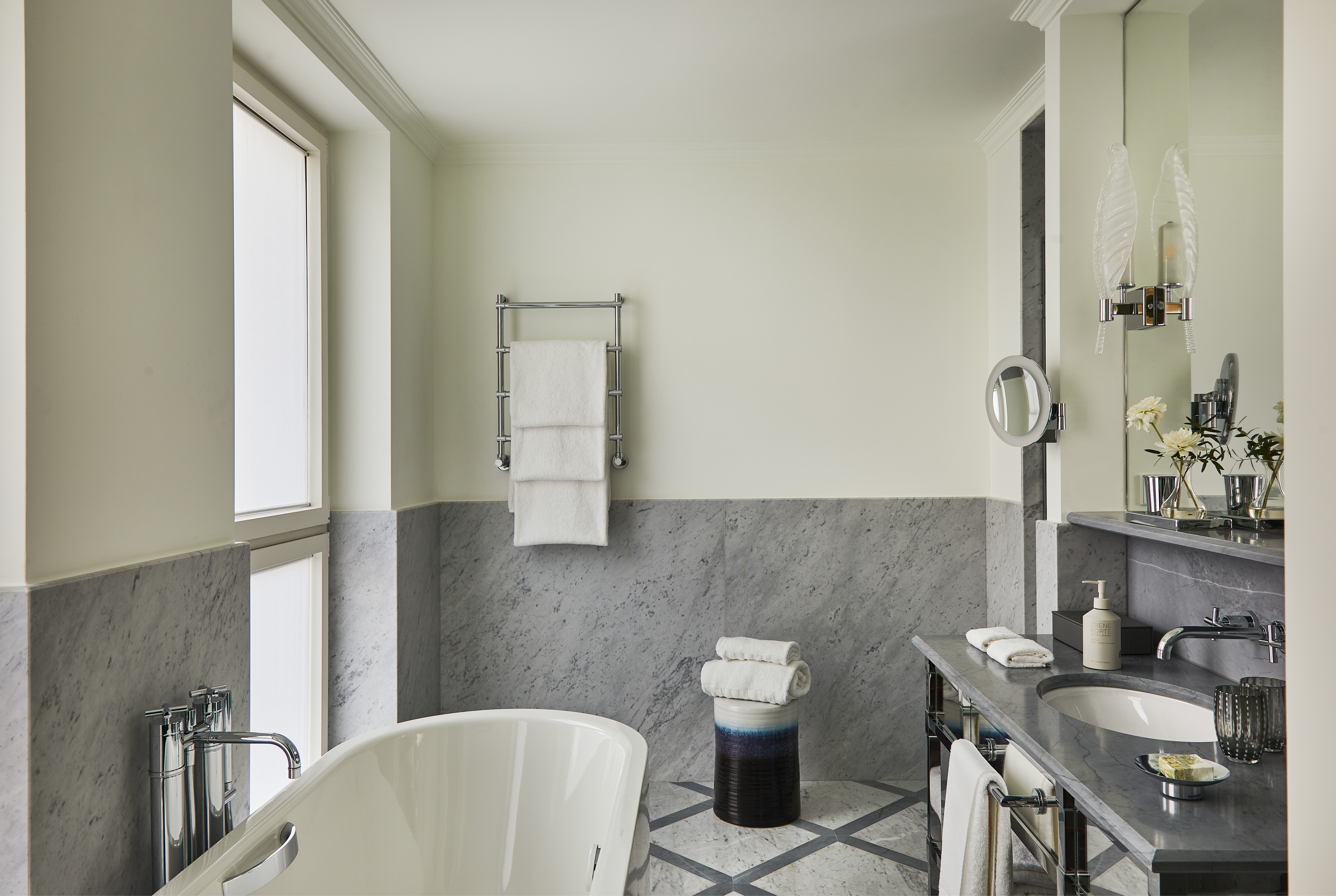 PÅ HOTELLET Mat och dryck är en central del av upplevelsen. I restaurangen sätter Fulvio Pierangelini tonen med klassiska italienska rätter där råvaran och enkelheten står i fokus. I The Carlton Bar samlas gäster och Milanobor för aperitivo – cocktails med precision i en atmosfär som fångar staden när den är som mest levande. Irene Forte Spa erbjuder behandlingar och ett lugnt wellnessutrymme som ger en tydlig kontrast till stadens tempo.