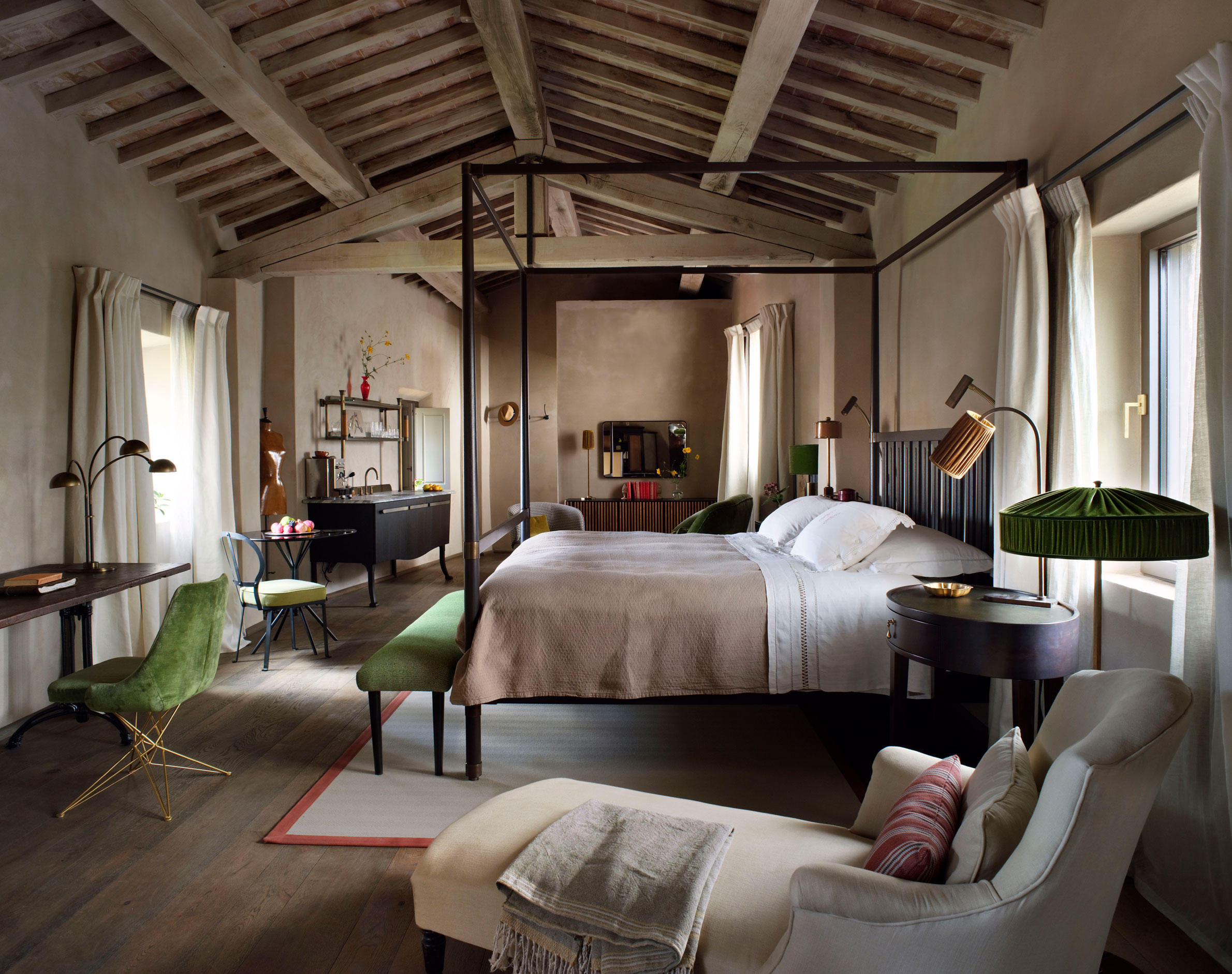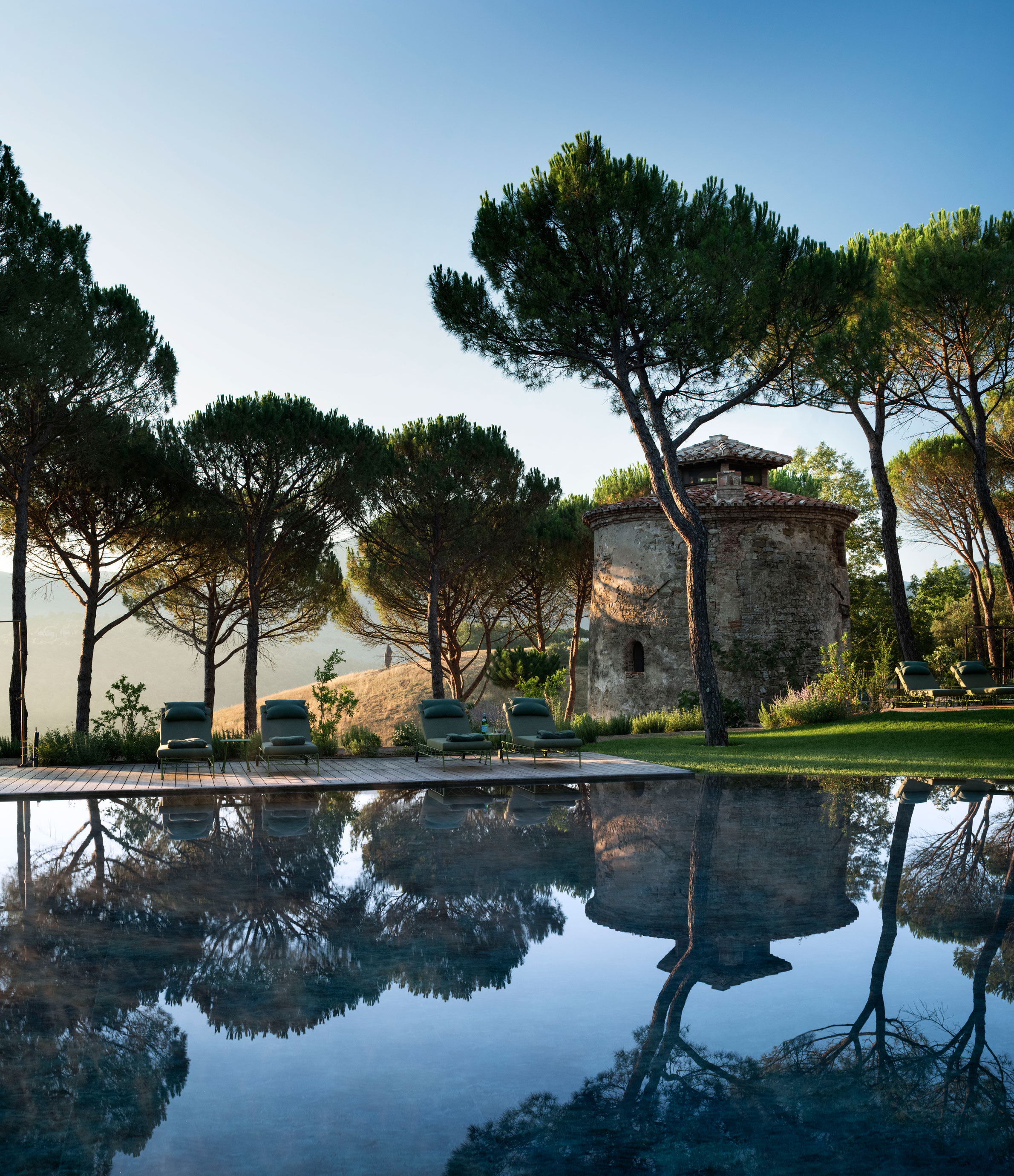 Föreställ dig Umbriens gröna kullar. Uråldriga ekar. Ängar med vilda blommor. Olivlundar och vinrankor på rad. En tystnad som endast bryts av fågelkvitter och ett avlägset eko av galopperande hästar. Föreställd dig en allé av cypresser och så på den högsta punkten, med utsikt över den undersköna naturen – en fästning med ett slott, anno 1050. Till Castello di Reschio kommer du för äventyr eller avkoppling och lämnar helt förtrollad. Slottet var i princip i ruiner när greve Bolza med familj tog över egendomen, 1994. Sedan dess har det pågått en varsam, minutiös restaurering.Transformeringen av det som idag är ett magnifikt slottshotell med 36 individuellt inredda rum samt ett antal omgjorda gårdshus för uthyrning. Alla rum är belägna i slottet och den som vill slå på stort bokar med fördel The Tower Suite – En svit med två sovrum belägen i slottets högsta torn, fördelad över fem våningar och med en spektakulär terrass. Från den har du 360 graders utsikt över Umbriens böljande landskap. En dag på Castello di Reschio inleds med fördel med en romersk badritual och en ansiktsbehandling. Den fortsätter med en tur på häst eller mountainbike, en picknick på ängen vid sjön, lerduveskytte eller en privat matlagningskurs med kocken Marco. Vill du upptäcka världen bortom, ligger kullstaden Cortona bara en kort bilresa bort. Utomhuspoolen är som en glittrande optisk illusion, nedsänkt i de gröna gräsmattorna, omgiven av höga tallar som skänker skugga under varma eftermiddagar. Här kan du koppla av och smälta dagens intryck innan du byter om och gör dig redo för en femrättersmiddag under bar himmel där varje maträtt givetvis är perfekt kombinerad med viner från slottets mycket imponerande vinkällare.