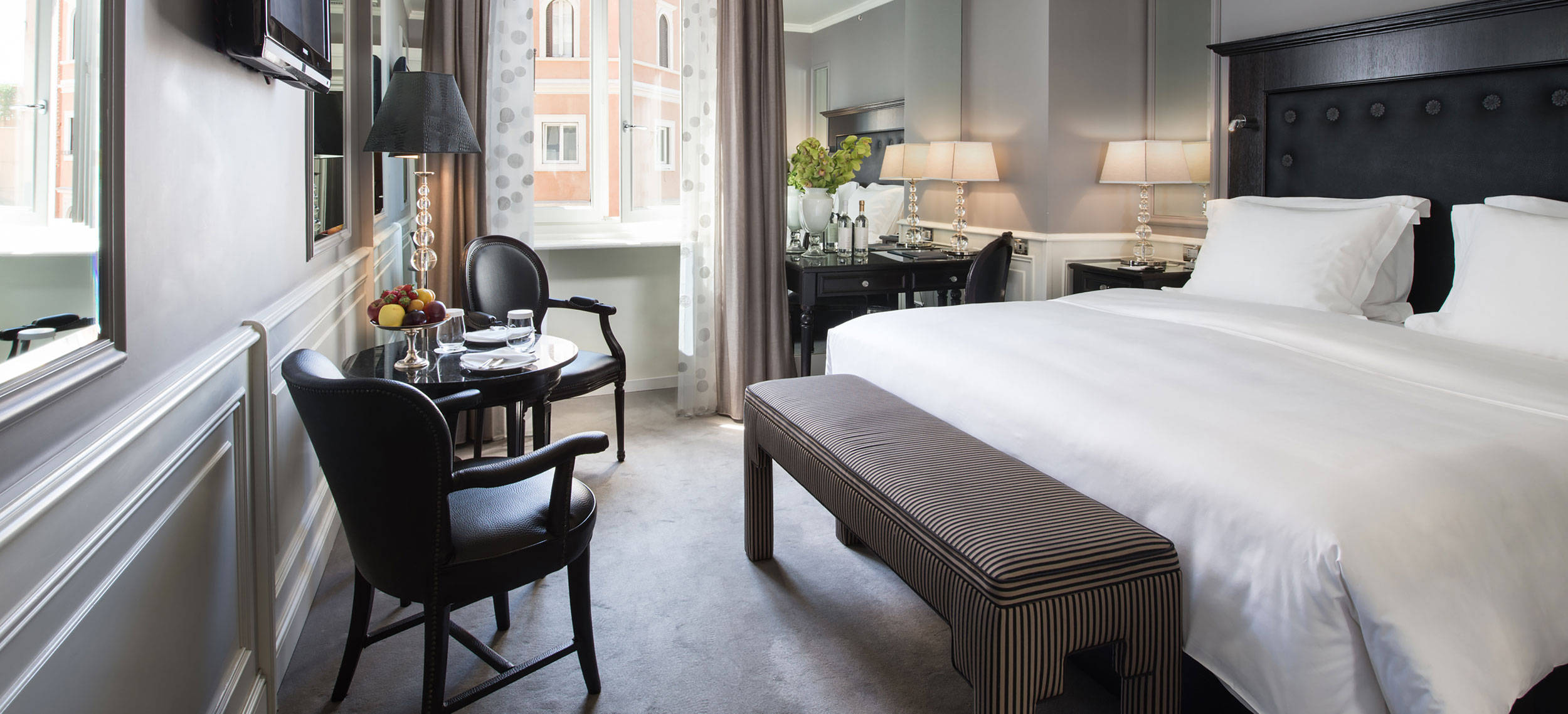 Hassler Roma är ett hotell med en personlighet större än livet självt. Det tronar högt ovan Spanska Trappan med bekvämt gångavstånd till historiska platser som Fontana di Trevi, Piazza Navona, Villa Borghese och naturligtvis shoppingen på Via dei Condotti. Design och stil är en härlig och himelsk blandning av Belle Époque och Art Deco. Rummen i den klassiska delen av hotellet är möblerade med vintage och dekorerat med antikviteter, medan den moderna delen har färgglada bultmöbler, mörka paneler och Swarovski-kristaller i inbyggda taklampor. Rum och sviter speglar Hasslers 120-åriga historia och är ibland som små tidskapslar från sin designperiod. Några rum och sviter har sagolik utsikt över Rom, där sviten Grand DeLuxe Trinità dei Monti är en favorit med sina fem balkonger. Varje badrum på Hassler är helt unikt inrett med överdådig marmor och mosaik. Hotel Hassler har alla bekvämligheter och fokus på service, från concierge till colorister och stylister på ansedda frisörsalongen Rossano Ferretti. Här finns ett Amovero Spa, där du även kan få en personlig tränare på begäran. Hassler Bar är en given mötesplats, liksom restaurangen Imagò som ståtar med en Michelinstjärna och spektakulär utsikt över Rom. Chef Francesco Apreda serverar inspirerad italiensk fusion i den modernt rokokodesignade miljön av marmor och speglar.