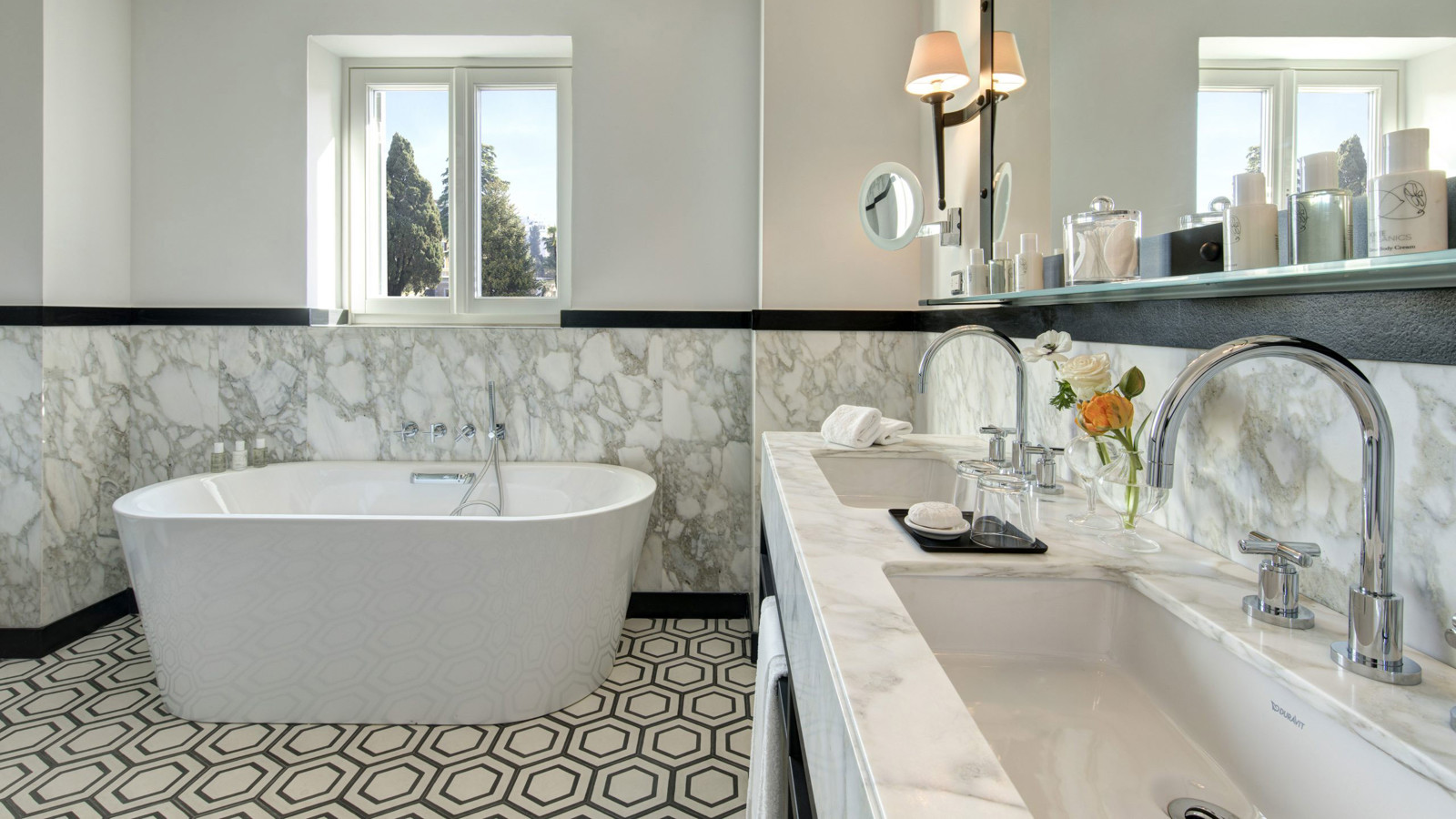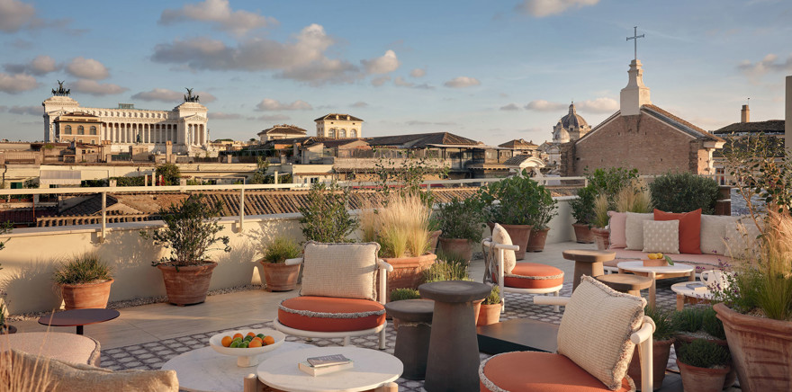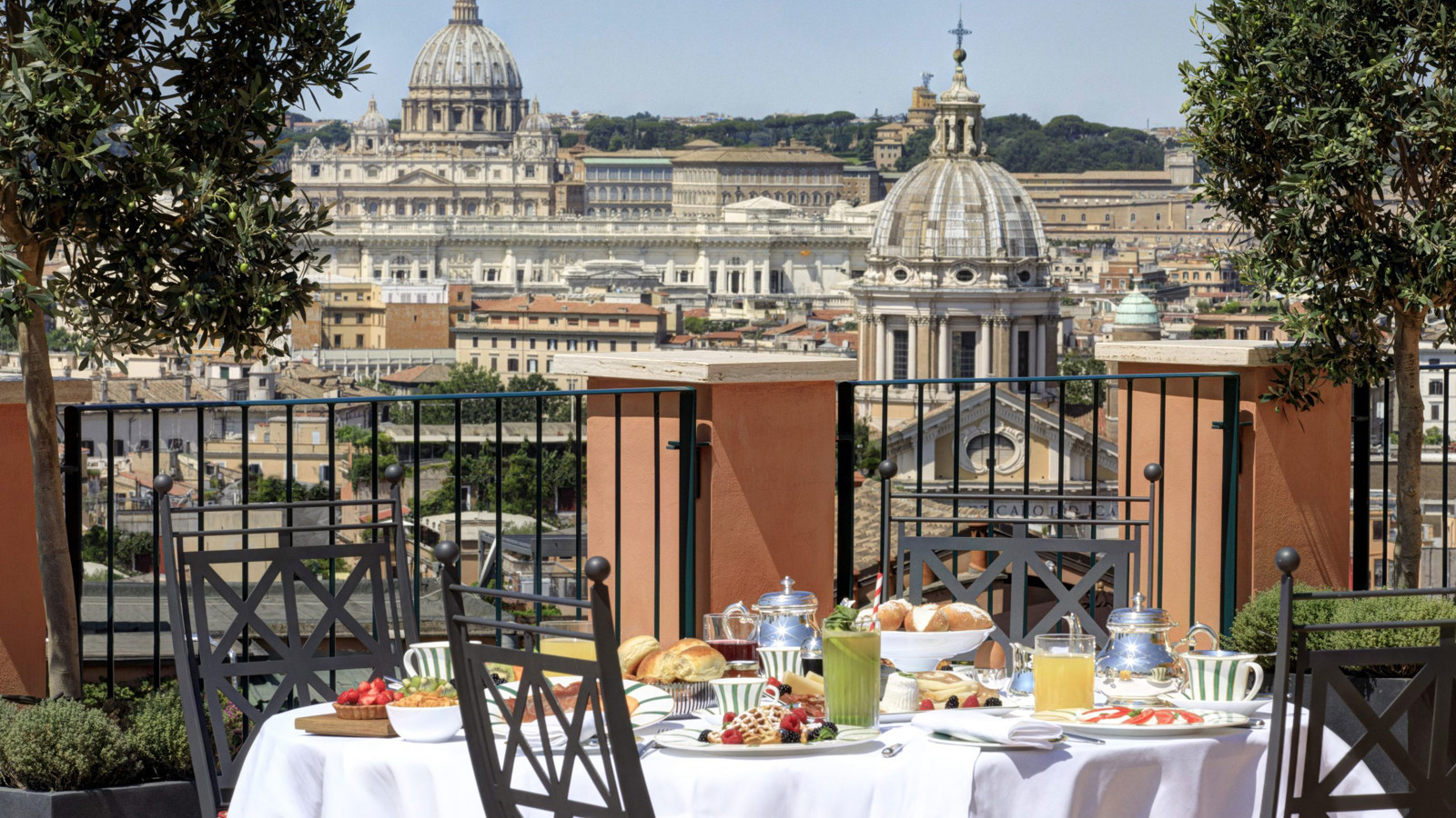 Hotel de la Ville, a Rocco Forte Hotel, är beläget på en av Roms bästa adresser – På toppen av Spanska trappan, bara steg från shoppingområdet Via dei Condotti och med sevärdheter som Fontana di Trevi och Villa Borghese på bekvämt gångavstånd. Hotellet består av tre forna, utsökt renoverade och sammankopplade 1700-talspalats. De drygt 100 extravaganta rummen och sviterna är fördelade över sju våningar och vetter antingen mot Via Sistina eller hotellets rofyllda innergård. De varierar i storlek och planlösning, men stoltserar alla med specialtillverkade möbler, raffinerade tyger, vacker konst och påkostade inredningsdetaljer. Badrummen är marmoroaser fyllda av ekologiska hudvårdsprodukter från Irene Forte. För gäster som firar något speciellt finns också tre glamourösa penthousesviter med panoramavyer över den eviga staden. En av Hotel de la Villes stora dragningskrafter är underjordiska Irene Forte Spa där expertterapeuter använder innovativa produkter och avancerad teknologi för att återställa din kropp och själ. För drinkar och vykortsvacker utsikt över Roms takåsar, rekommenderar vi att du slår dig ned under ett randigt parasoll i rooftopbaren Cielo. Middagen intas med fördel på restaurang Da Sistina som serverar traditionell, romersk mat med en modern twist.