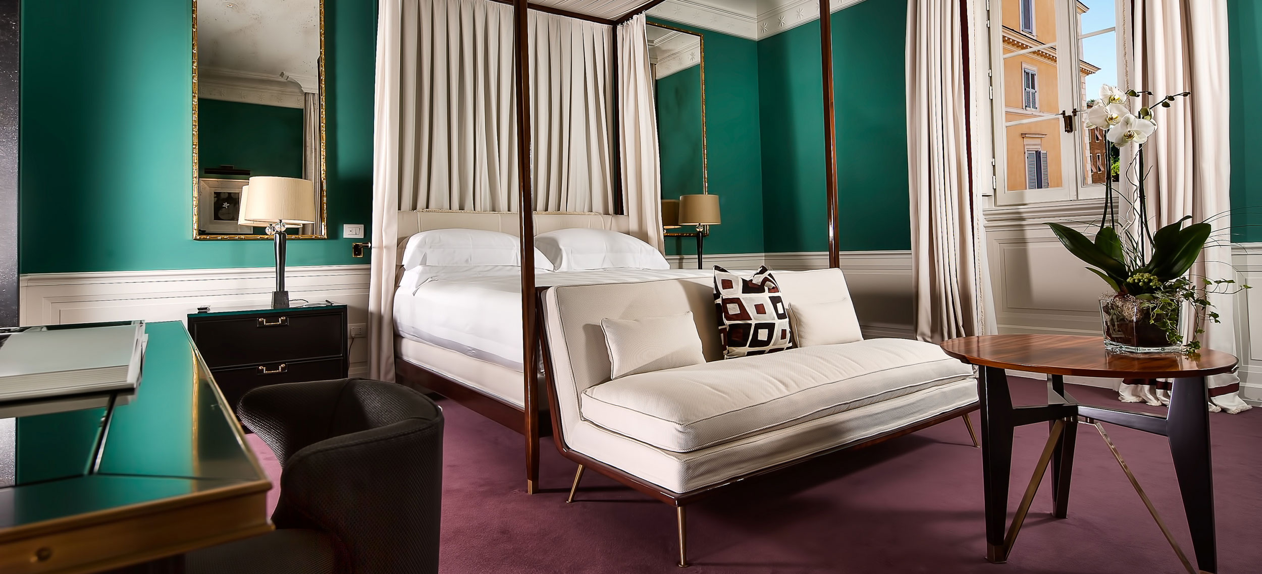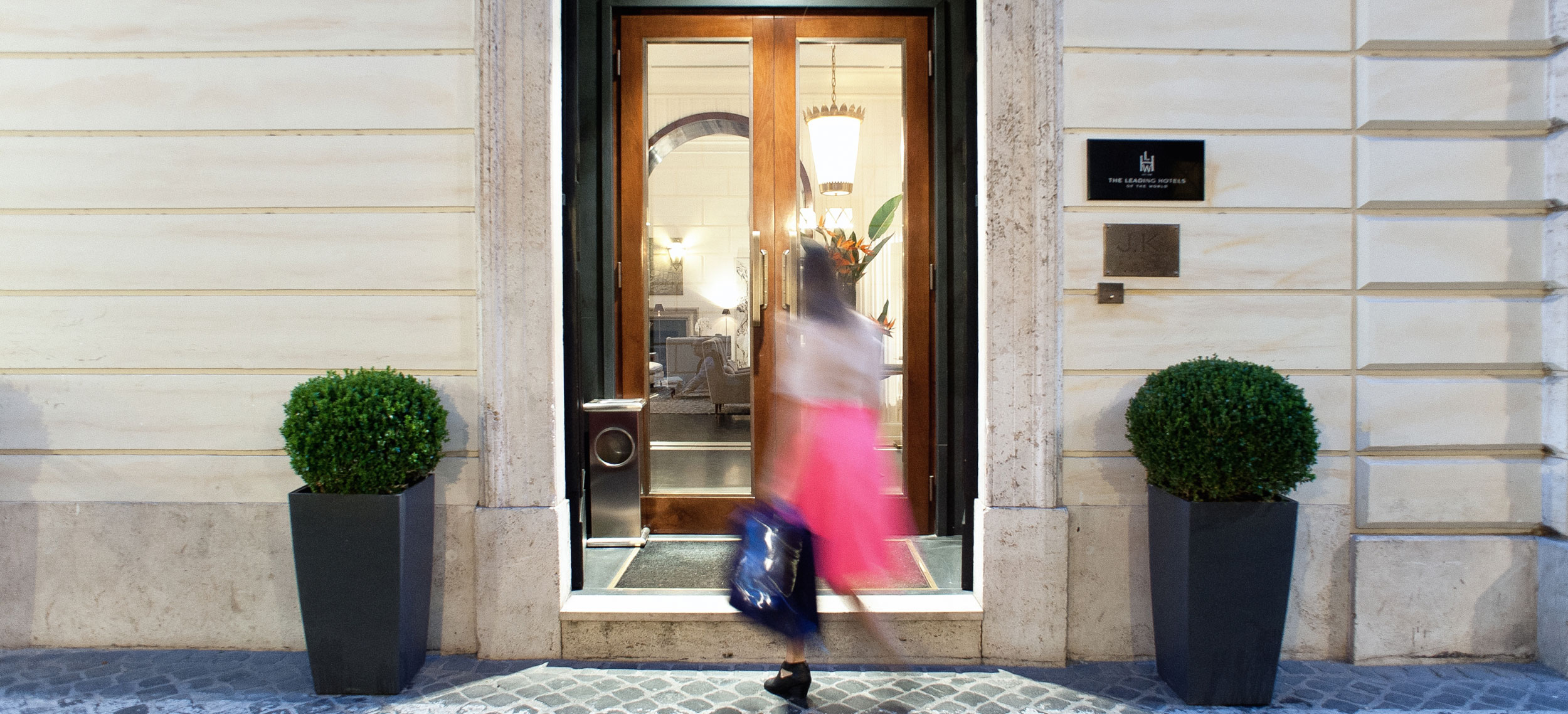 Många mindre italienska hotell har försökt efterlikna J.K. Place men utan att kopiorna når upp till originalets varma och chict eleganta atmosfär. Mycket av charmen uppstår genom blandningen av de material som används i inredningen där man aldrig tummar på den höga kvaliteten. Detta mixat med de antika eldstäder som lämnats kvar liksom väggarna som pryds av inramade originalskisser från italienska modehus. Det hela landar i en diskret men snygg retro-look av La Dolce Vita. Rum och sviter är så stilfulla att man nästan inte vågar hänga in sin resegarderob utan en uppdatering hos Valentino, Prada eller Fendi. Sovrummen är huvudsakligen nyanserade i duvblått eller bensingrönt och har härliga himmelssängar i rosenträ. Badrummen är vackra i tvåfärgad grå och vit marmor. J.K. Place har ett härligt läge i en smal gränd endast fem minuters spatserande från Spanska Trappan och lagom promenadavstånd till Vatikanen och Roms historiska centrum. Istället för att krama fram ytterligare en Michelinrestaurang har J.K. Place valt en annan väg med J.K. Café som har valt en meny för att glädja sina gäster istället för att blända dem. Självklart med klassiker som Penne alla Putanesca och kalvkött, vitello.