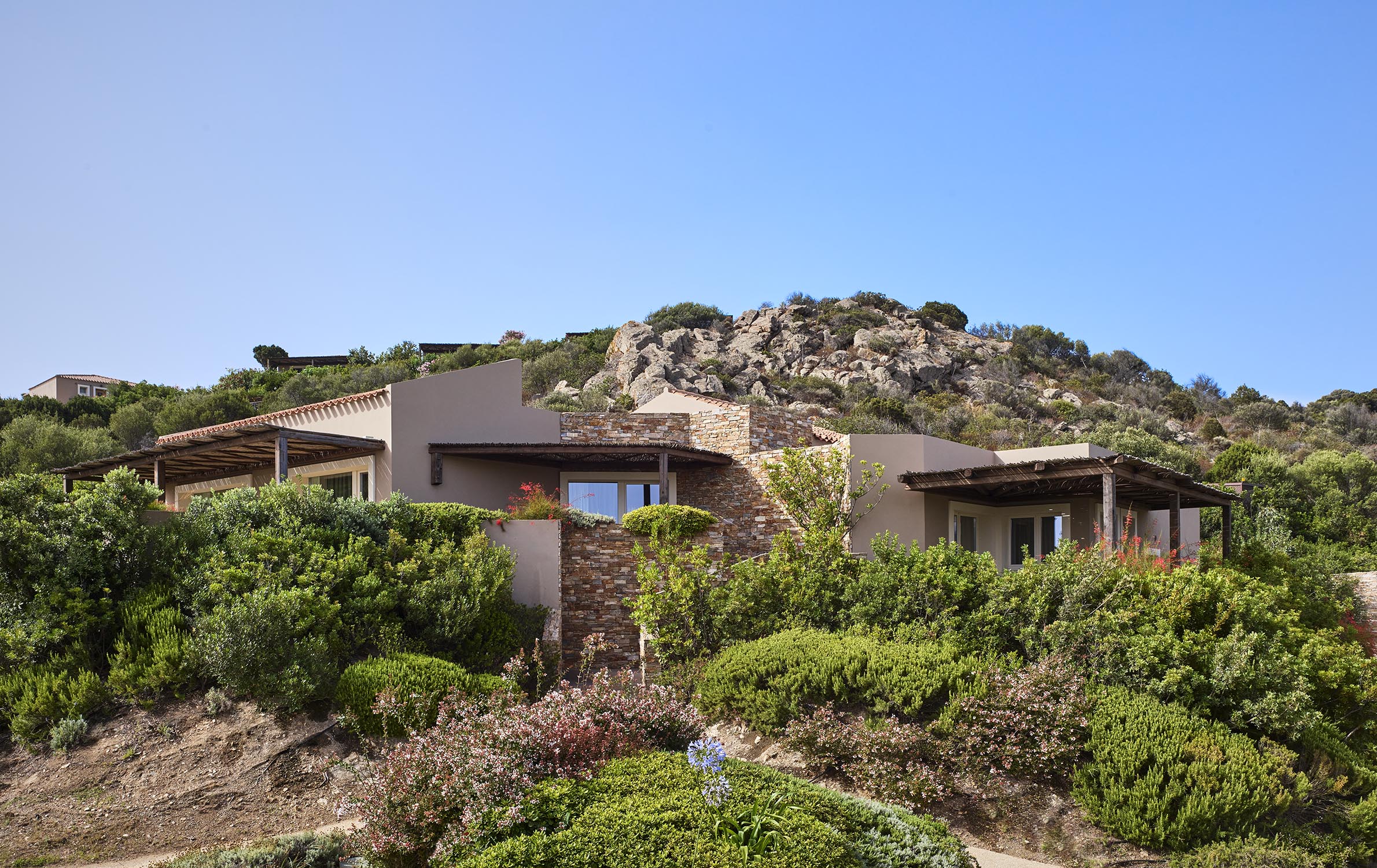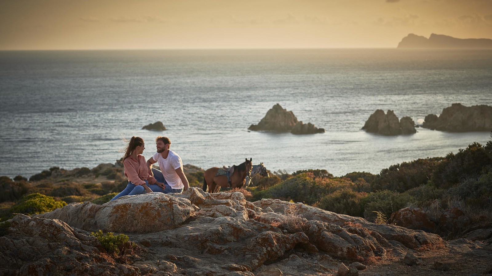 Baia di Chia Resort Sardinias läge, intill en privat, gyllene sandstrand och med magnifik utsikt mot Chiatornet kunde inte vara bättre. Här trivs familjer, vänner samt par i de fräscha och stilsäkert inredda rummen och sviterna som ligger ett stenkast från det turkosskimrande havet. Det ultimata alternativet för familjen är Suite Incanto med två sovrum, vardagsrum, tre badrum, jacuzzi och privat veranda. Sviten är belägen på en klippa, omgiven av grönska och har utsikt över en lagun med rosa flamingos. Som gäst på Baia di Chia Resort väljer du mellan ett flertal barer och restauranger. Kvällstid samlas många på piazzan för att njuta av cabaret- eller teatershower under bar himmel. Ett populärt tillhåll är också wellnesscentret som erbjuder allt från chokladmassage till manikyr och som även stoltserar med ett turkiskt Hamam. Du som längtar efter adrenalinfyllda aktiviteter kan ägna dig åt vattensporter, rid- eller mountainbiketurer samt utflykter med jeep i den natursköna omgivningen. Och när du ändå är på den här delen av Sardinien – missa inte möjligheten att besöka den historiska storstaden Cagliari som likt Rom och Lissabon är byggd på sju kullar. Här kan du strosa längs kullerstensgator, slå dig ner för en Aperol Spritz på en av många charmiga barer och fascineras av gamla stans trånga gränder och pampiga havsutsikt.