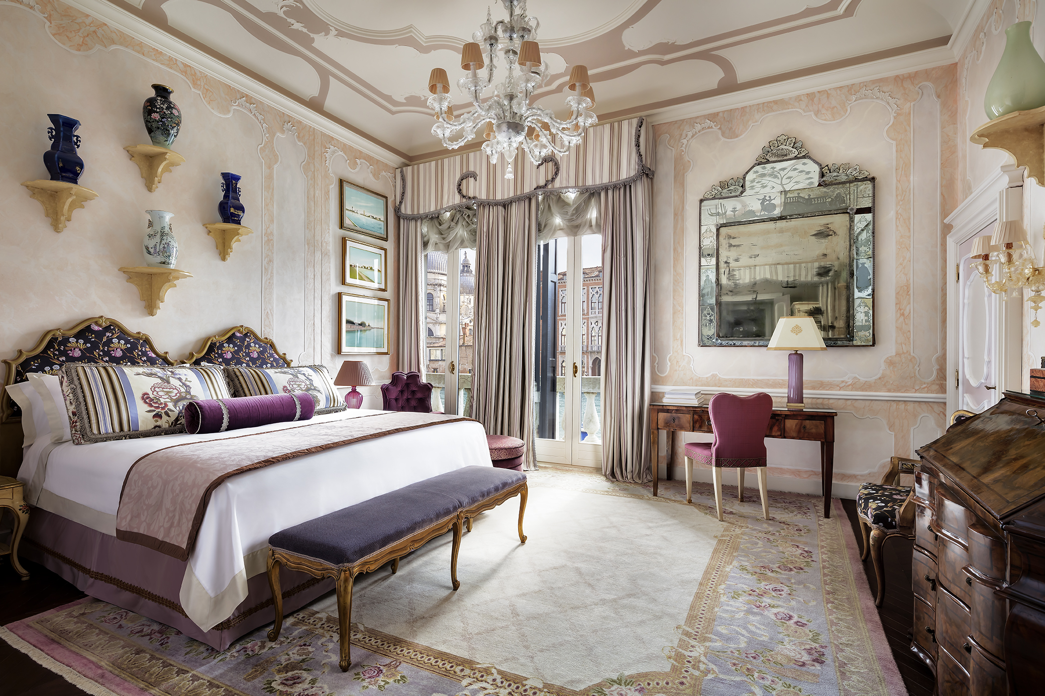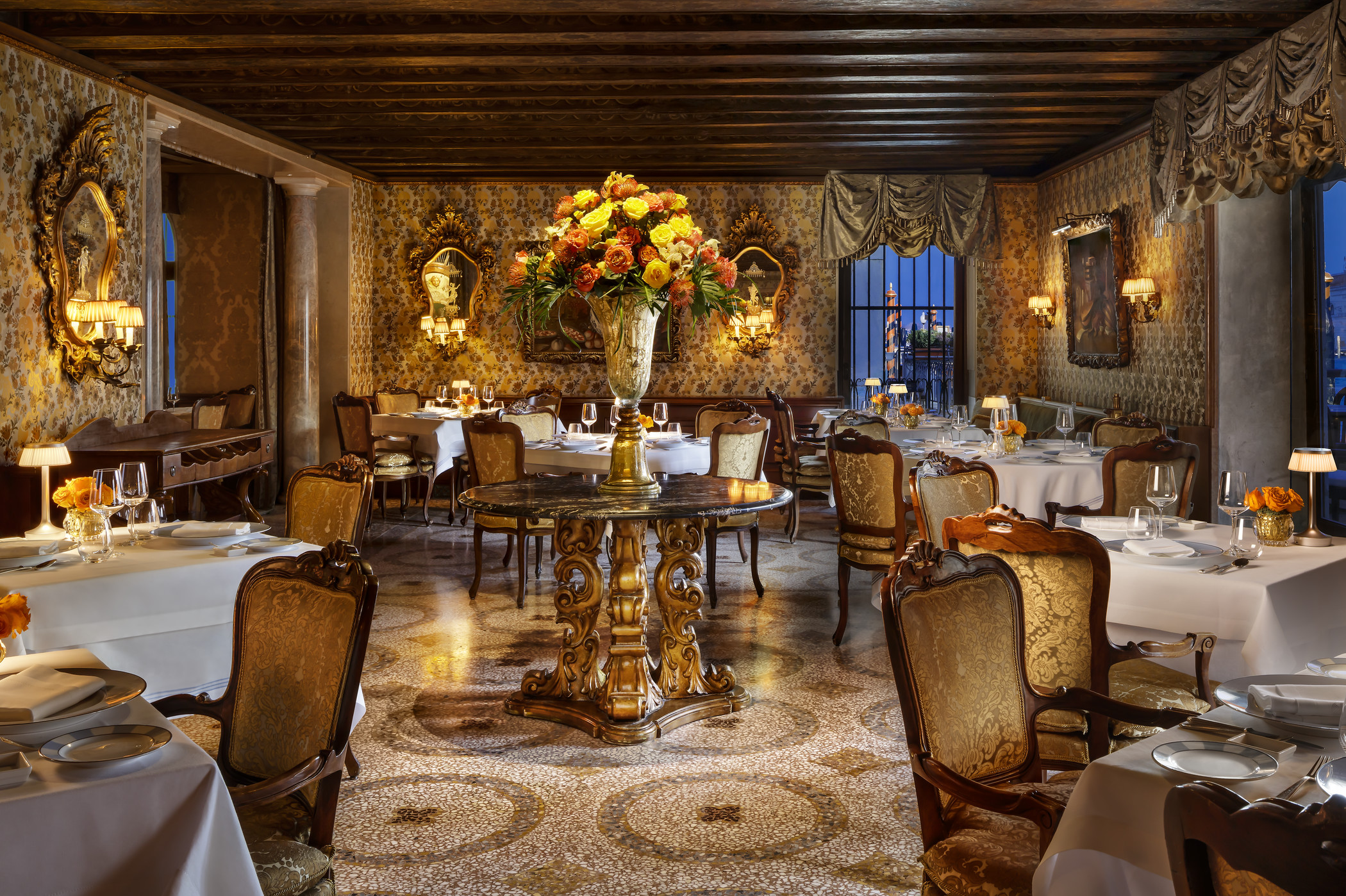 OMGIVNINGARNA Markusplatsen och Teatro La Fenice nås till fots, men det är lika lätt att stanna kvar och låta dagarna flyta mellan terrassen och hotellets eleganta salonger.