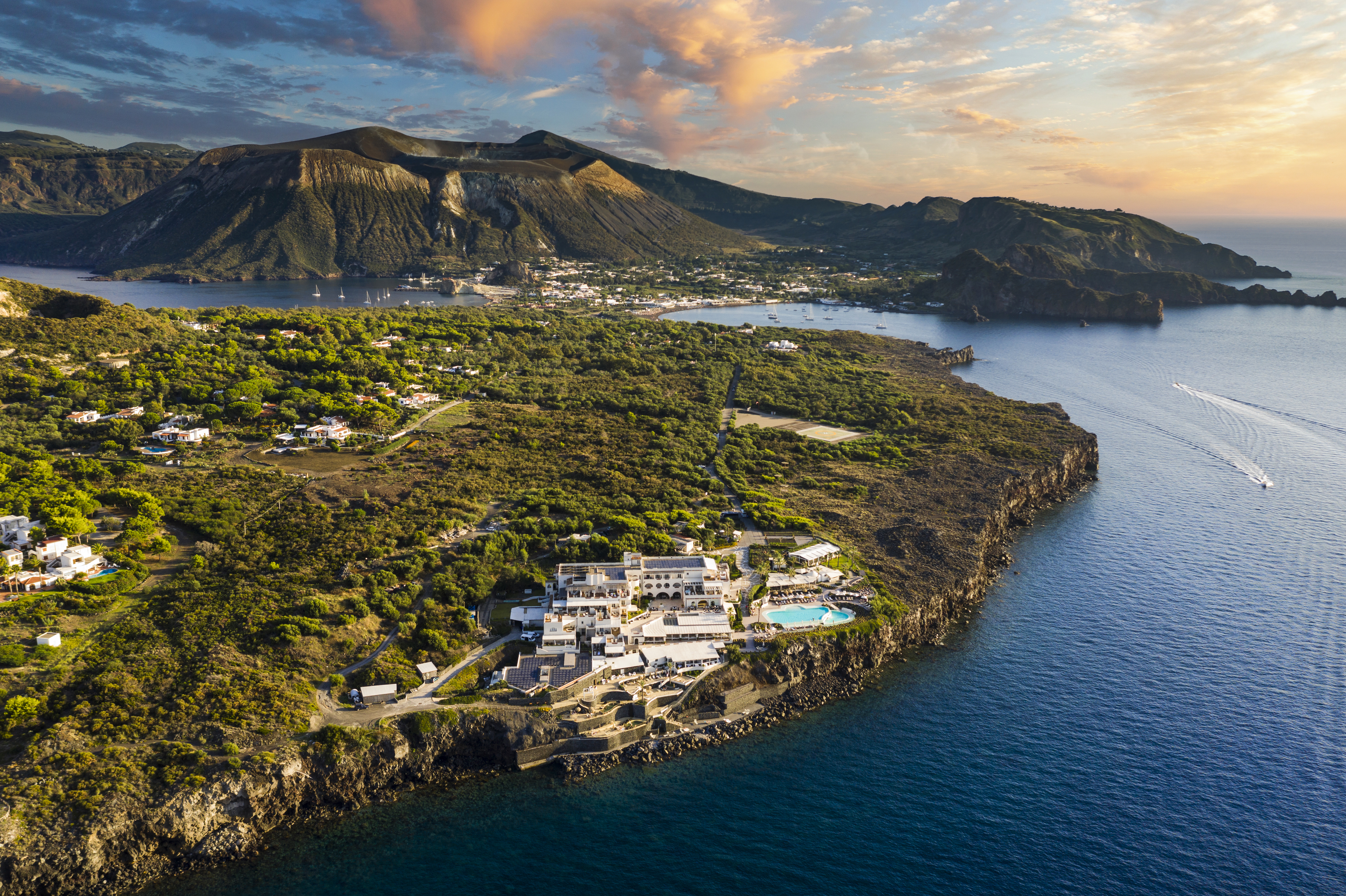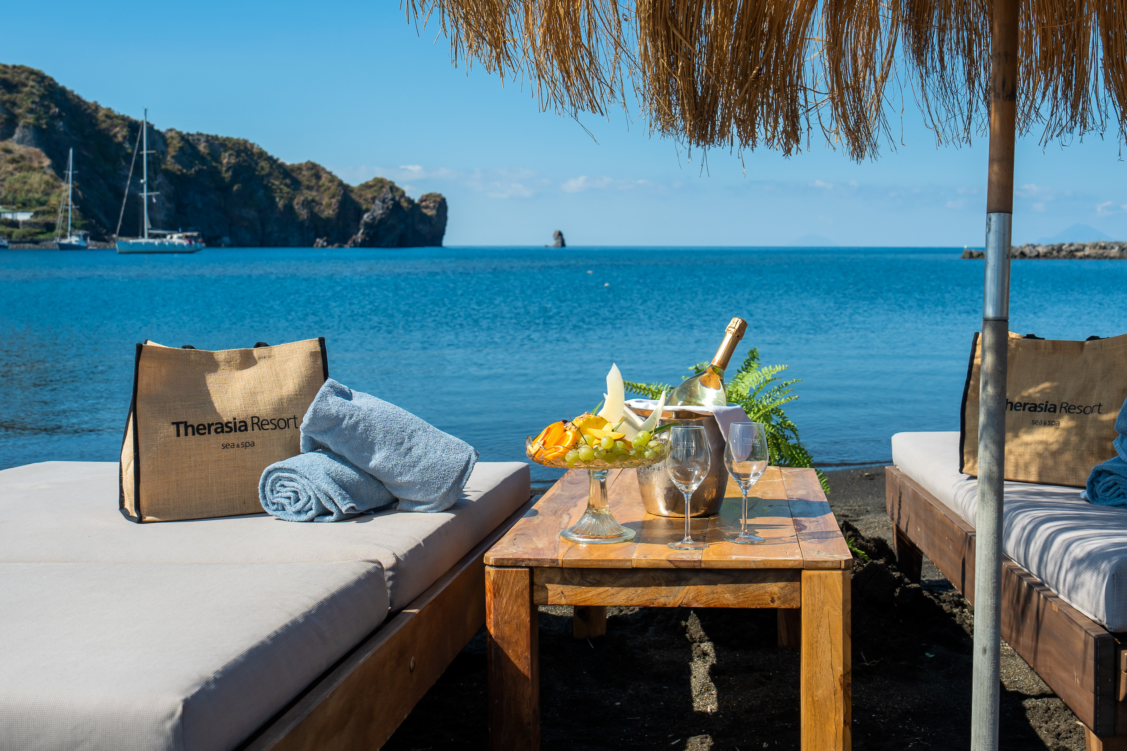 Strax norr om Sicilien gömmer sig sju vulkanöar som trots sin skönhet förblivit något av en hemlighet. Är det långa sandstränder du längtar efter så finns det bättre alternativ. Hit kommer man för lugnet, den vackra naturen och det klara, snorklingsvänliga vattnet. Svaveldoften som välkomnar vid ön Vulcanos hamn är som bortblåst på udden där förstklassiga Therasia Resort Sea & Spa ligger. Här finns två infinitypooler för den som inte vill bada från svarta klippor och ett gudomligt spa där experthänder ger uppfriskande massage och personliga skönhets-behandlingar. De rymliga rummen och sviterna är inredda i naturfärger. Många har balkonger eller terrasser med havsutsikt och egen pool. Bland de fyra restaurangerna och två barerna utmärker sig Tenerumi, där kockstjärnan David Guidara experimenterar med en mängd olika grönsaker. Hans spännande utveckling har länge följts av Italiens matnördar som vallfärdar till hans restaurang för att få uppleva avantgardism på högsta nivå. Oavsett om du längtar efter att utforska de underjordiska grottorna med privatyacht, prova termiska lerbad, följa vandringsstigar längs vulkankratern eller bara njuta av solen, erbjuder Therasia Resort ett brett utbud av aktiviteter för att göra din semester oförglömlig.