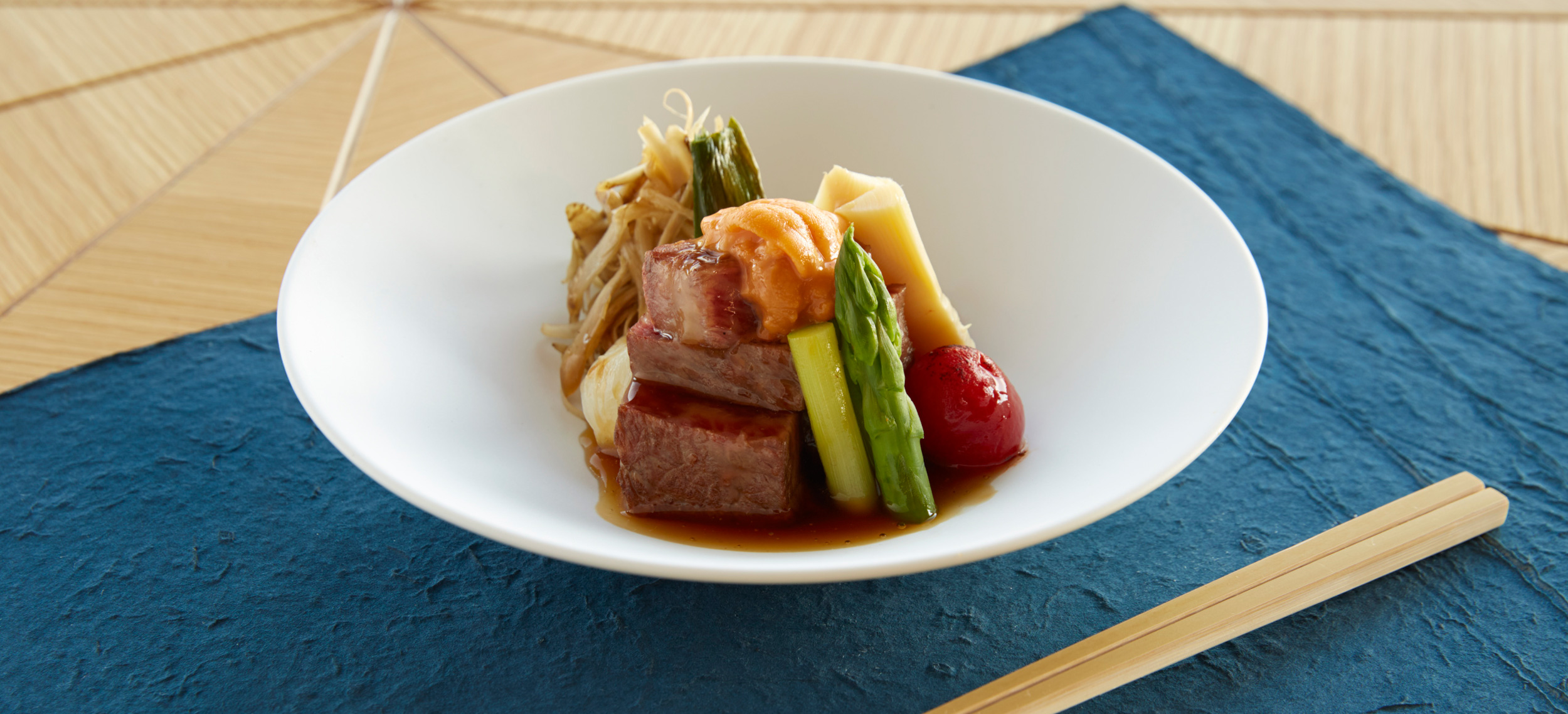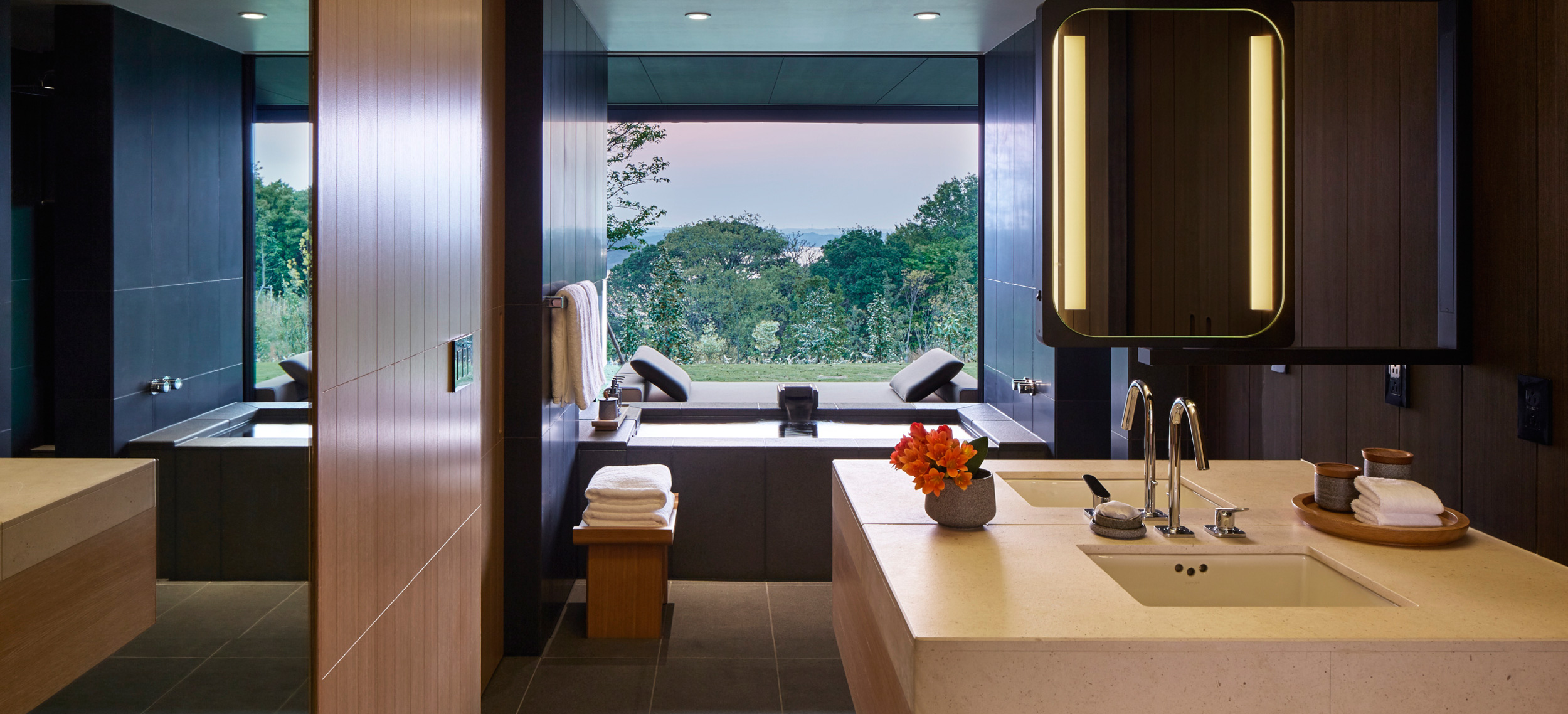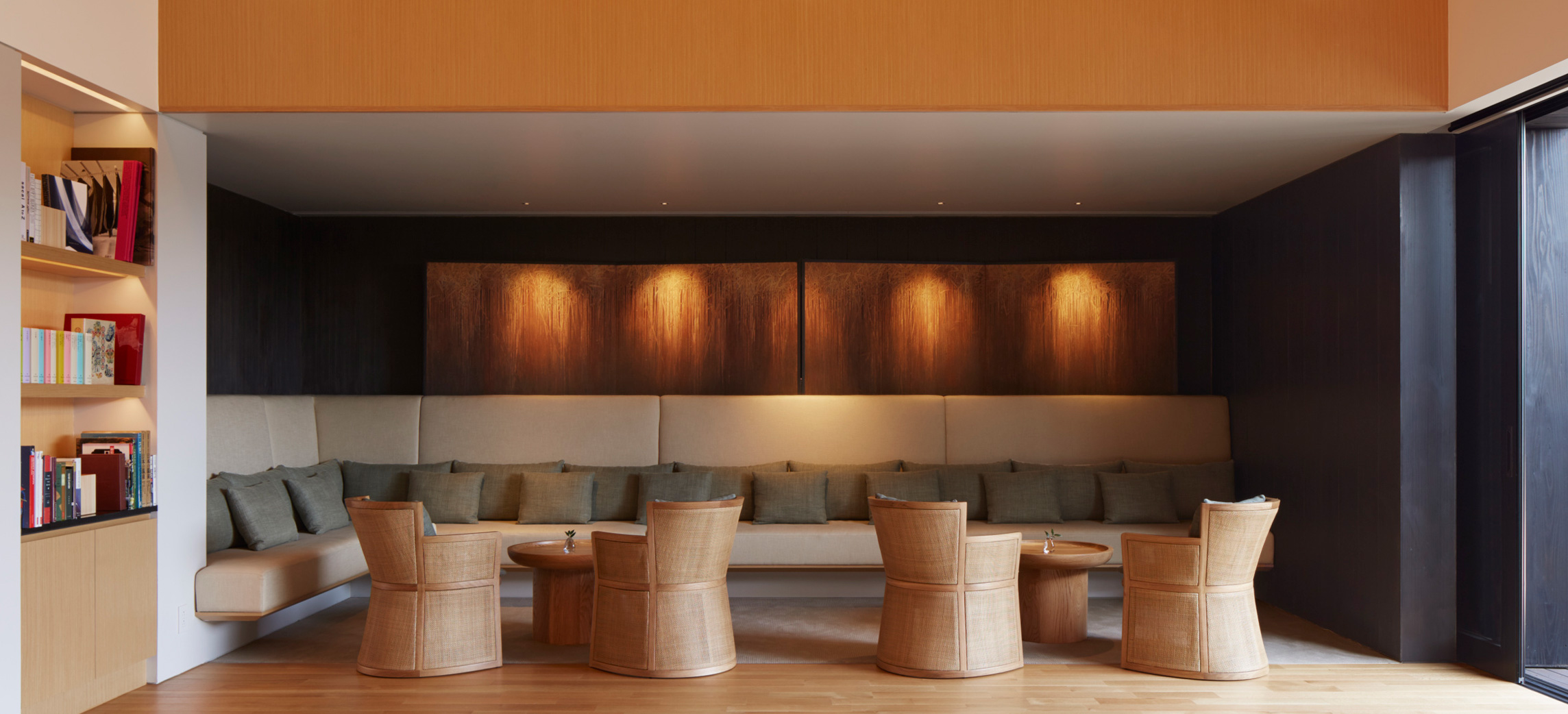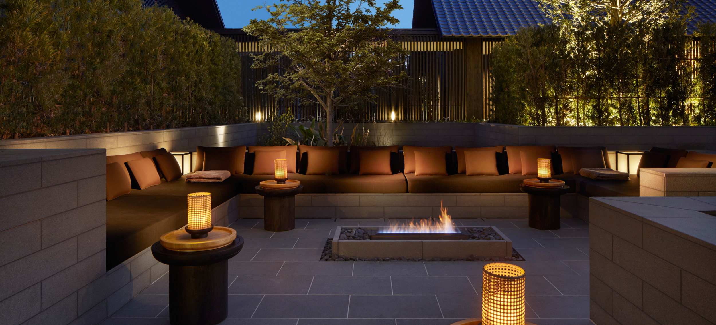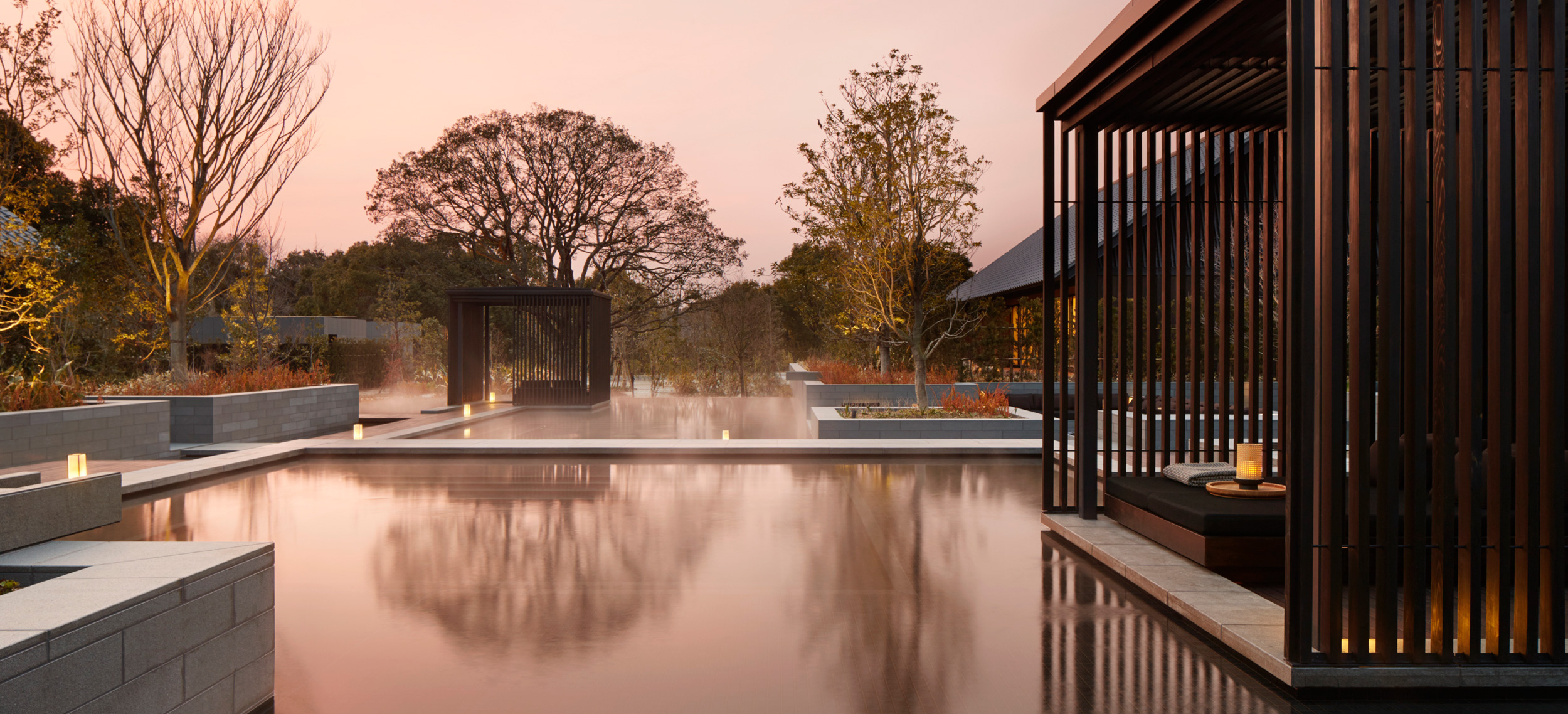 Utomhus finns en infinitypool med utsikt över bukten och två nedsänkta terrasser med eldar, som gjorda för stjärnskådning och cocktails. Spaet är fridfullt med allehanda bad, luftig yogastudio och watsu vattenterapi. Behandlingarna är rotade i traditionella japanska tekniker som scrub av wasabi och krossade pärlor, medan massagen utförs med oljor av cederträ och mandarin. Köket huseras av 12 kockar i ledning av Masanobu Inaba och är lika rik på smak som inredningen är minimal. Menyn är säsongsbetonad med allt från Mastusaka Waguy-biff till curry på hummer och klassisk sashimi. Baren och loungen med sina låga bord ock bekväma sittplatser är perfekt för att runda av med japanskt hantverksöl eller en Mebuki, en cocktail på grönt te, vodka, champagne och lime.