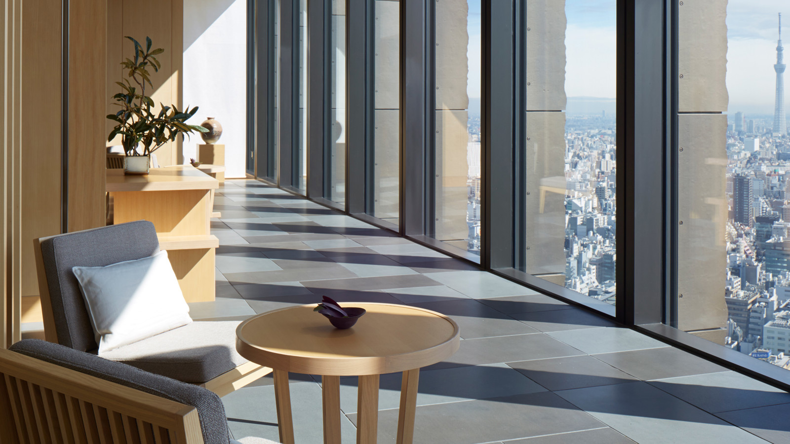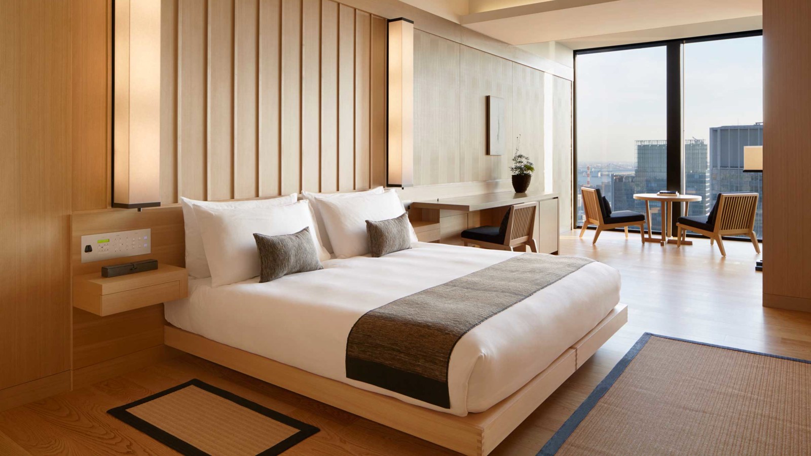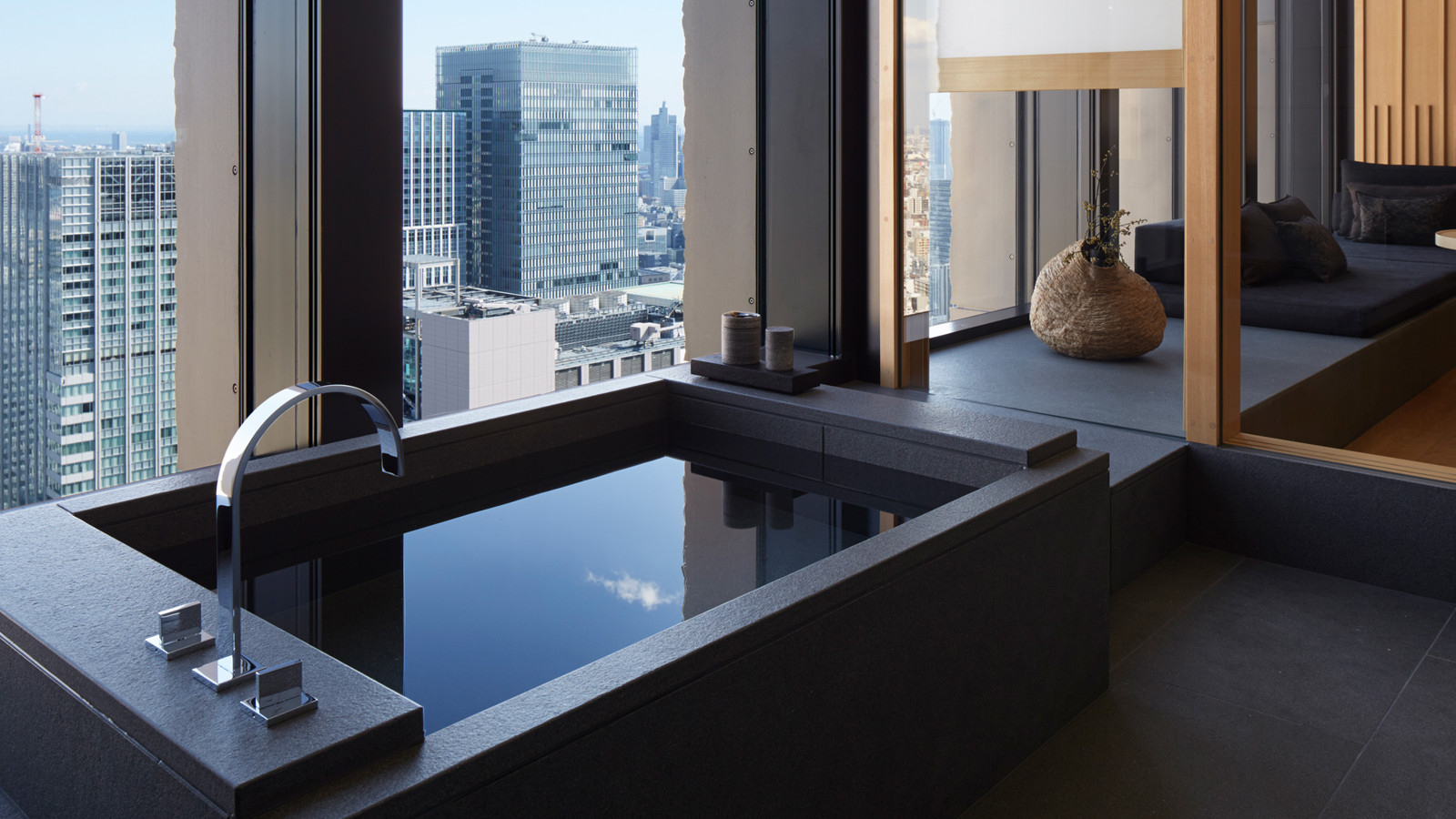 Aman Tokyo är av högsta klass och en verklig plats för själen i en stad som sover mindre än New York. Hotellet står verkligen ut som en oas av stillsam design och lugn i toppen av det 40 våningar höga Otemachi Tower. Utsikten från rum och sviter är lika spektakulär som underbar. Genom de stora fönstren från golv till tak når utsikten såväl det kejserliga palatset som Fujis snötäckta topp. Både rum och sviter tillhör Tokyos största och andas den sanna Aman-andan. Designern Kerry Hill har funnit sinn inspiration i Japans sparsmakade estetik och skapat en utsökt formel av sten, trä, washipapper och lyxiga tyger. De sagolikt bekväma sängarna står till exempel mitt i rummet, och i badrummet finns värme i såväl golv som toalettsits, och de japanska badkaren är underbart  djupa. Aman Spa Tokyo är en verklig fristad med en magnifik pool med panoramautsikt över staden och stillar sinnet efter en dag i Tokyos hetsiga tempo. Restaurant by Aman har specialiserat sig på rätter från italienska Veneto, men gjort på lokala råvaror blandat med finaste italienska ingredienser och en utmärkt vinlista med erkända etiketter.