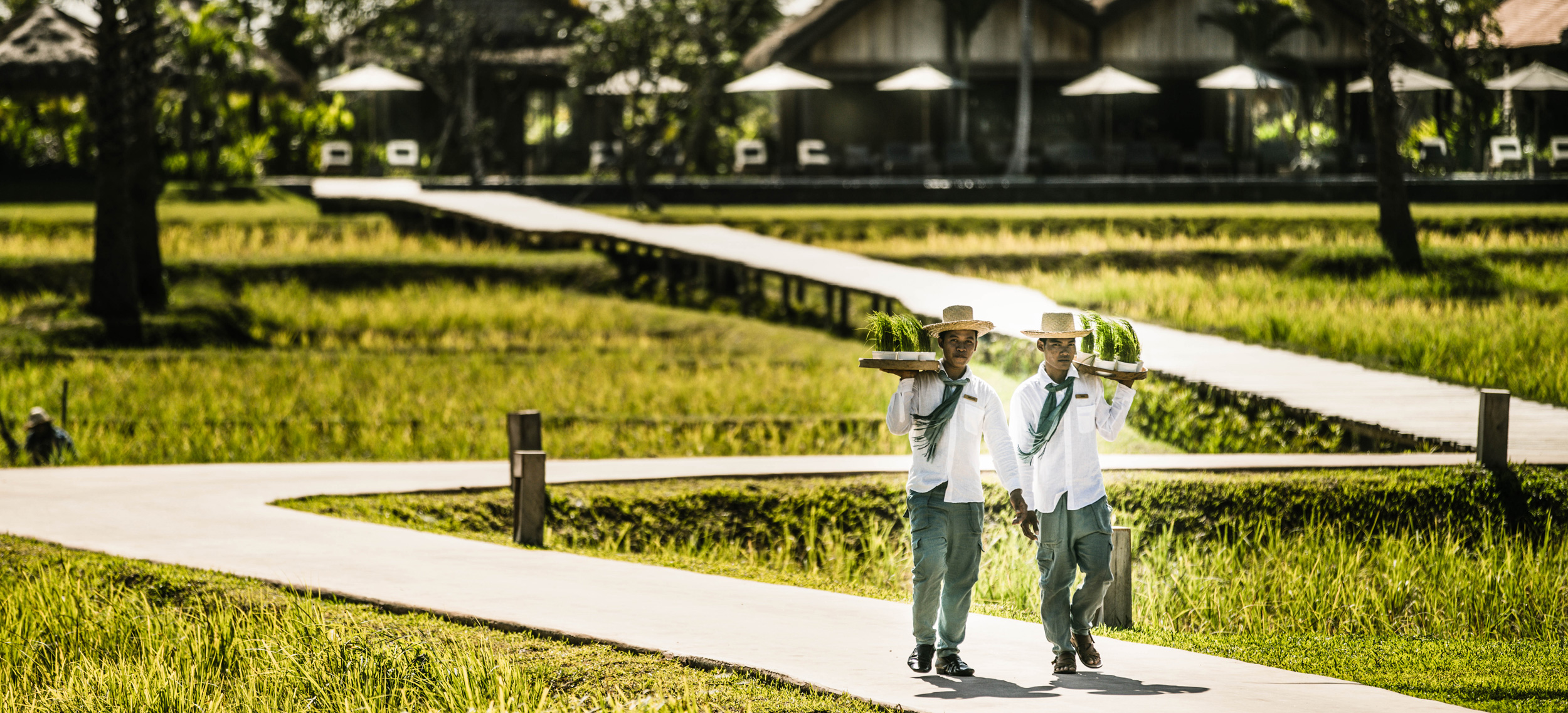 Phum Baitang kan översättas med ”grön by” och det är just vad den franske modeentreprenören Roger Zannier (Kenzo Kids och Junior Gaultier) och hans son Arnaud vill skapa med sin nya hotelldivision. Hotellet som består av 45 villor, vissa med egen pool, ligger endast 15 minuter från världsarvet Angkor Wat och Siem Reap, och är byggt i tegel, halm och rotting precis som de lokala risodlarnas hem. De åtta hektaren är anlagda som traditionella risfält och servar med ris till restaurangen och ges som avskedsgåva till varje gäst. Miljön är så autentiskt med sina låga sockerpalmer att man för stämningens skull funderar på att köpa en tam vattenbuffel som får knata runt bland villorna. Villorna är vackert och enkelt inredda med svala linnetextilier, synliga takbjälkar, handgjorda trämöbler, snidade sänggavlar, keramik och badrum med både handfat och kar i grov sten. Poolvillorna har dessutom en privat plunge pool och välskött gräsmatta. Inte för det råder poolbrist då det finns en 50-meters infinitypool nedanför en av de två restaurangerna. Stämningen är som hämtad ur en Somerset Maugham-roman och menyn erbjuder det bästa från Indokina, samt årgångar från Roger Zanniers egendomar i Sydfrankrike och portugisiska Dourodalen. Du kan även handla dina egna ingredienser och välja att få middagen tillredd av en privat kock. Det förbluffande vackra Temple Spa är en hyllning till Angkor Wat och hugget av skickliga stenhuggare. I behandlingarna används organisk kokosmjölk och ”världens dyraste olja”, Moringa.