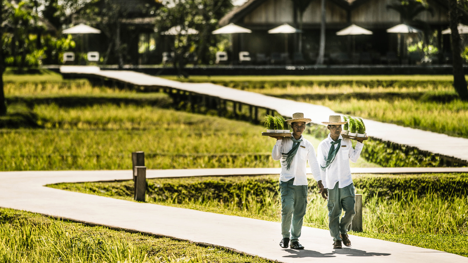 Phum Baitang kan översättas med ”grön by” och det är just vad den franske modeentreprenören Roger Zannier (Kenzo Kids och Junior Gaultier) och hans son Arnaud vill skapa med sin nya hotelldivision. Hotellet som består av 45 villor, vissa med egen pool, ligger endast 15 minuter från världsarvet Angkor Wat och Siem Reap, och är byggt i tegel, halm och rotting precis som de lokala risodlarnas hem. De åtta hektaren är anlagda som traditionella risfält och servar med ris till restaurangen och ges som avskedsgåva till varje gäst. Miljön är så autentiskt med sina låga sockerpalmer att man för stämningens skull funderar på att köpa en tam vattenbuffel som får knata runt bland villorna. Villorna är vackert och enkelt inredda med svala linnetextilier, synliga takbjälkar, handgjorda trämöbler, snidade sänggavlar, keramik och badrum med både handfat och kar i grov sten. Poolvillorna har dessutom en privat plunge pool och välskött gräsmatta. Inte för det råder poolbrist då det finns en 50-meters infinitypool nedanför en av de två restaurangerna. Stämningen är som hämtad ur en Somerset Maugham-roman och menyn erbjuder det bästa från Indokina, samt årgångar från Roger Zanniers egendomar i Sydfrankrike och portugisiska Dourodalen. Du kan även handla dina egna ingredienser och välja att få middagen tillredd av en privat kock. Det förbluffande vackra Temple Spa är en hyllning till Angkor Wat och hugget av skickliga stenhuggare. I behandlingarna används organisk kokosmjölk och ”världens dyraste olja”, Moringa.
