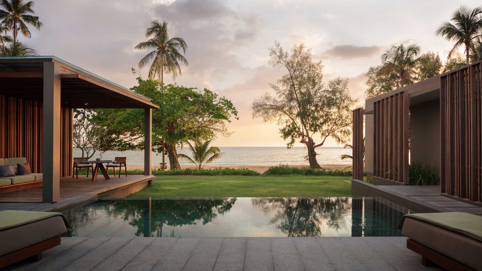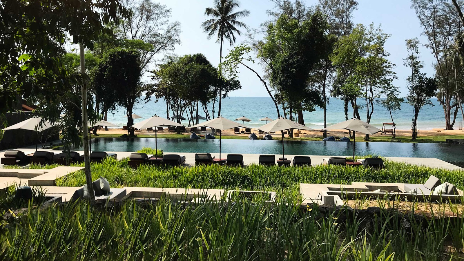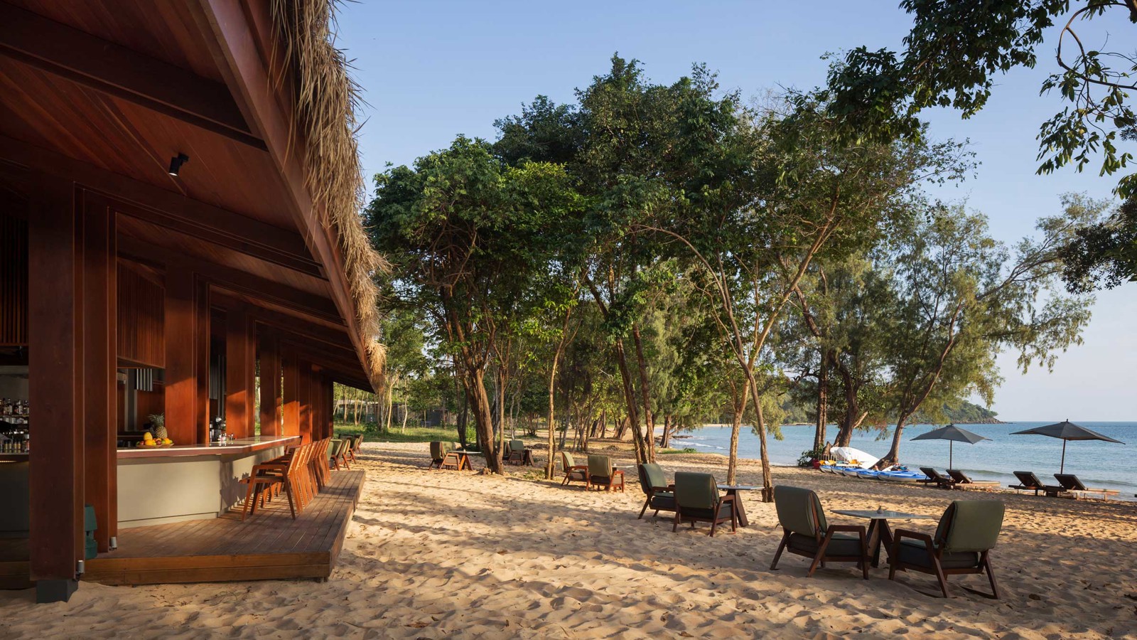 Långt bort från de vältrampade templen i Angkor Wat och pulsen i Phnom Penh, men endast en tio minuters båtresa från det vindlande Sihanoukville, hittar du ett annat Kambodja. Inbäddad i en prunkande och orörd regnskog, på södra spetsen av den i stort sett obebodda Koh Russey/Bamboo Island i Kambodjas skärgård, ligger det senaste tillskottet av landets exklusiva och ekologiska strandresorter. Koh Russey Resorts arkitektur har sömlöst blandats in med naturen och det omgivande smaragdfärgade vattnet. Överallt hittas omsorgsfulla och distinkta Khmer-influenser – i allt från villornas terrasser och pooler till de geometriska byggnaderna med platt tak och raka rena linjer. Invändigt finner du gedigna trägolv, panoramafönster från golv till tak och skjutdörrar av glas. Detaljer som vävt silke, färgglada kambodjanska kuddar i ikat-mönster, vulkanisk sten och regnskogsduschar fulländar den lugna, stilla atmosfären. I resortens centrala del kan du njuta av utsökta lokala och internationella rätter från restaurangen eller välja grillade skaldjur och lättare måltider på Beachside Grill. Precis intill villorna finner du en privat strand i gyllene toner och kristallklart vatten och på hotellet finns ett gym, yogastudio och spa. Under kvällarna ordnas utomhusbio vid stranden.