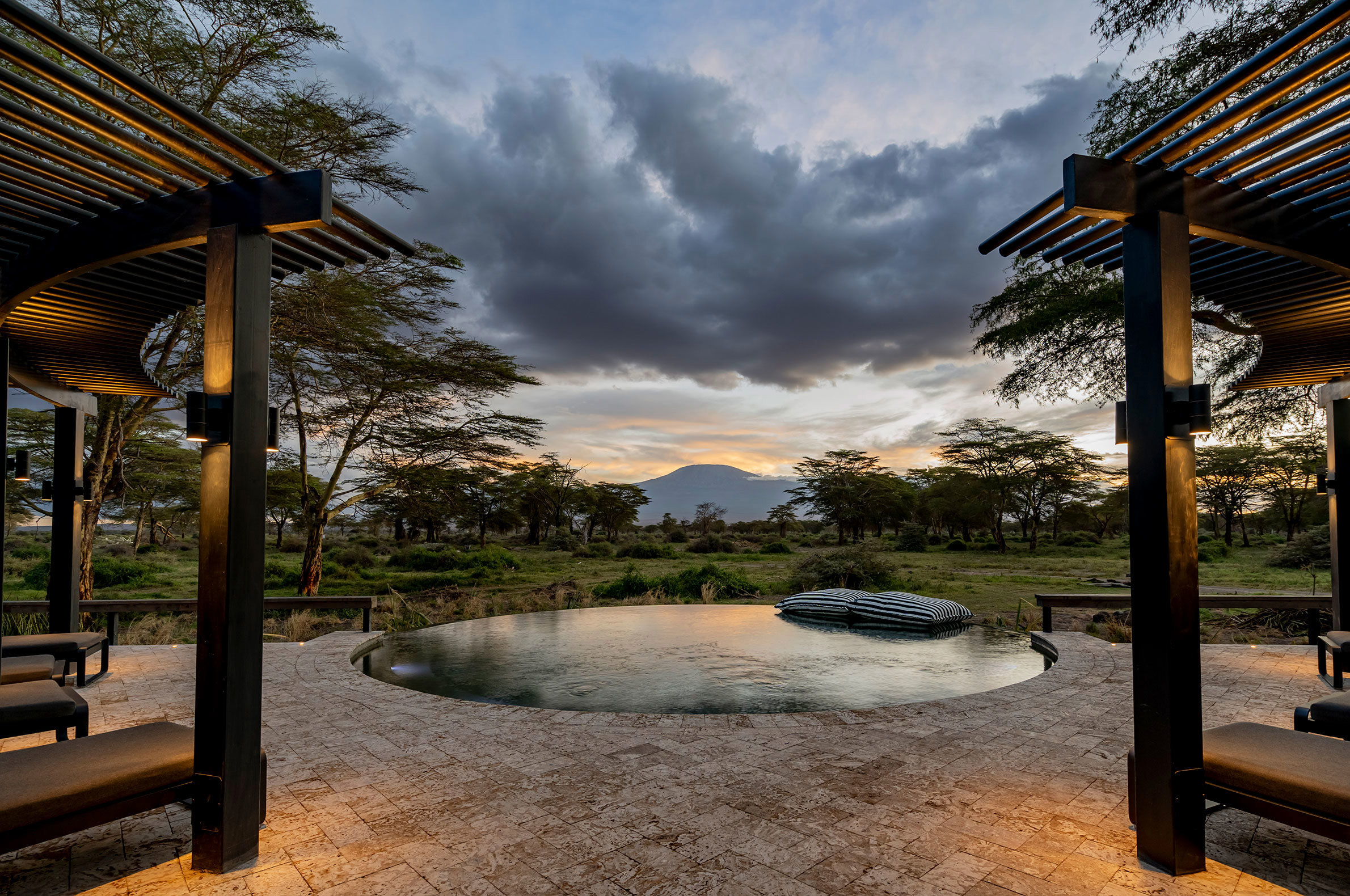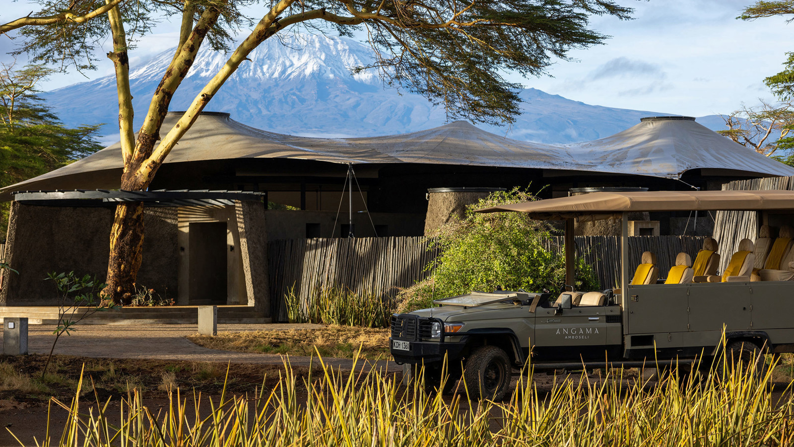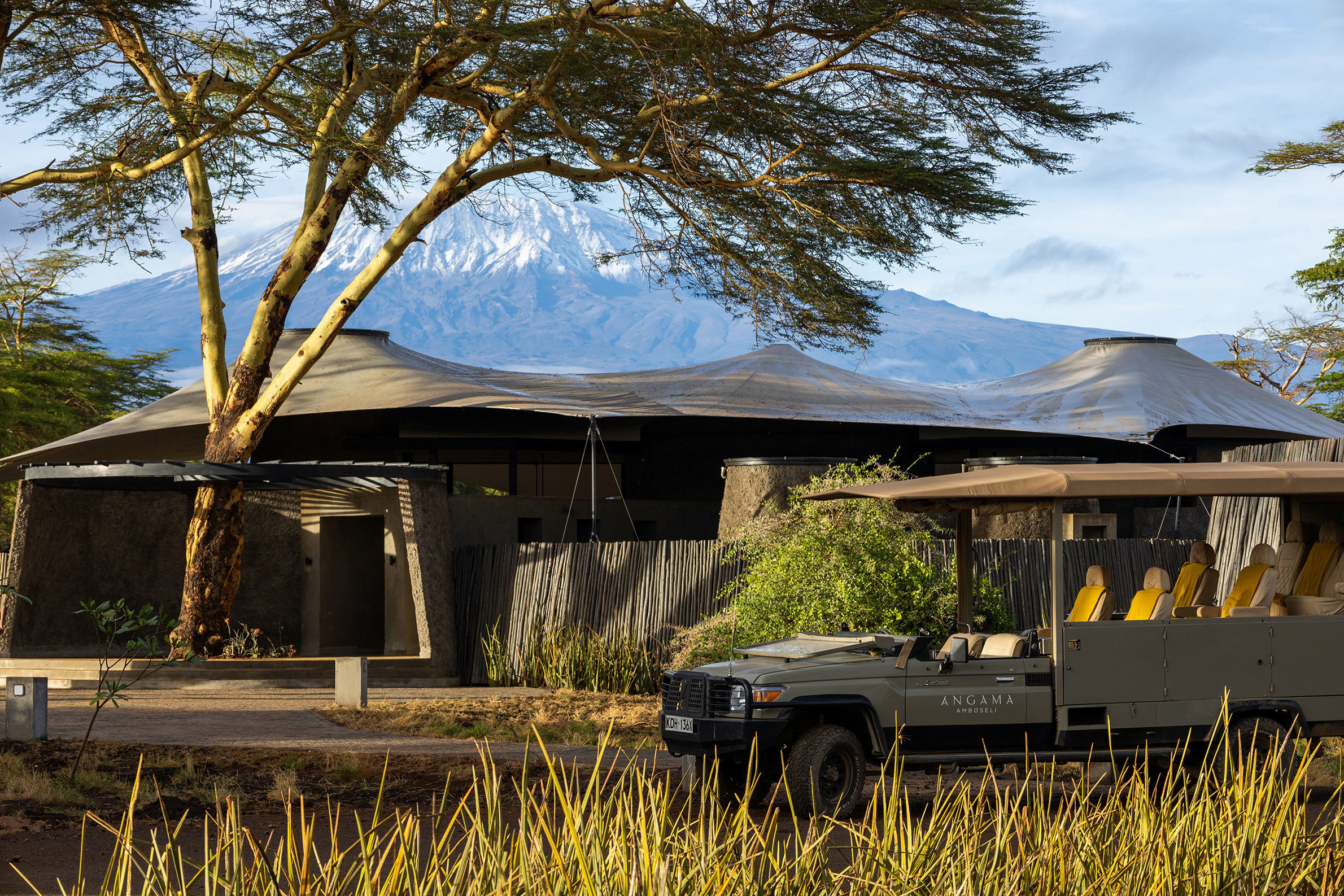Angama Amboseli ligger i Kimana Sanctuary, ett 5700 hektar stort naturreservat vid Amboseli och som ägs gemensamt av lokala massajer. Denna fristad, är en livsviktig korridor som ger säker passage längs en flera hundra år gammal migrationsstig för lejon, geparder, thompsongazeller, zebror och inte minst elefanter. Här har du en unik möjlighet att se några av världens sista majestätiska elefanttjurar av typen Super Tusker, vars enorma betar väger upp till 45 kilo styck och ibland släpar i marken. Lodgen omfattar tio sviter och ett kompakt huvudområde som innehåller en eldstad, en matplats utomhus, ett spelrum för barn, ett konstgalleri, en fotostudio, en liten infinitypool och en trädplattform med 360-graders fri utsikt över savannen (avnjuts bäst i solnedgången med en cocktail i handen). Arkitekturen och designen hyllar hela områdets elefantbestånd, från de utvalda konstverken till lodgens väggar, gjorda av en blandning av elefantdynga och betong. Varje tältsvit är placerad så att du kan beundra Kilimanjaro från nästan varje hörn. Från gungstolen på verandan till sängen och duschen. Safariturerna görs till fot eller med öppna jeepar i Kimana och Amboseli National Park. I sällskap av kunniga och passionerade guider spanar du efter lejon och geparder på savannen, flodhästar och flamingos i våtmarkerna samt över 400 fågelarter längs vägen.