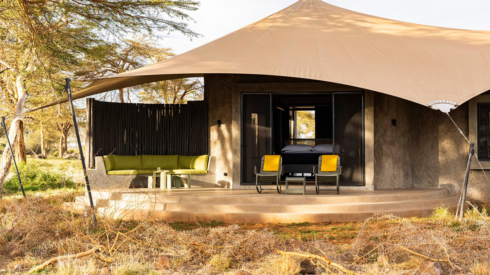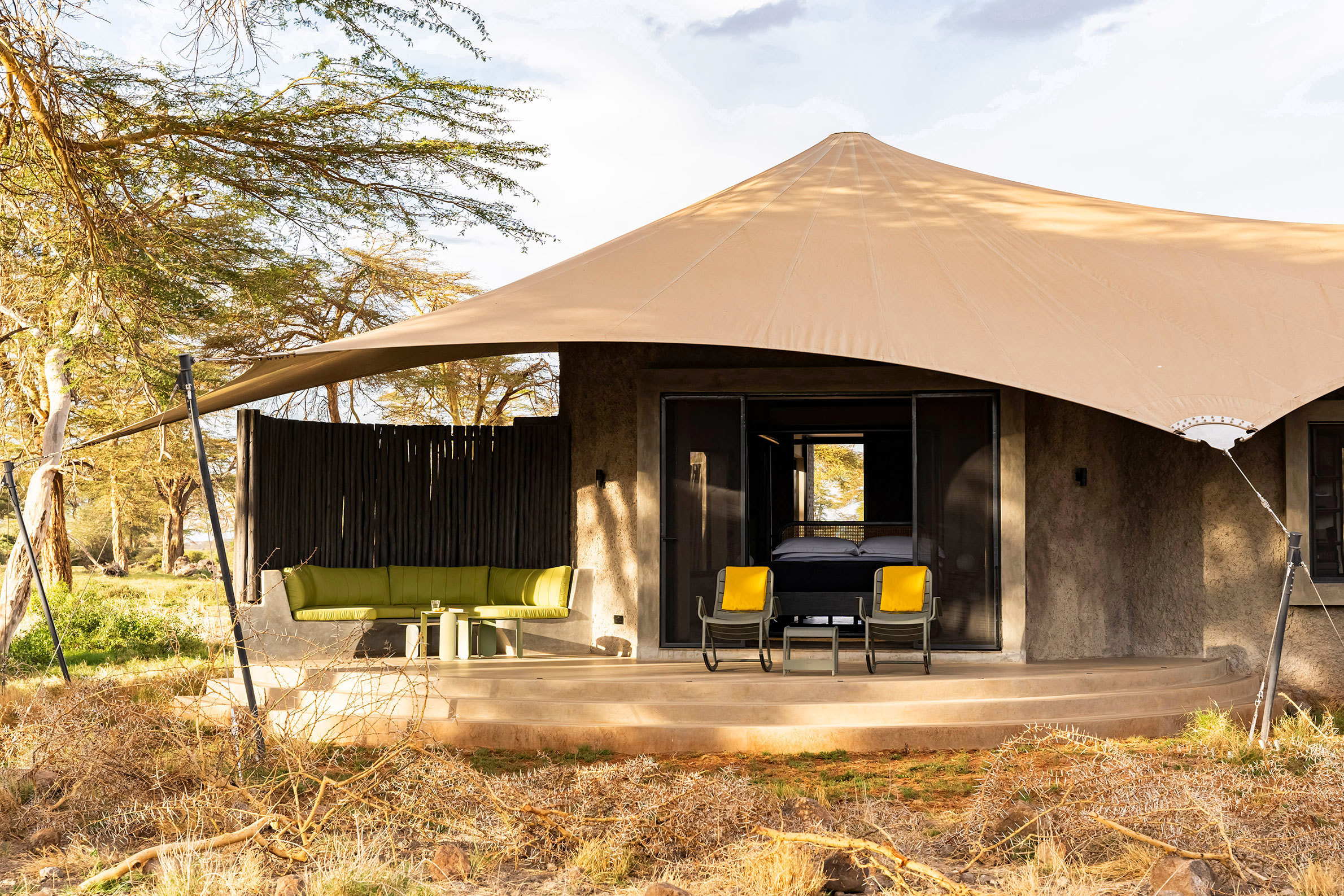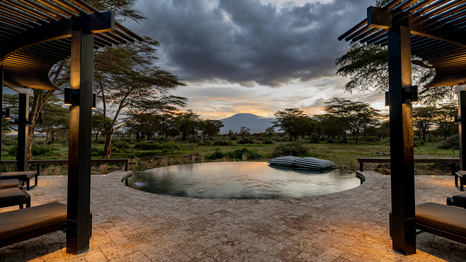 Angama Amboseli ligger i Kimana Sanctuary, ett 5700 hektar stort naturreservat vid Amboseli och som ägs gemensamt av lokala massajer. Denna fristad, är en livsviktig korridor som ger säker passage längs en flera hundra år gammal migrationsstig för lejon, geparder, thompsongazeller, zebror och inte minst elefanter. Här har du en unik möjlighet att se några av världens sista majestätiska elefanttjurar av typen Super Tusker, vars enorma betar väger upp till 45 kilo styck och ibland släpar i marken. Lodgen omfattar tio sviter och ett kompakt huvudområde som innehåller en eldstad, en matplats utomhus, ett spelrum för barn, ett konstgalleri, en fotostudio, en liten infinitypool och en trädplattform med 360-graders fri utsikt över savannen (avnjuts bäst i solnedgången med en cocktail i handen). Arkitekturen och designen hyllar hela områdets elefantbestånd, från de utvalda konstverken till lodgens väggar, gjorda av en blandning av elefantdynga och betong. Varje tältsvit är placerad så att du kan beundra Kilimanjaro från nästan varje hörn. Från gungstolen på verandan till sängen och duschen. Safariturerna görs till fot eller med öppna jeepar i Kimana och Amboseli National Park. I sällskap av kunniga och passionerade guider spanar du efter lejon och geparder på savannen, flodhästar och flamingos i våtmarkerna samt över 400 fågelarter längs vägen.