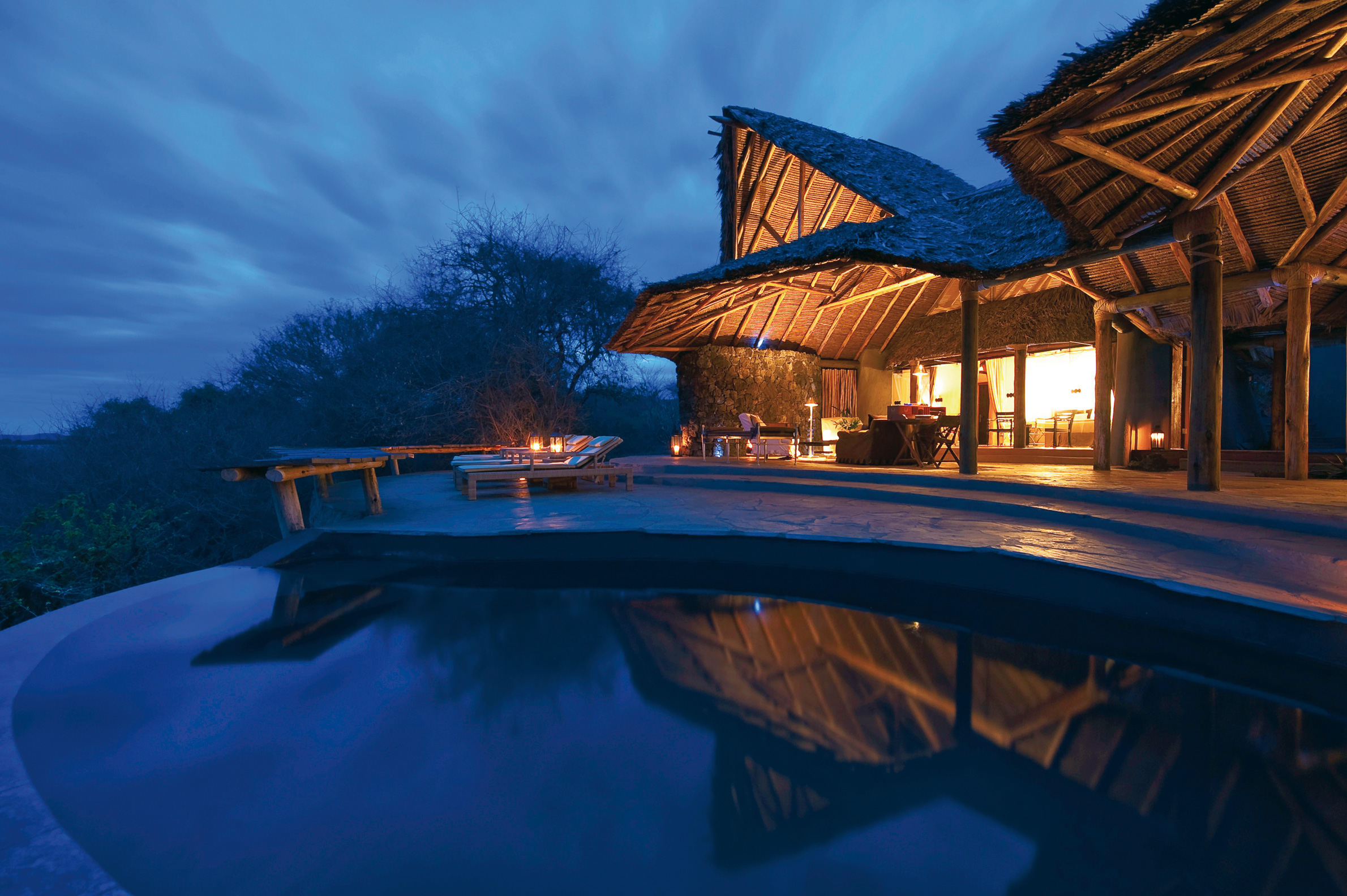 ol Donyo Lodge ligger i den bortglömda vildmarken mellan nationalparkerna East Tsavo och Amboseli, precis där bergskedjan Chyulu Hills ger vika för savannen och med Kilimanjaro som ett snötoppat torn vid horisonten. Lodgen består av tio rymliga bungalows med höga tak av strå och med milsvid utsikt över savannen med sina glesa dungar av akaciaträd. Alla sviter är individuellt inredda med inspiration från traditionell masaiarkitektur och med hantverk från hela Afrika. Varje svit har en härlig takterrass med en inbjudanden ”starbed” varifrån den fantastiska stjärnhimlen upplevs allra bäst. Dessutom har de flesta sviterna en privat pool för svalkande dopp att skölja savanndammet från kroppen. Savannen kring ol Donyo Lodge är hem för några av Afrikas största och fritt strövande elefanthjordar och ger en fantastisk möjlighet att uppleva elefanter på nära håll i dess naturliga miljö. Safariturerna görs i öppna fordon med kunniga guider, morgon och eftermiddag. Man arrangerar även spännande nattsafari för den som vågar följa med och möta savannens nattdjur. Det arrangeras även guidade safariturer till häst, både för nybörjare och mer erfarna ryttare. Vem har inte drömt om att rida sida vid sida med giraffer, antiloper och ett eller annat lejon?