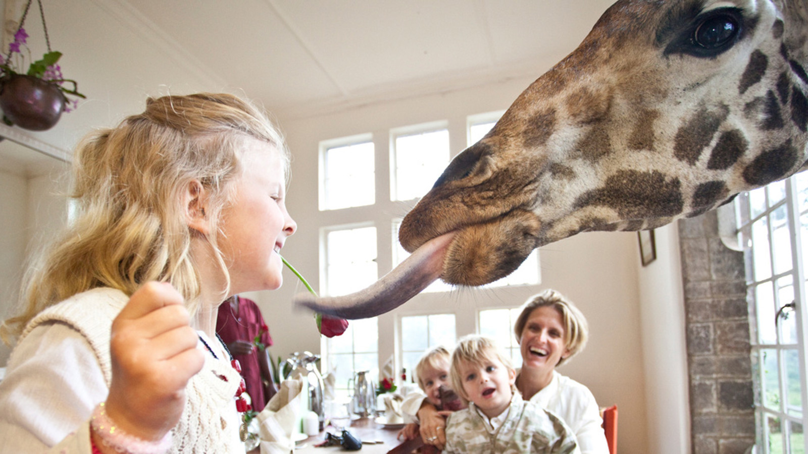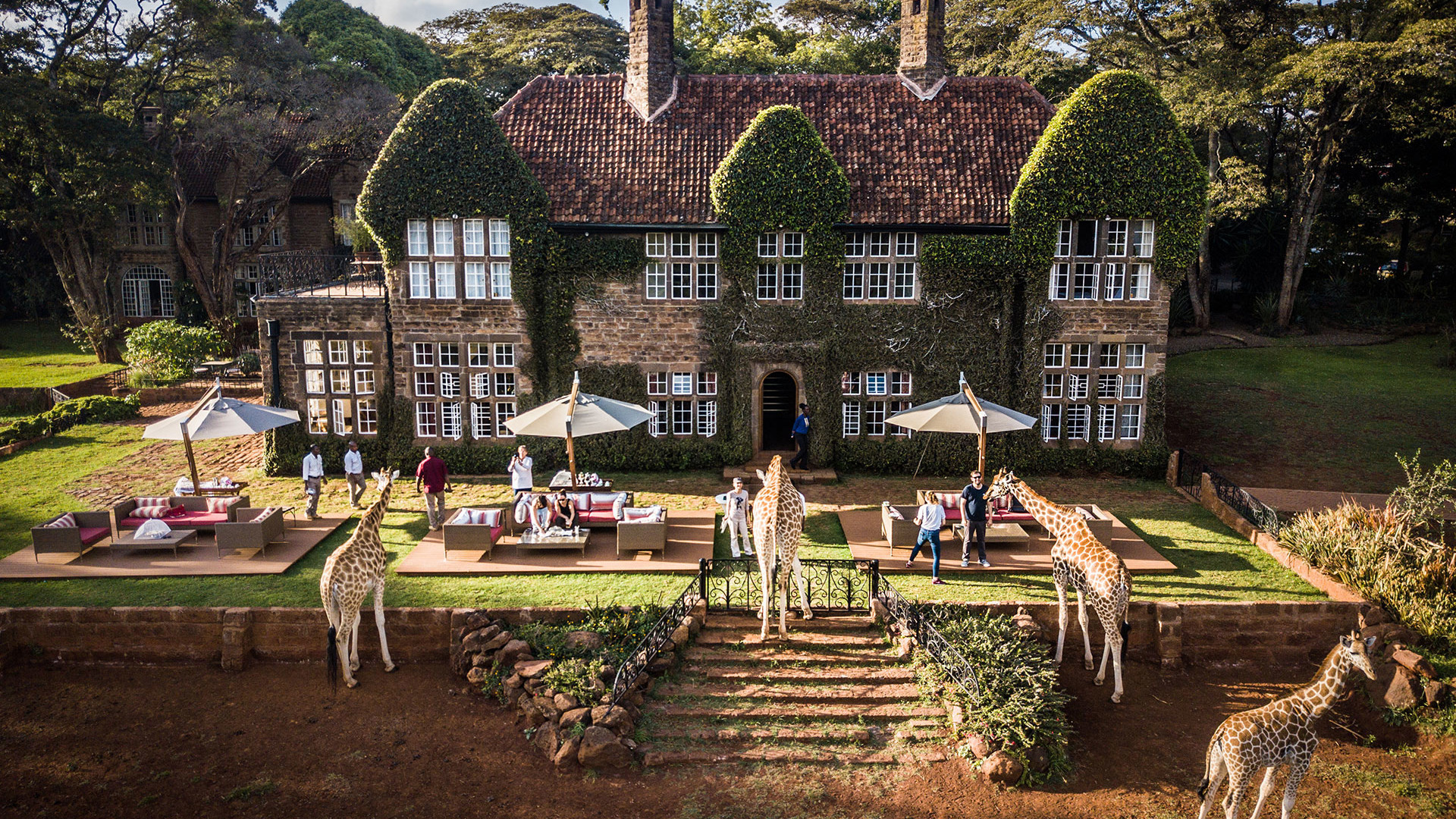I en engelsk herrgårdsbyggnad som liknar en kunglig skotsk jaktstuga från 1930-talet ligger ett av Afrikas mest annorlunda och speciella hotell – Giraffe Manor. Den stora gården ligger i utkanten av Nairobi, en av kontinentens snabbast växande städer och den naturliga startplatsen för Kenyas safariresor. Det som gör Giraffe Manor unikt är de utrotningshotade Rothschildgiraffer som huserar på ägorna och stuckit in sina huvuden genom fönstren för att titta närmare på celebriteter som Mick Jagger, Ava Gardner, Clark Gable och nyhetsankaret Walter Cronkite, som också fått ge namn åt egendomens söta vårtsvin. De eleganta rummen är inredda med antikviteter och konst, och har alla egna badrum och stora himmelsängar. Några av rummen samt den stora verandan har utsikt över Karen Blixens klassiska Ngong Hills. För boendet med det lilla extra rekommenderas just sviterna Karen Blixen eller Finch Hatton. För familjen finns två sviter med extrasängar. Herrgårdens stora terrass är den givna platsen för en GT eller den lokalt bryggda lagern Tusker som sundowner. På ägorna finns även ett vackert växthus för orkidéer och en butik för fynd av afrikansk konst och hantverk.