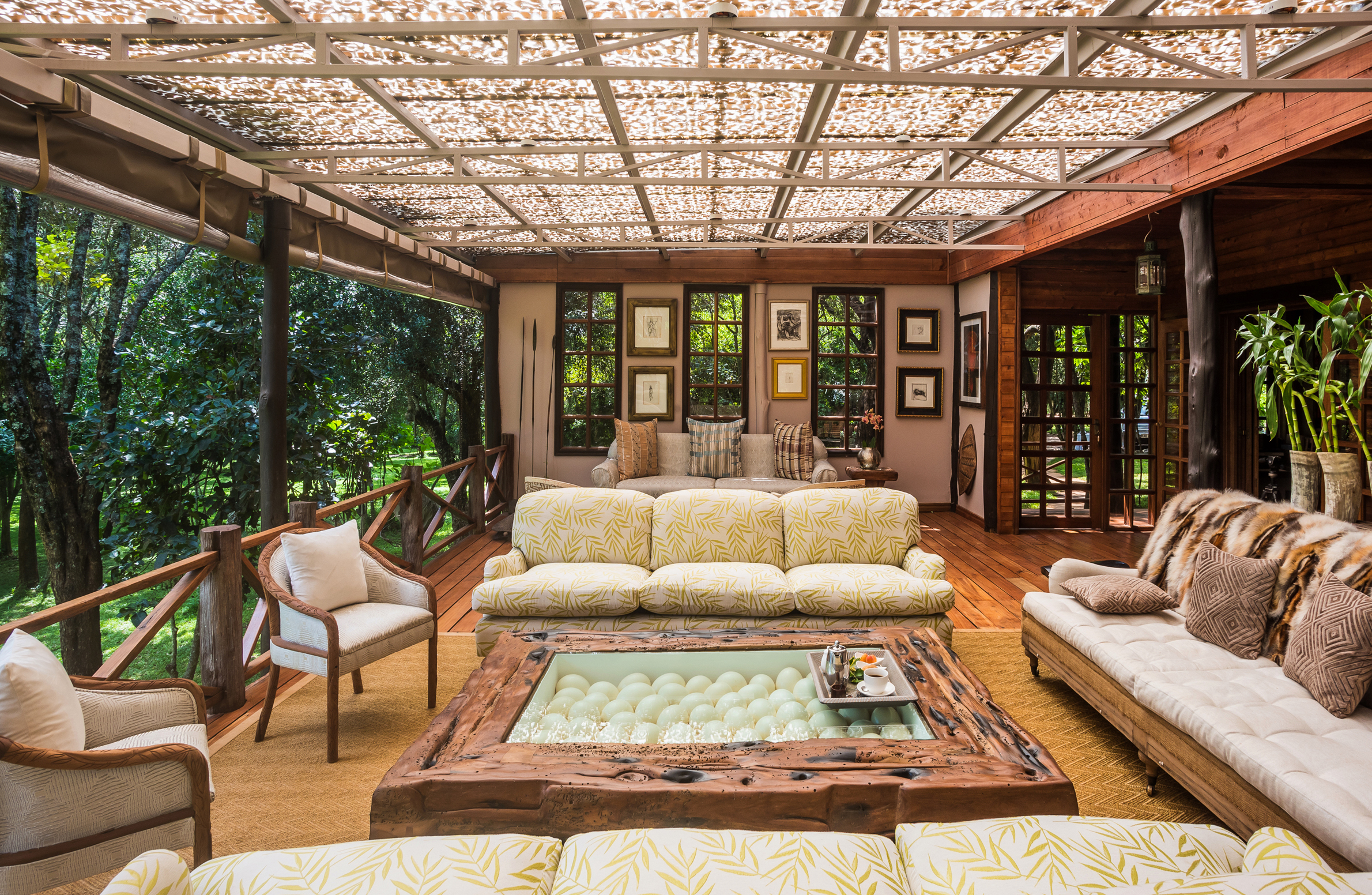 Traditionellt sett har många betraktat Nairobi som ett snabbstopp för övernattning innan äventyret i bushen börjar, men med Hemingways Eden kan det mycket väl komma förändras. Det intima och mycket exklusiva boutique-hotellet, som är designat och byggt av konstnären Tonio Trzeblinski och modedesignern Anna Trzeblinski, ligger inbäddat i grönska i den kenyanska förorten Langata, endast 10 minuters promenad från världskända Giraffe Center. Innan det förvandlades till en fullkomligt unik kombination av ett hotell, en konstnärs-hub, ett levande museum och galleri, utgjorde hotellet kreativa parets familjehem och Anna bor fortfarande granne med fastigheten. Hemingways Eden med sina nio rum är en totalt uppslukande modern kulturell upplevelse, fylld till brädden med Trzeblinskis konstsamling, deras egna kreationer (Annas dotter är keramiker och hennes son skulptör), böcker och föremål från en hel livstid på den afrikanska kontinenten. Som gäst kan du välja mellan att bo i ett av de tre fabulöst inredda dubbelrummen i huvudbyggnaden eller i något av de fem rummen i Tonios omgjorda studioannex. Vartenda ett är designat och dekorerat av Anna personligen och kommer med ensuite-badrum och fantastisk utsikt över trädgården. Restaurangen och baren ”The Deck” som vetter mot skogen och dammen, där påfåglar ofta syns till, är den perfekta platsen för en sundowner eller en hel måltid. Räkna med att allt från cocktailmenyn och kaffeutbudet till den utsökta maten är autentiskt kenyansk. En mängd privata utflykter finns i utbudet: från glasblåsning och ridturer till besök på olika country clubs, nationalparker och historiska platser. Missa inte ett besök på Karen Blixen Museum eller Sheldrick’s Wildlife Trust, ett hem och rehabiliteringscenter för utsatta elefantungar.