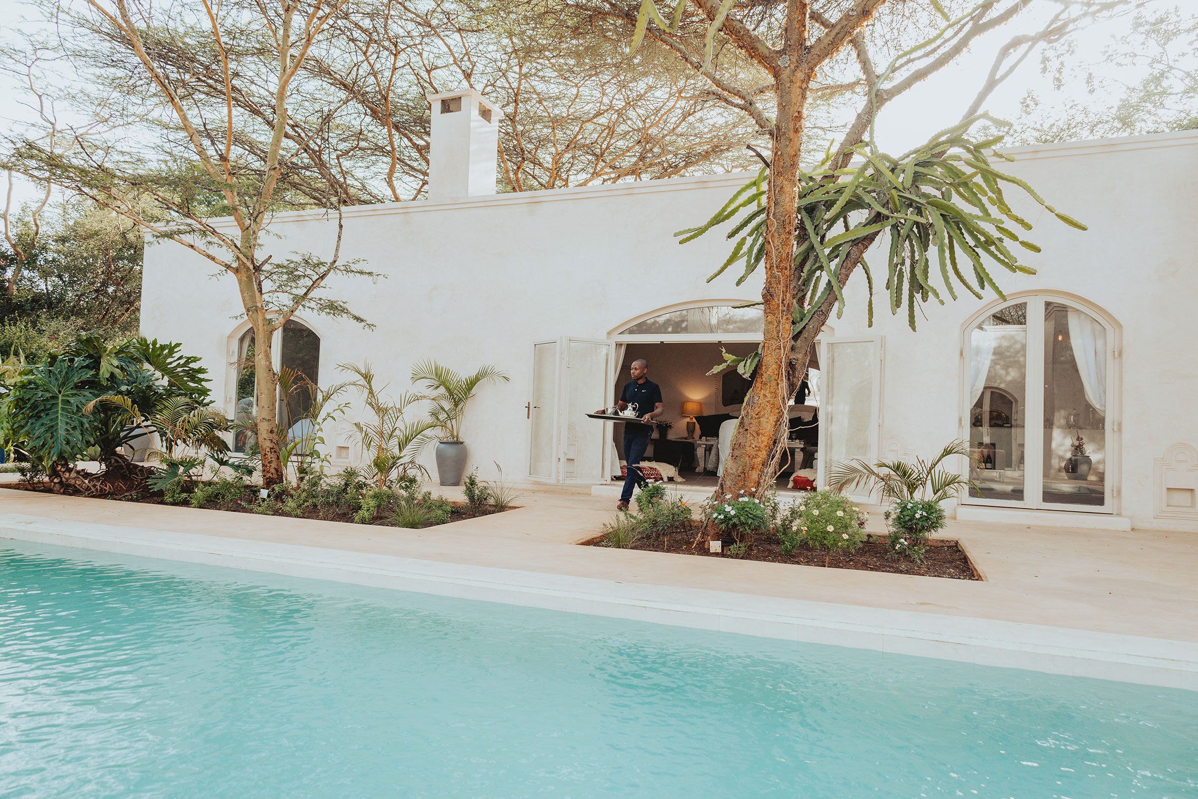 Manzili House är ett hemtrevligt boutiquehotell som ligger i den lummiga, lugna förorten Karen/Langata, vid foten av Ngong Hills, i utkanten av Nairobi. Manzili House är inspirerat av ön Lamus distinkta swahili-arkitektur och består av 2 separata hus; Manzili med 4 vackert inredda dubbelrum och Manzili Ndoto med 2 lika fina sovrum. Rummen är rymliga, eleganta och ljusa. Alla med eget badrum och direkt tillgång till trädgården. I huset finns en stor lounge och matsalen. Här finns också hotellets bar som mot trädgården och poolen. Måltider och drycker kan avnjutas såväl vid poolen eller på takterrassen, som också är en perfekt plats för solnedgångar. Båda husen kan bokas exklusivt eller på individuell basis. Hotellets personal är vänliga och med stort leende hjälper till med tips på de bästa butikerna, konstgallerierna eller restaurangerna i denna exklusiva förort.