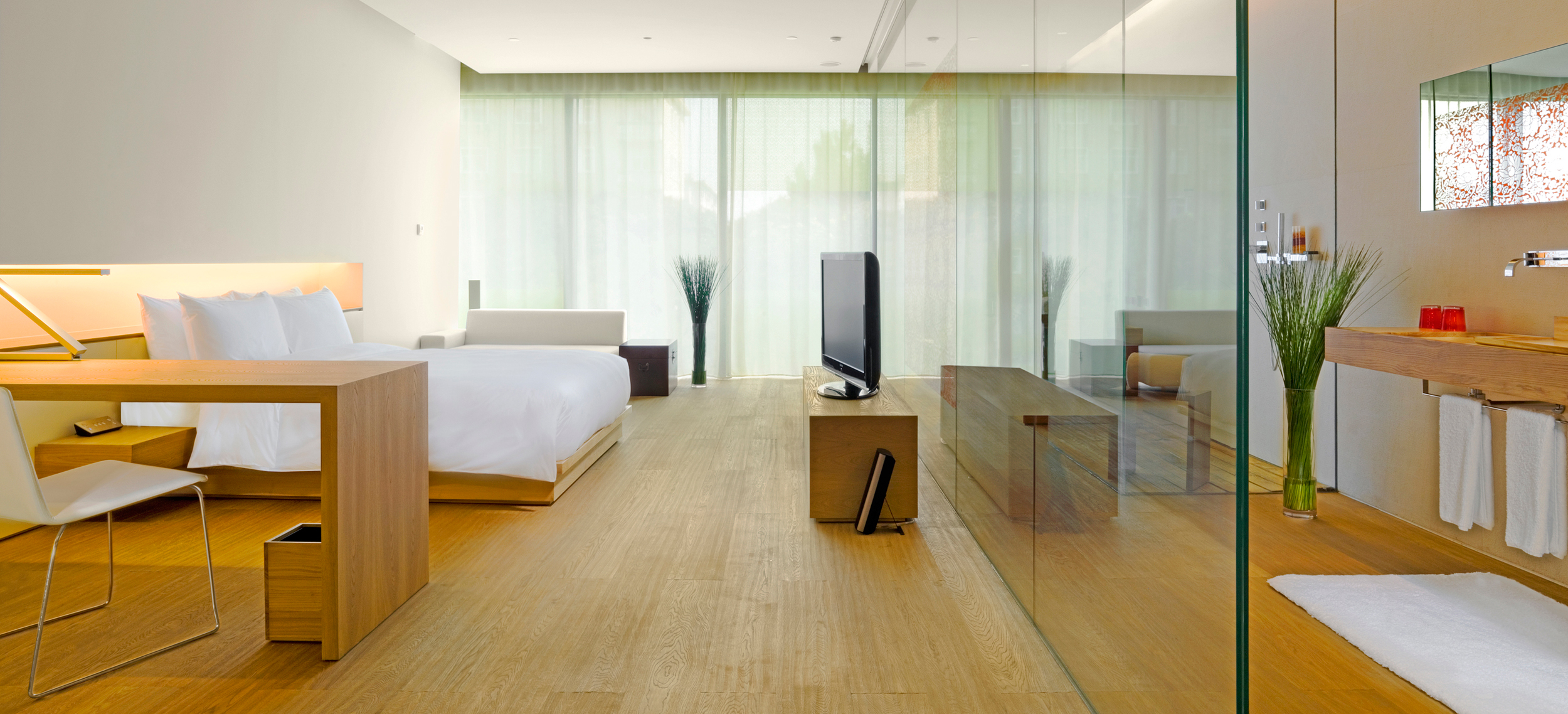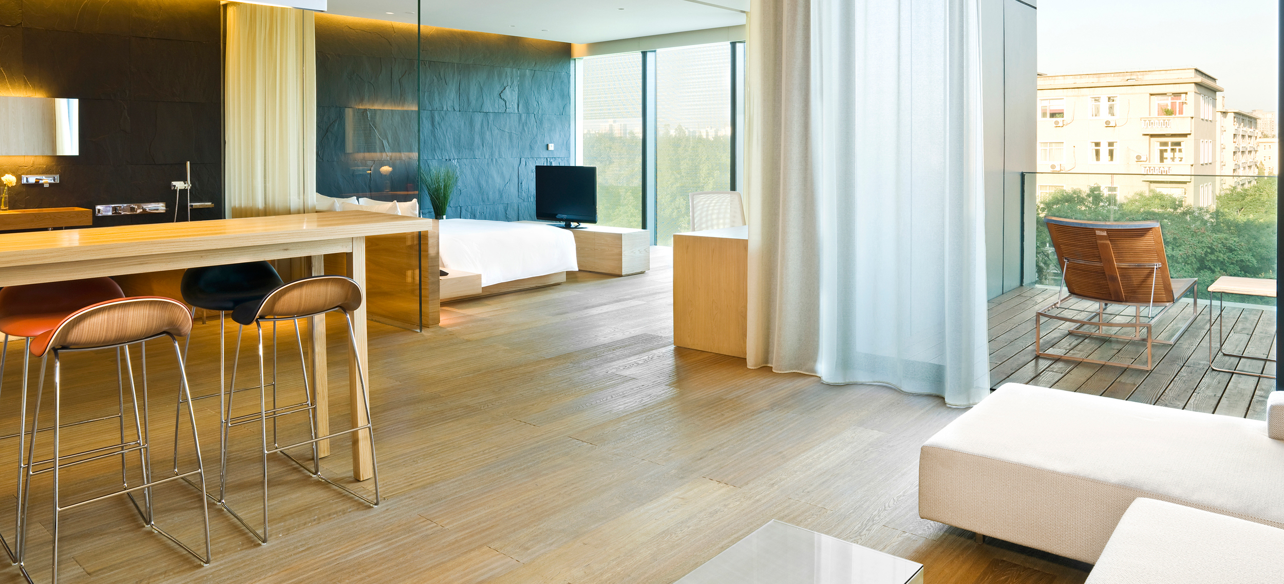 The Opposite House är en minimalistisk dröm med rena, vackra och japanskinspirerade interiörer. Läget är perfekt i den livliga stadsdelen Santilun som förr var ett bättre bedagat distrikt fullt av barer för hemlängtande affärsmän, men idag förvandlat till ett sjudande paradis av shopping och utmärkta restauranger och barliv. Att komma in på The Opposite House liknar inget annat hotell då här inte finns någon reception utan du checkar in försiktigt följd av någon ur den unga, svartklädda personalen med surfplatta. Här råder en mjukt dimmig belysning som påminner mer om konstbelysning än hotell, och skapar en avantgardistisk känsla. Rum och sviter är minimalistiska med vita lakan, gott om ljus genom stora fönster med vita tyger samt blonda träslag överallt. Här och där en enstaka fondvägg i mörkare skiffer. Möblerna är slanka och det finns rymliga balkonger med trätrall och paneler. Rum och badrum åtskiljs av glasväggar och badrummen har underbara badkar samt handfat i trä. Det finns en stor och stillsam pool under ett mjukt ljusinsläpp. I samma rum finns en öppen motionsavdelning där det känns som om en motionssugen Angelina Jolie när som helst skulle kliva upp på löpbandet. Här finns en restaurang som är mycket populär bland Pekings unga hipsters. Sureno är en ovanligt lyckad fusion av spanskt och italienskt.