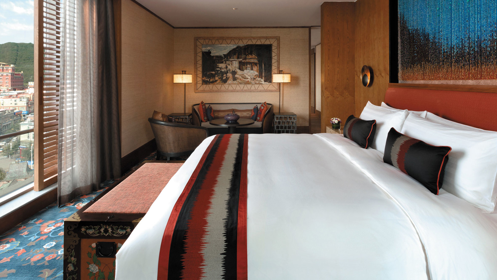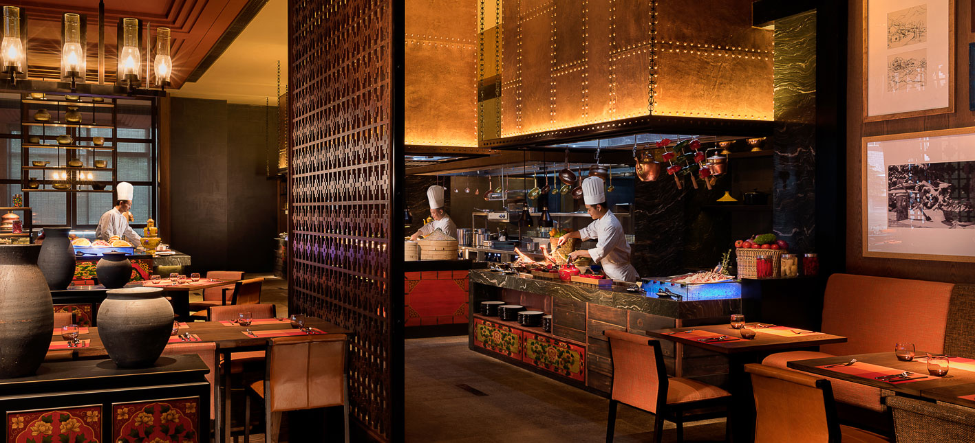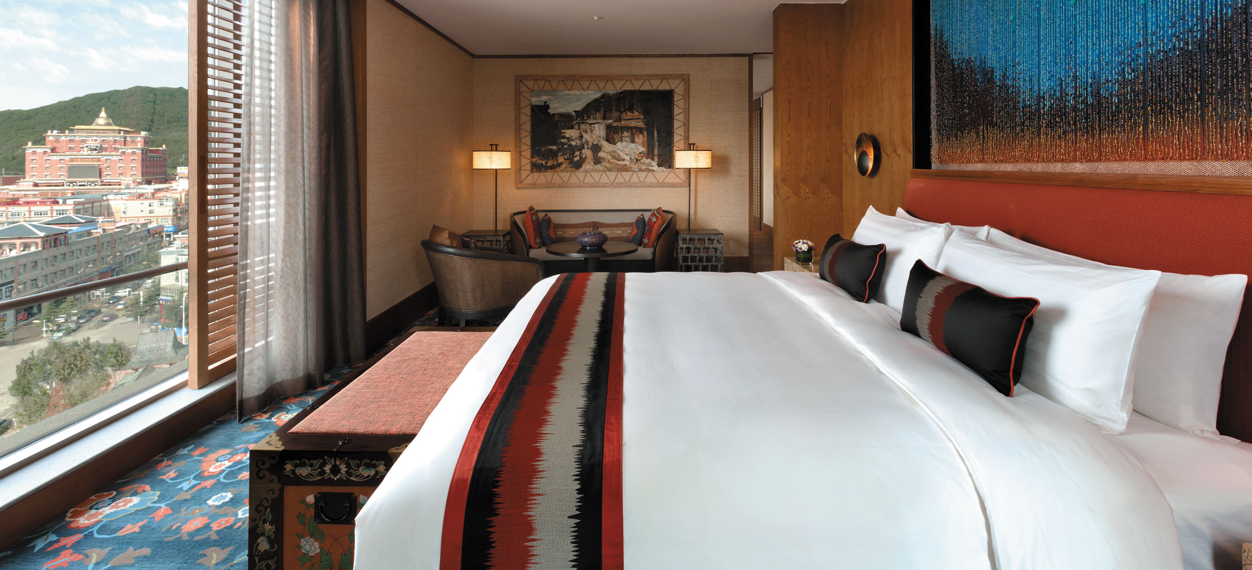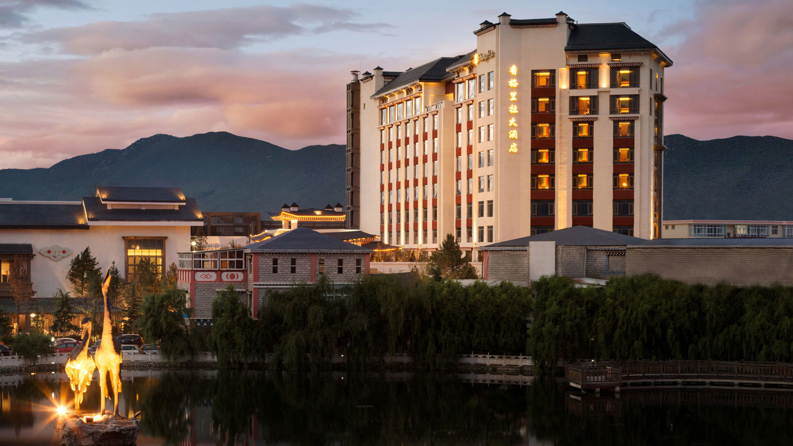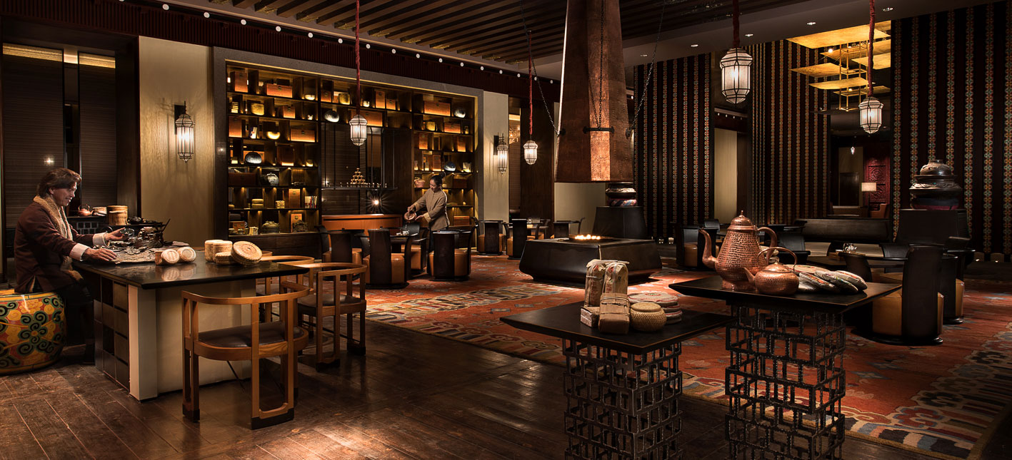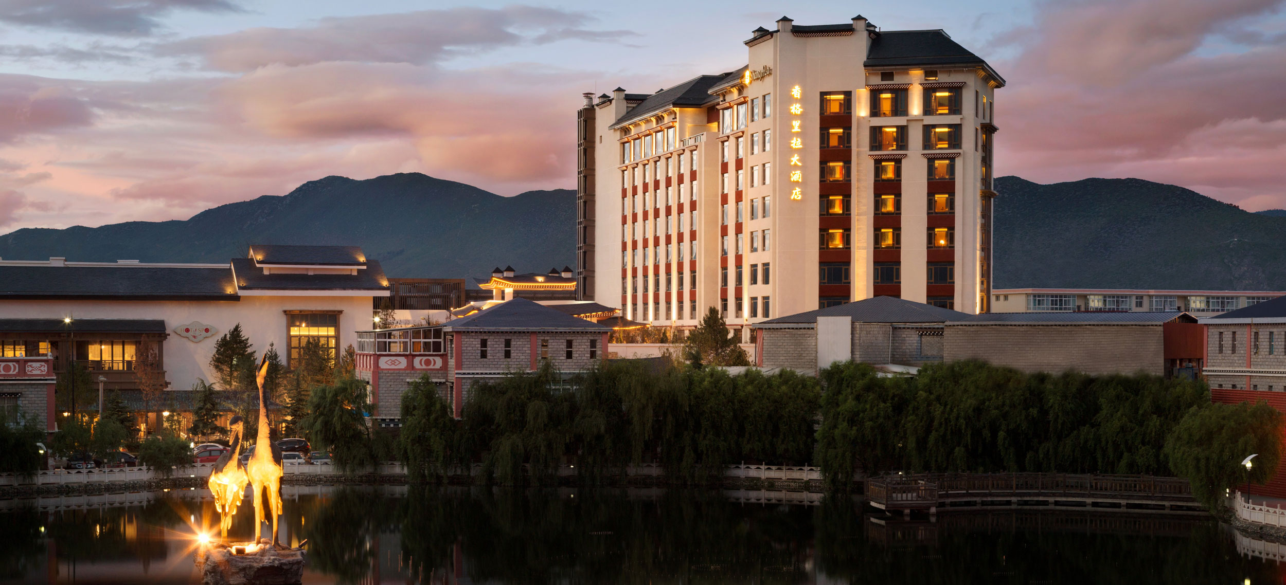 Yunnan i sydvästra Kina är ett andlöst vackert landskap av snötäckta berg, djupa klyftor, urskogar, vida gräsmarker och bördiga dalar. Den vackra naturen ligger under jordens kanske blåaste himmel. Diqing är en del av den tibetanska prefekturen och staden ser ut att sväva på bergssluttningen ovan en sjö. Nära sevärdheter som Tigersprångs-ravinen, berget Haba och Songzanlin, det största buddhistklostret i Yunnan. Redan när du anländer till Hylandia by Shangri-la får du ett stycke Yunnan-kultur i form av kärnmjölk och valnötter doppade i lokal honung, serverad i Vishetens Rum, biblioteket som används för incheckning. Rum och sviter är rymliga och har utsikt mot de hisnande snötäckta bergen eller trädgården. Arkitektur, stil och inredning är traditionellt tibetansk. I varje rum finns en plats för en teceremoni. Badrummen är modernt bekväma. Shangri-La-sviten är hotellets största och mäter 187 kvadratmeter med stora fönster mot staden, trädgården och bergen.