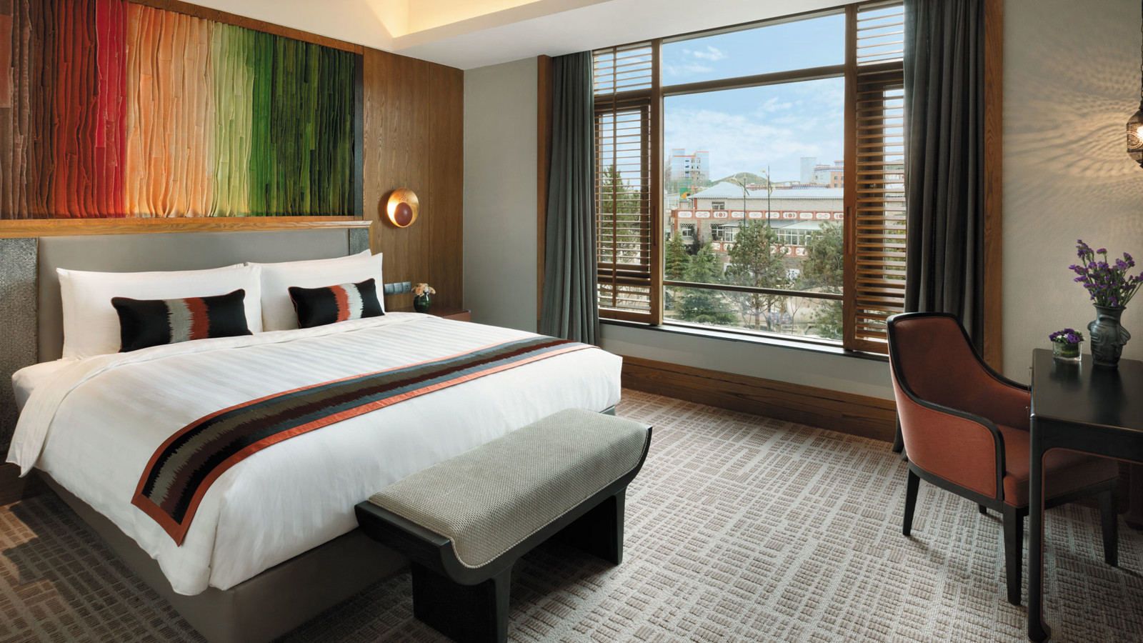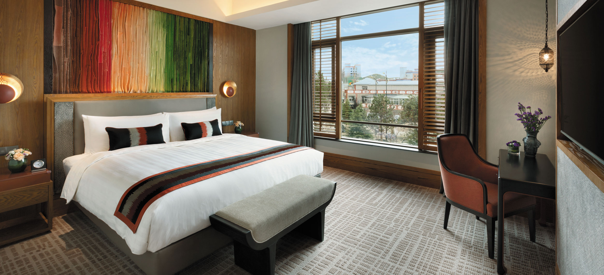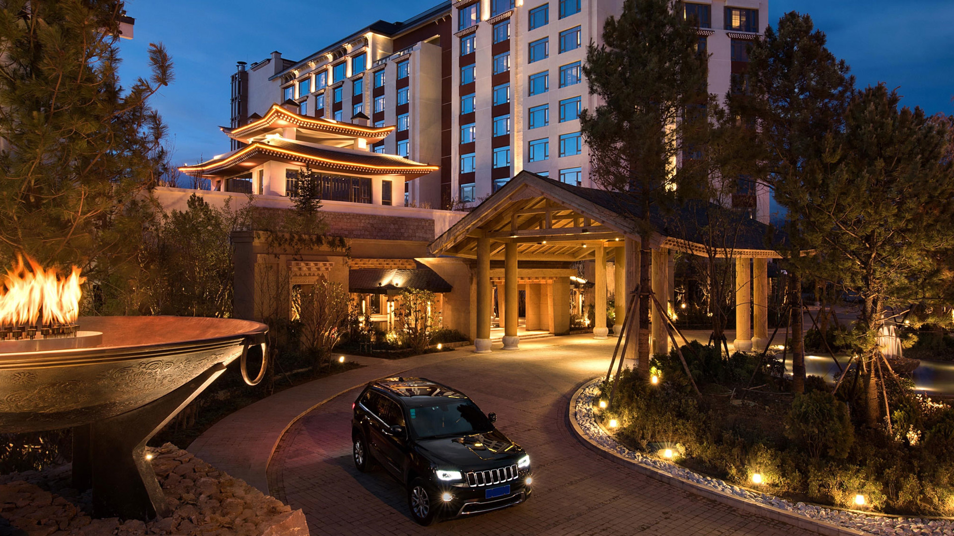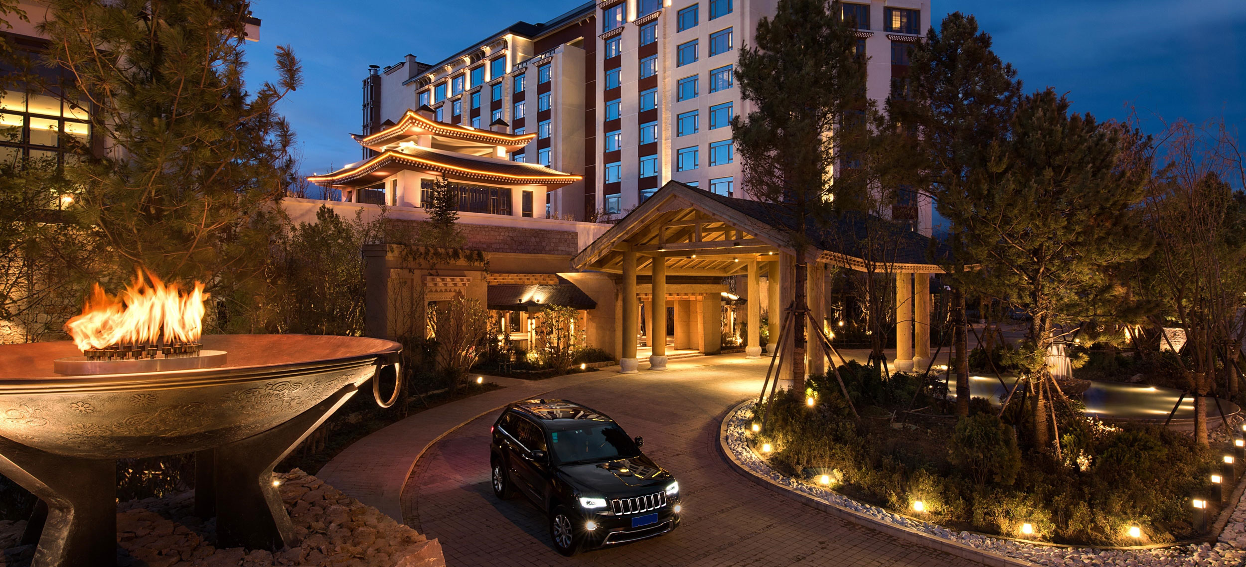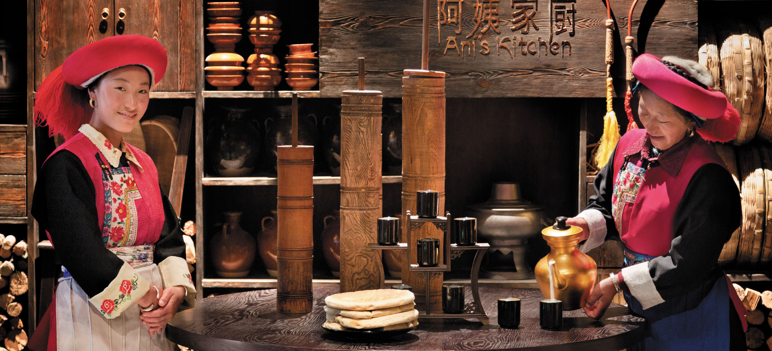 Yunnan i sydvästra Kina är ett andlöst vackert landskap av snötäckta berg, djupa klyftor, urskogar, vida gräsmarker och bördiga dalar. Den vackra naturen ligger under jordens kanske blåaste himmel. Diqing är en del av den tibetanska prefekturen och staden ser ut att sväva på bergssluttningen ovan en sjö. Nära sevärdheter som Tigersprångs-ravinen, berget Haba och Songzanlin, det största buddhistklostret i Yunnan. Redan när du anländer till Hylandia by Shangri-la får du ett stycke Yunnan-kultur i form av kärnmjölk och valnötter doppade i lokal honung, serverad i Vishetens Rum, biblioteket som används för incheckning. Rum och sviter är rymliga och har utsikt mot de hisnande snötäckta bergen eller trädgården. Arkitektur, stil och inredning är traditionellt tibetansk. I varje rum finns en plats för en teceremoni. Badrummen är modernt bekväma. Shangri-La-sviten är hotellets största och mäter 187 kvadratmeter med stora fönster mot staden, trädgården och bergen.
