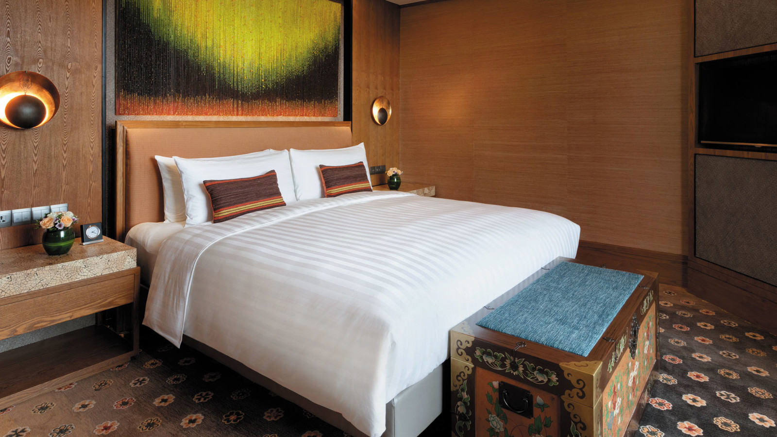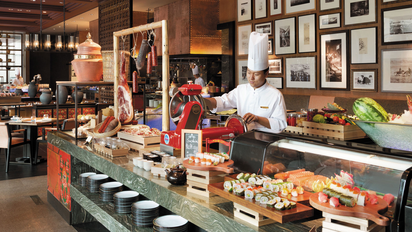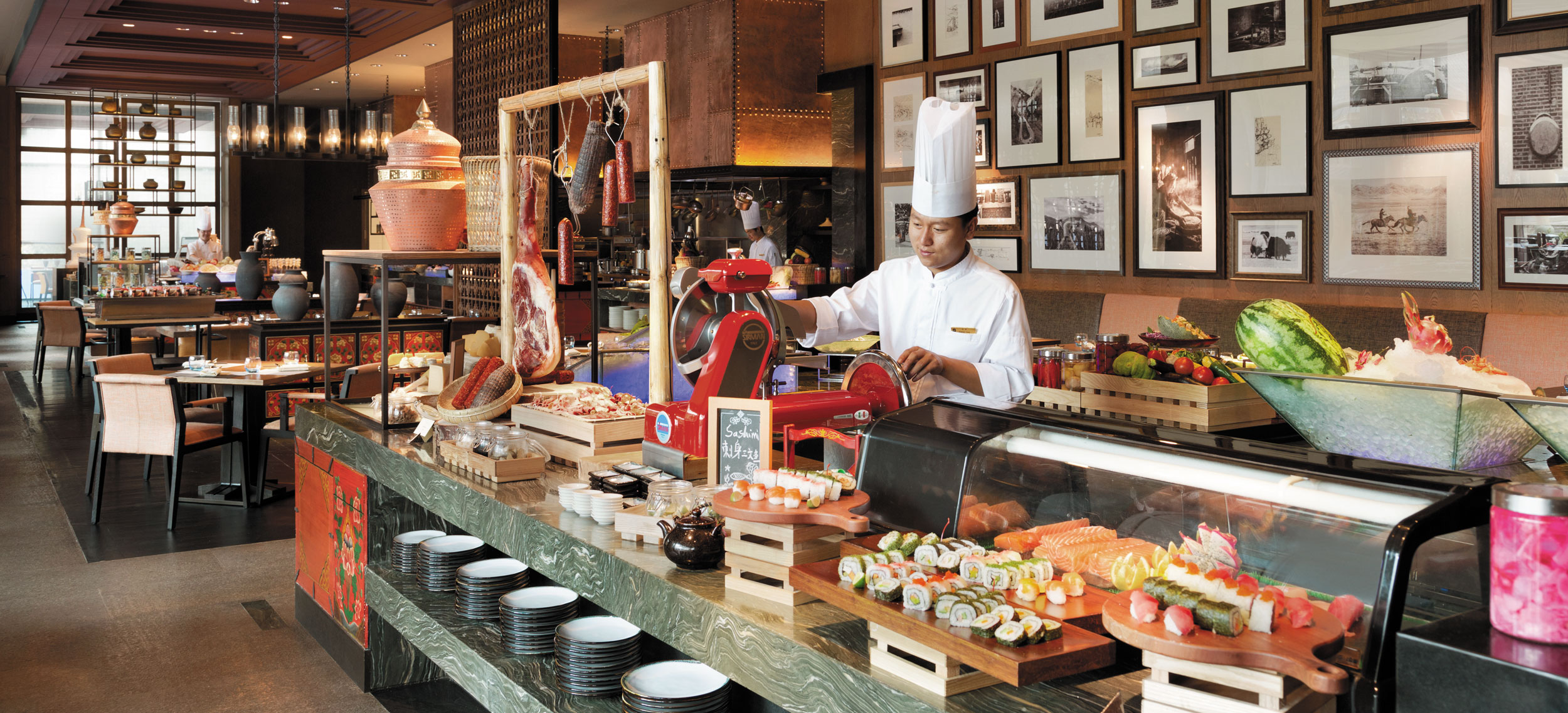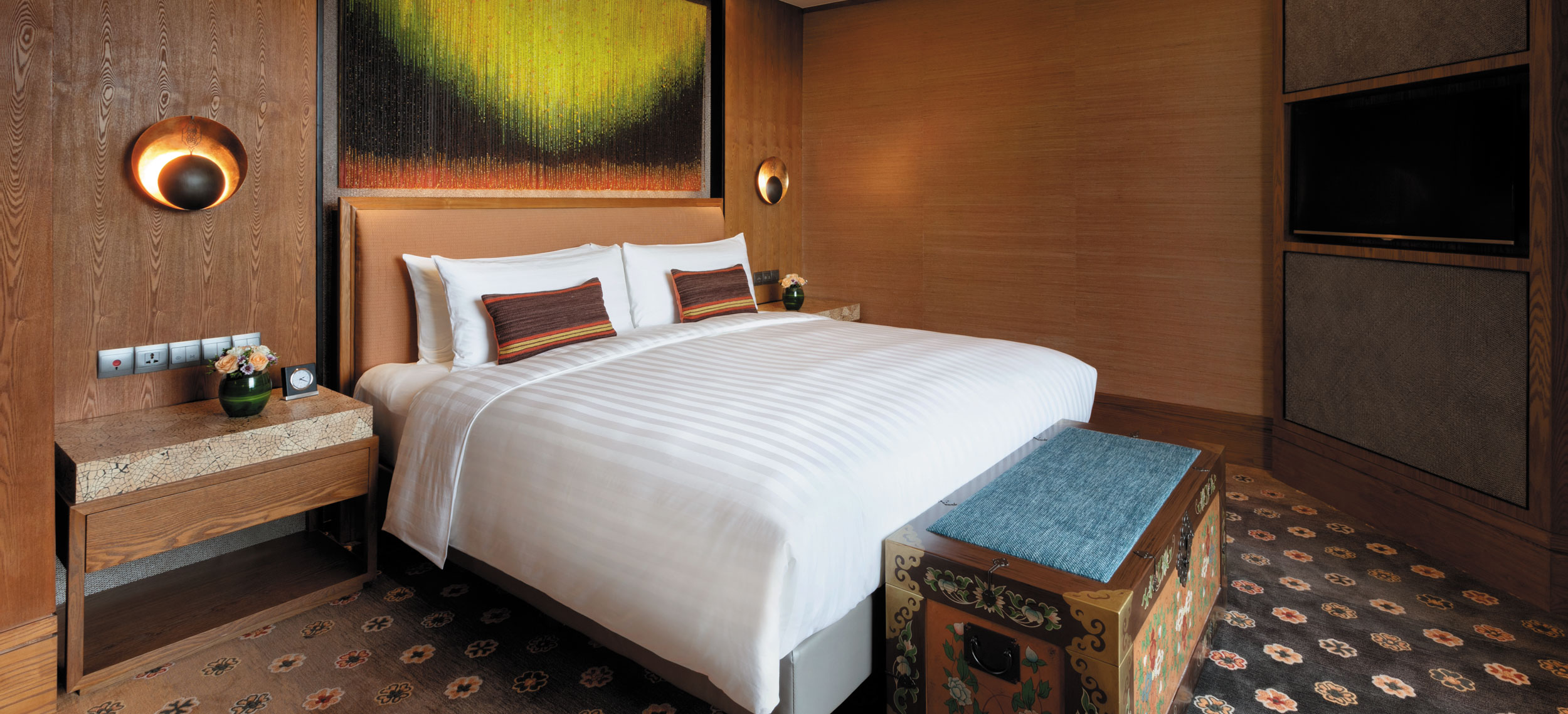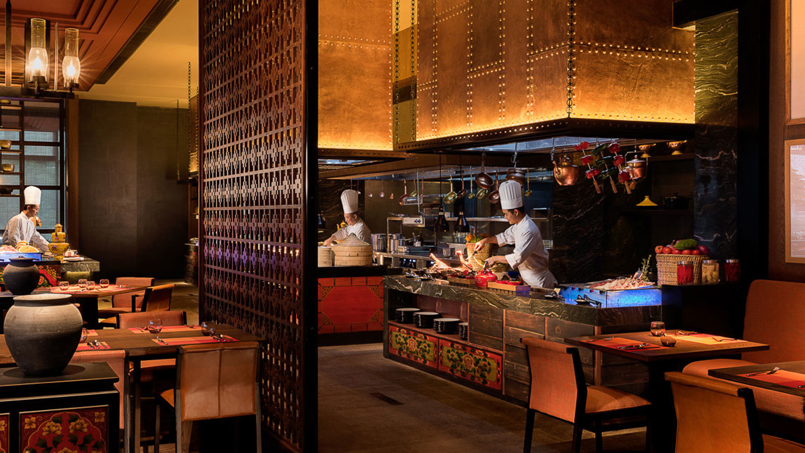Yunnan i sydvästra Kina är ett andlöst vackert landskap av snötäckta berg, djupa klyftor, urskogar, vida gräsmarker och bördiga dalar. Den vackra naturen ligger under jordens kanske blåaste himmel. Diqing är en del av den tibetanska prefekturen och staden ser ut att sväva på bergssluttningen ovan en sjö. Nära sevärdheter som Tigersprångs-ravinen, berget Haba och Songzanlin, det största buddhistklostret i Yunnan. Redan när du anländer till Hylandia by Shangri-la får du ett stycke Yunnan-kultur i form av kärnmjölk och valnötter doppade i lokal honung, serverad i Vishetens Rum, biblioteket som används för incheckning. Rum och sviter är rymliga och har utsikt mot de hisnande snötäckta bergen eller trädgården. Arkitektur, stil och inredning är traditionellt tibetansk. I varje rum finns en plats för en teceremoni. Badrummen är modernt bekväma. Shangri-La-sviten är hotellets största och mäter 187 kvadratmeter med stora fönster mot staden, trädgården och bergen.