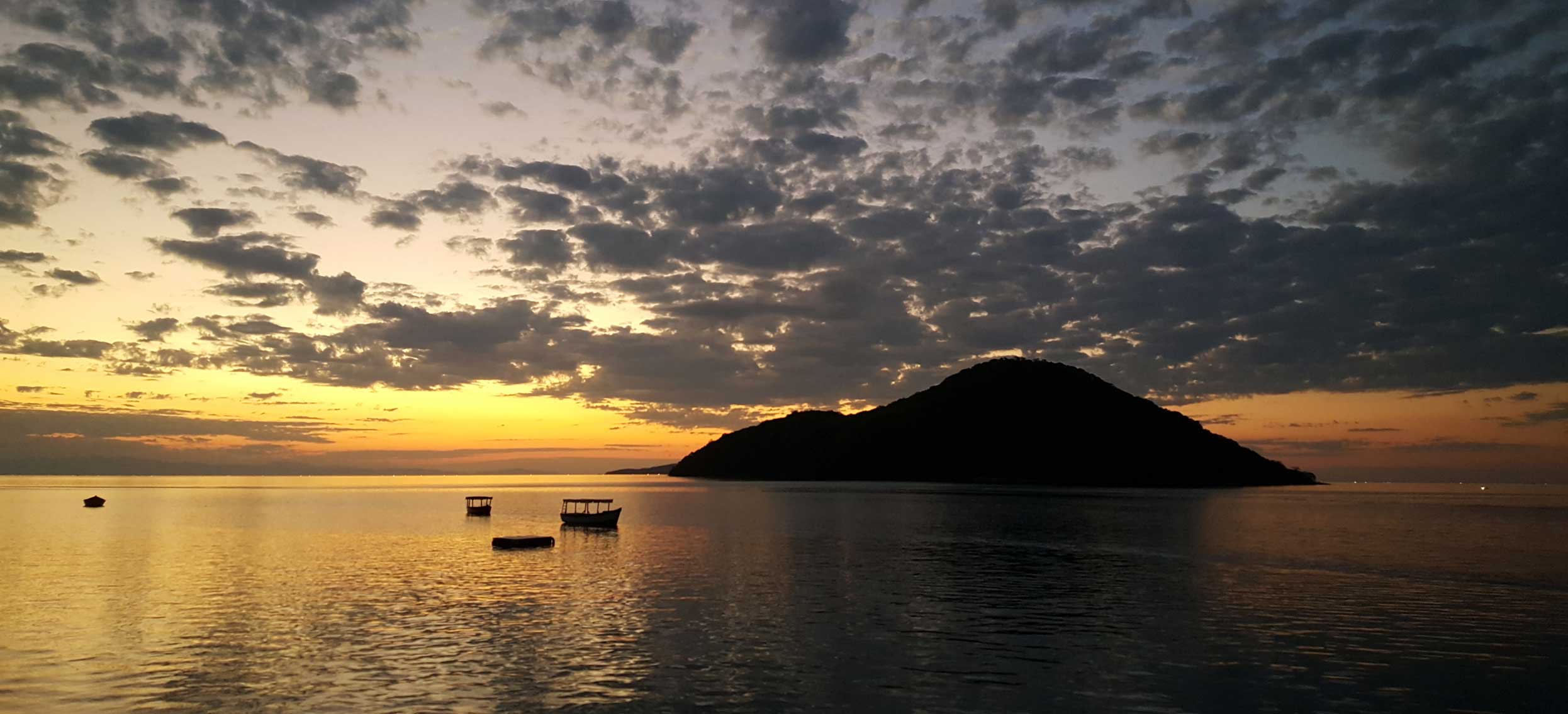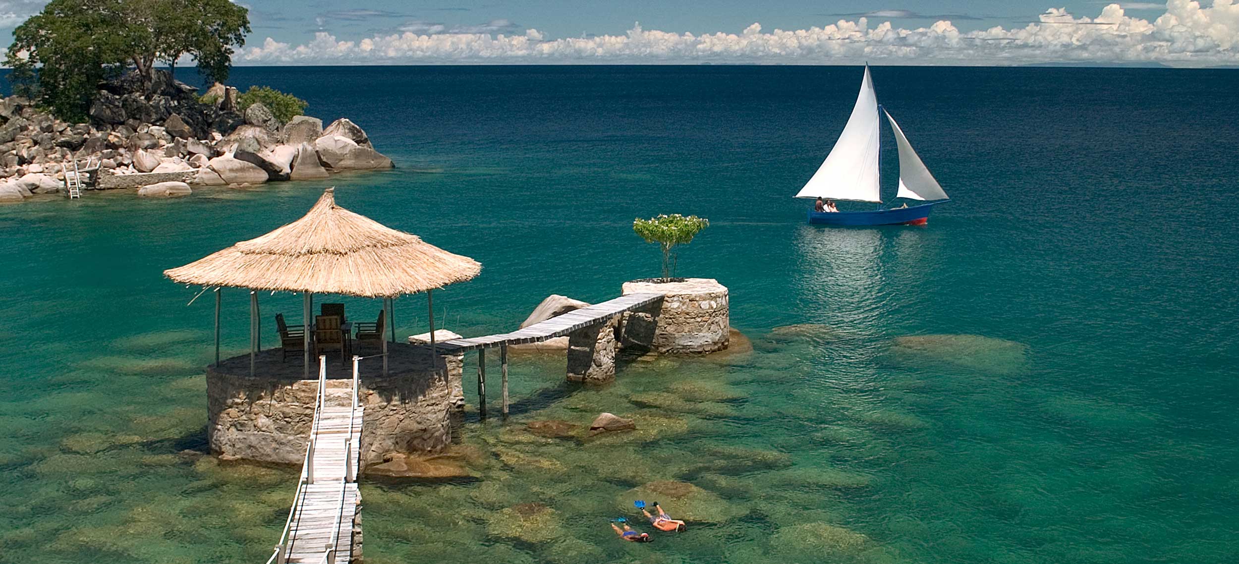 Briljantblå. Malawi kallas Afrikas varma hjärta och är endast en fjärdedel så stort som Sverige. Landet ligger inklämt mellan sina mer berömda grannar Tanzania, Zambia och Mocambique. Att detta lilla land saknar kust mot Indiska oceanen gör ingenting alls, eftersom Malawisjöns briljantblå vatten är lika klart som glas och myllrande av för sjön unika fiskarter. Att resa till Likoma Island är en hemlighet perfekt för en smekmånad eller en skräddarsydd avrundning efter safari och äventyr i Zambia, Zimbabwe eller Sydafrika. Malawisjön är världens nionde största sötvattensjö och sträcker sig nästan sextio mil från norr till söder med Likoma Island perfekt placerad i mitten. Ön har ett av Afrikas mest romantiska hotell, en stolt historia och en tegelkatedral lika stor som den i Winchester. Varje söndag samlas 4000 människor – hälften av öns befolkning för en annorlunda högmässa i en sal större än en fotbollsplan. För den som gillar att snorkla eller dyka är Malawisjön en oupptäckt pärla som är den insjö i världen med flest arter av fisk. I vattnet med trettio meters sikt finns till exempel över 700 sorters ciklider. Några hajar behöver du inte oroa dig för och såväl nilkrokodiler som flodhästar favoriserar andra delar av Malawisjön. Den briljantblå.