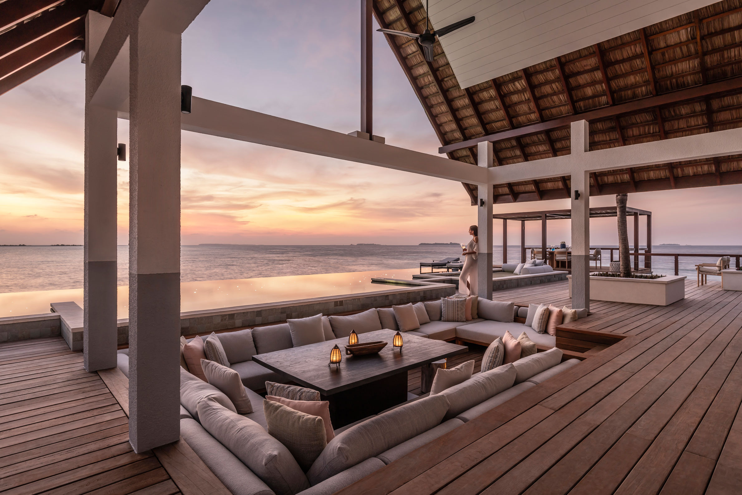 En 35-minuters resa med sjöflyg från flygplatsen i Malé tar dig till Baa Atoll och Four Seasons Resort Maldives at Landaa Giraavaru. Det är en fantastisk resort där 103 enorma (några av Maldivernas största), ultra-privata och utsökt inredda villor, ligger perfekt placerade längs den orörda stranden eller står på pålar i den kristallklara lagunen. Varje villa kommer med lyxiga badrum, både inomhus- och utomhus dusch och stor terrass med privat infinitypool. När magen kurrar kan du fylla på energidepåerna med internationell buffé i Café Landaa, avnjuta italienska Michelin-specialiteter i Blu Beach Club, äta grillade läckerheter med tårna i sanden på Fuego Grill eller inta Indiska oceanens godaste drinkar på Seabar. Servicen är förstklassig och eftersom både valhaj och världens största samling mantor samlas i atollen mellan juni och november, erbjuder man en förträfflig manta-on-call-service. Den innebär att du meddelas direkt när forskningsteamet har upptäckt de snälla giganterna till havs. Därefter har du 30 minuter på dig att ta ditt snorklingskit och hoppa i motorbåten. En annan unik service är möjligheten att få en ayurvedisk konsultation med skräddarsydda kost- och livsstilsrekommendationer. Följ gärna upp konsultationen med ett lärorikt föredrag på Marine Discovery Center där man arbetar med återuppbyggnad av Maldivernas korallrev och vårdar skadade sköldpaddor.