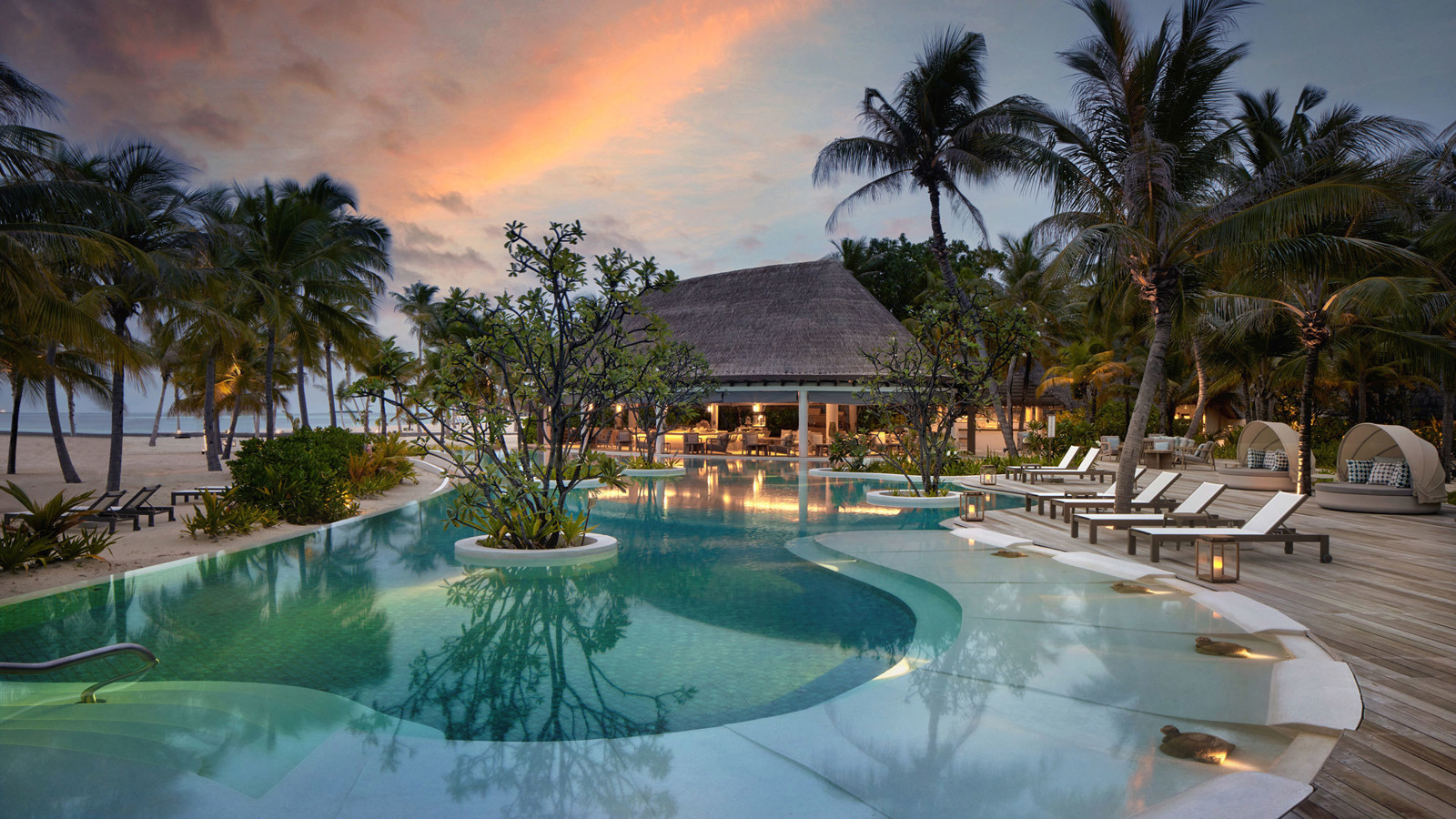 Six Senses Kanuhura ligger på en valformad ö i atollen Lhaviyani, 30-minuter med sjöflygplan från flygplatsen i Malé och stoltserar med några av Maldivernas vackraste stränder. Atollen är känd för sitt marina liv med fyra meter breda mantor, delfiner, havssköldpaddor, gulfenad tonfisk och en och annan valhaj. Generöst utspridda över hela ön ligger de 91 villorna, vissa direkt på stranden, andra på pålar i vattnet. Samtliga är ljusa och rymliga, inredda med vittvättat trä, geografiska mönster samt utomhusbadrum och trädäck som fortsätter rakt ut i sanden eller i havet. På Six Senses Kanuhura behöver du aldrig ha långtråkigt. Du kan sysselsätta dig med allt från lyxiga spabehandlingar till yoga, pilates, snorkling, paddling och tennis. Här finns till och med en fotbollsplan där roliga ”personalen mot gästerna matcher” går av stapeln. Utflykter som delfinspaning och djuphavsfiske anordnas också på förfrågan. På Kanuhura har du dessutom 42 olika dykplatser att välja mellan inom en timmes båtresa. För gäster med barn finns en fantastisk barnklubb där fyra- till elvaåringarna får gå på skattjakt, klä ut sig till pirater och segla till en öde ö. Tonåringarna är sysselsatta med spel, fotboll och filmkvällar. I solnedgången rekommenderar vi att du intar ett av indiantälten vid Iru Beach Bar, lutar dig tillbaka med en parasolldrink i handen och glömmer att världen utanför existerar.