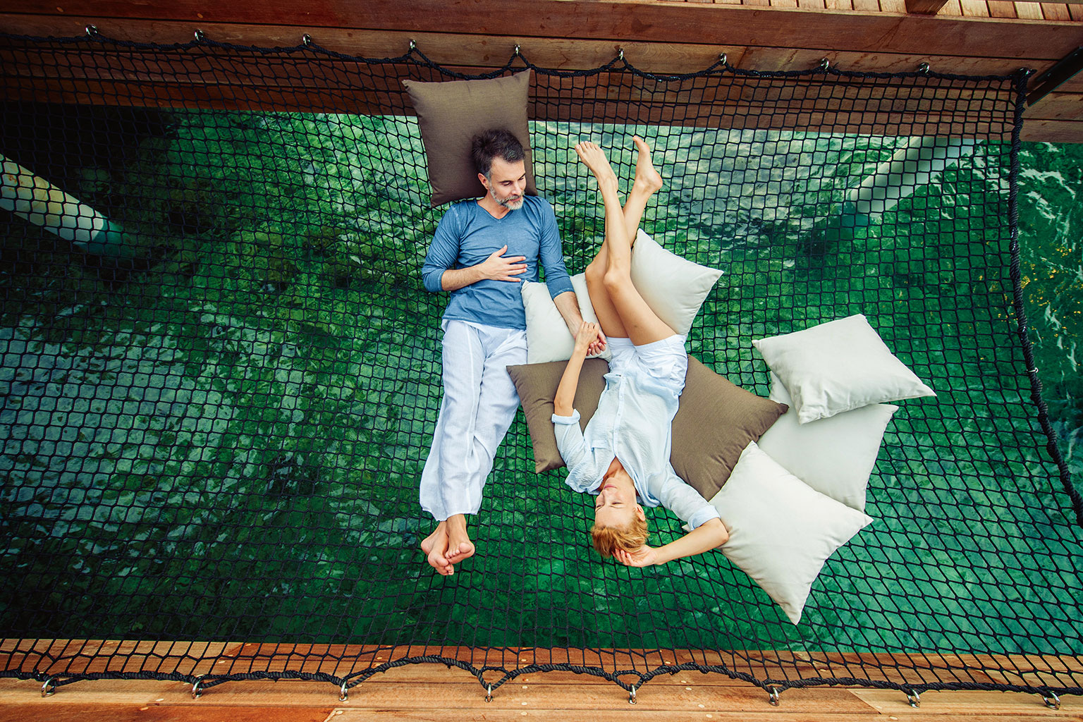 Sett från luften ser Veela Private Island ut som de havssköldpaddor som i generationer har bebott ön och gett denna maldiviska dröm sitt namn. Som gäst på Veela, där avskildhet och komfort är ledorden, blir du behandlad som en kunglighet. Designen i villor och residens är öppen, superexklusiv och genomtänkt in i minsta detalj. Privat pool är en självklarhet vare sig det handlar om din strandvilla, poolvilla eller din romantiska residens som endast är tillgängligt med båt. Denna smekmånadsdröm svävar ovanför lagunen med stora terrasser, pool, badkar och schäslonger som alla är vända mot horisonten. Självklart har residenset en privat kock, butler, spa och privat gym. På Veela Private Island står Michelinkockar för maten som serveras på flera intima restauranger där ovanför vågorna flytande ARAGU är en favorit. En annan favorit är CRU Champagne Lounge och den cylinderformade vinkällaren där du både kan njuta en gourmetmiddag och sällsynta viner som en Romanée Conti från 1956. På Velaa kan du spela tennis under tak , svalkad av två gigantiska fläktar. Även padel och squash erbjuds. Liksom de senaste hight tech-vattensporterna. Som inte det vore nog kan du putta i paradiset. Legenden Jose Maria Olazabal har designat en bana med nio olika tees, sex greener och sju bunkrar. För barnen finns en Kids Club med ett eget och förmodligen Maldivernas enda ”äventyrsland” i miniatyr.