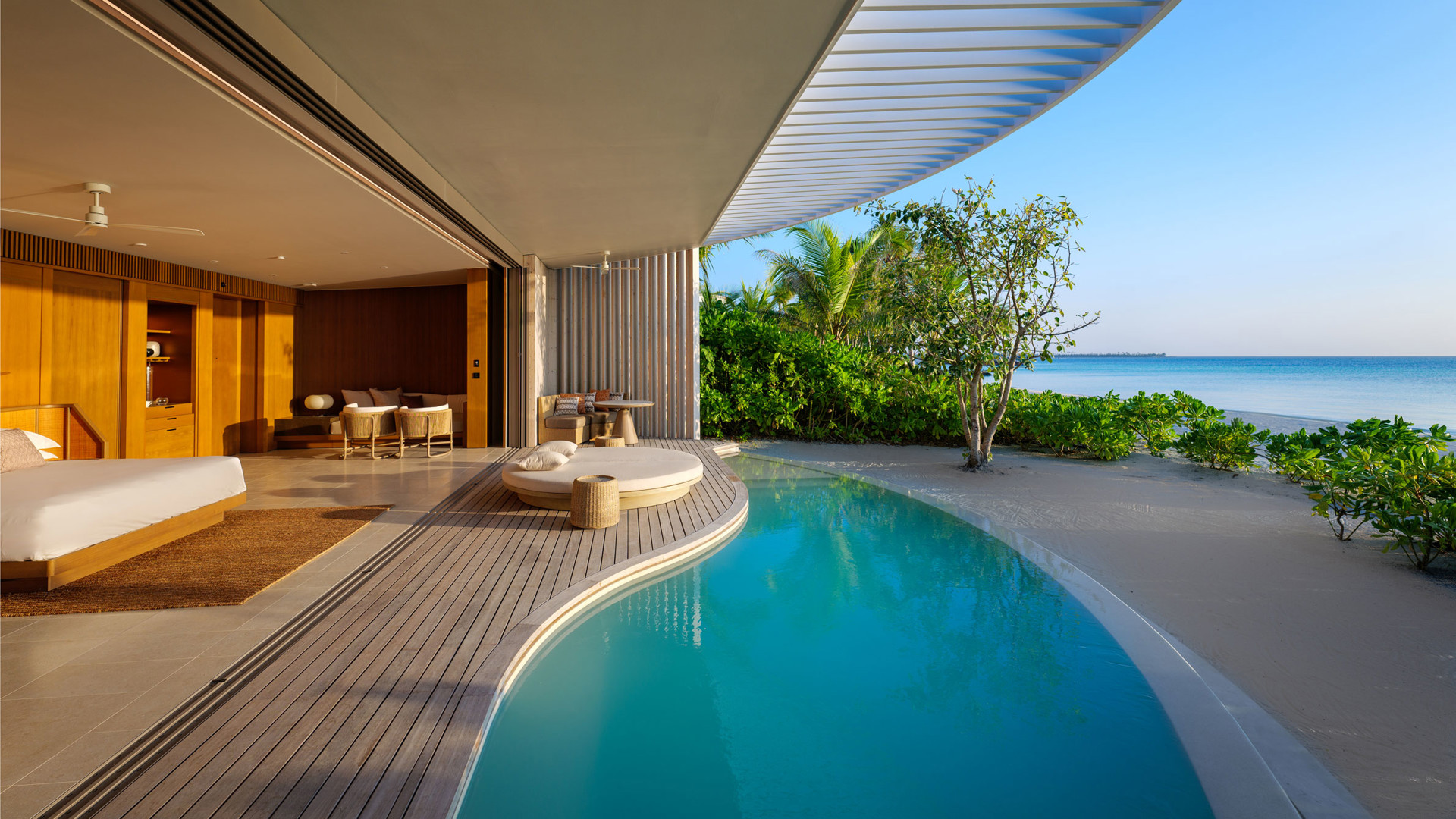 The Ritz-Carltons första resort på Maldiverna ligger i North Male Atoll, en bekväm 45-minuters tur med motorbåt eller 10 minuter med sjöflygplan från den internationella flygplatsen. Den drivs till 30 procent av solenergi och platsen är Fari Islands, en skärgård som förutom ett annat femstjärnigt drömhotell, stoltserar med en pittoresk hamn fylld av lyxshopping och ett urval av högklassiga restauranger. The Ritz-Carlton har storsatsat på alla fronter. Här utgörs nämligen den lägsta rumskategorin av exklusiva villor på pålar i lagunen och kommer med mycket påkostad inredning, infinitypool, stora soldäck, havsutsikt, cyklar och privat butlerservice dygnet runt. Du är mitt ute i Indiska oceanen, på ett hotell sammanbundet av tre öar, men det råder ingen brist på aktiviteter; du kan ägna dig åt allt från lyxiga spabehandlingar till vattenäventyr där du dyker med hajar och havssköldpaddor, glider över korallrev eller flyter på ytan i en kanot, kajak eller på surfingbräda. För barn mellan fyra och 12 år finns en barnklubb med dagliga arrangemang, futuristiska lekplatser och en pool med både rutschkanor och jetstrålar. Hela familjen har också möjlighet att engagera sig i kurser i fotografi, matlagning och lära sig spela maldiviska trummor. Hela sju restauranger och två barer finns att välja mellan, belägna i hamnen, på Grand Sunset Beach och på ön som kallas Culinary Island. Grönsaker och örter hämtas direkt från hotellets organiska trädgård och teamet av kockar jobbar tätt med lokala fiskare för att säkerställa att endast nyfångad fisk och purfärska skaldjur når gästernas tallrikar samt att fisket är hållbart.