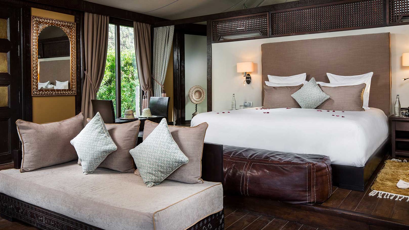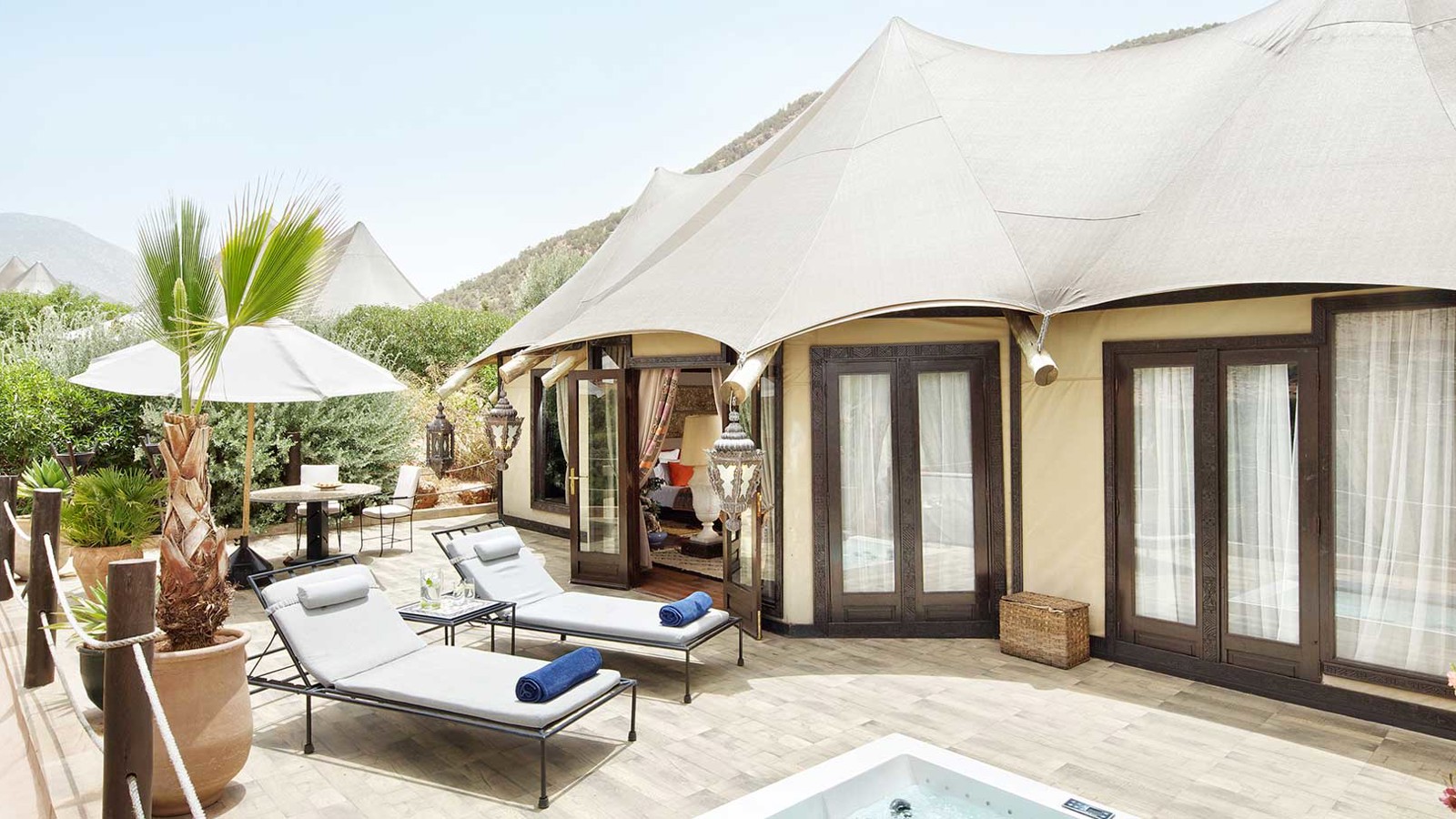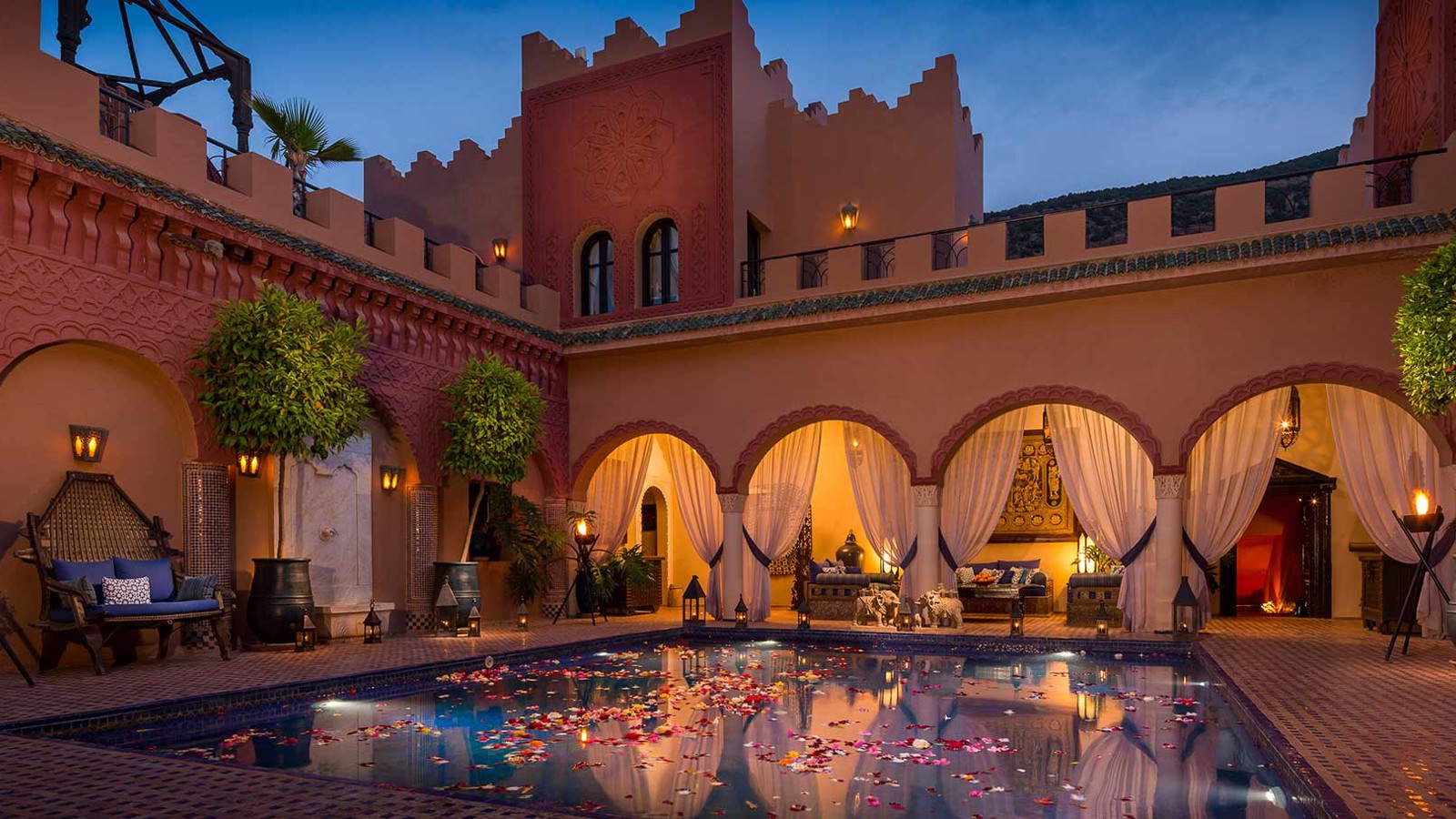 Majestätiska Kasbah Tamadot ligger på en kulle vid foten av de mytomspunna Atlasbergen, endast en timme med bil från myllret i Marrakech. Flygmogulen Sir Richard Branson har skapat en tidlös tillflyktsort som gjord för romantiska möten bland ringlande trädgårdar, ångande hammam och pooler där vattnet är lent som siden. Alla rum, sviter och exklusiva tältsviter har berbernamn och är individuellt inredda med marockanska möbler och delar av konsthandlaren Luciano Tempos antikvitetssamling. Matupplevelsen håller både lokal och internationell toppklass. Köket och restaurangen Kanoun ligger under bar himmel på en stor terrass med fantastisk utsikt över Atlasbergen. Kasbah Tamadot går utmärkt att kombinera med Marrakech.