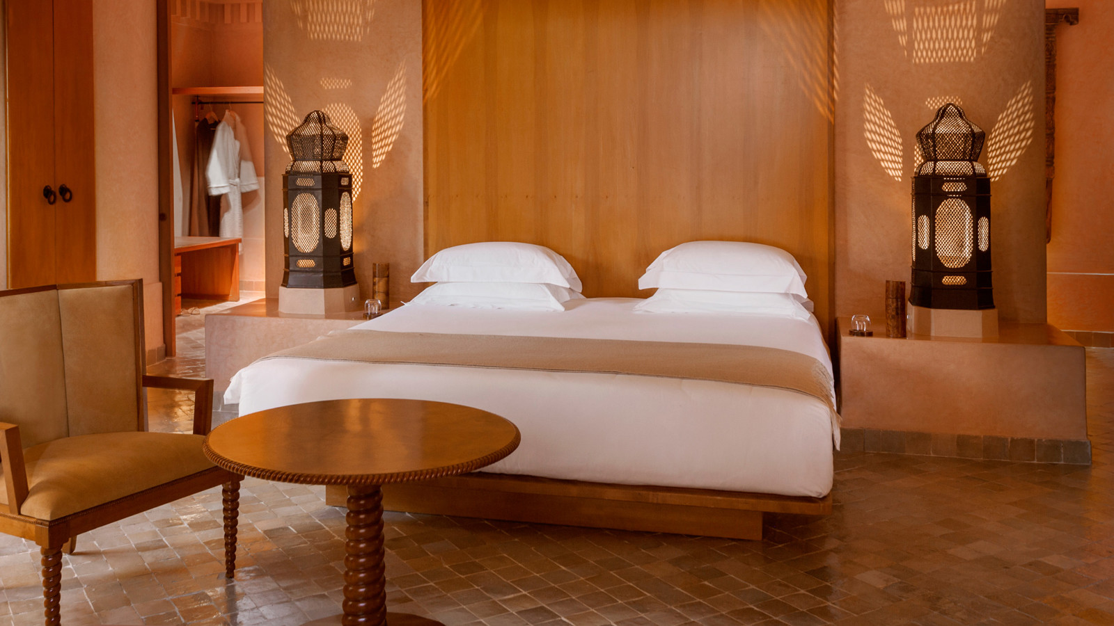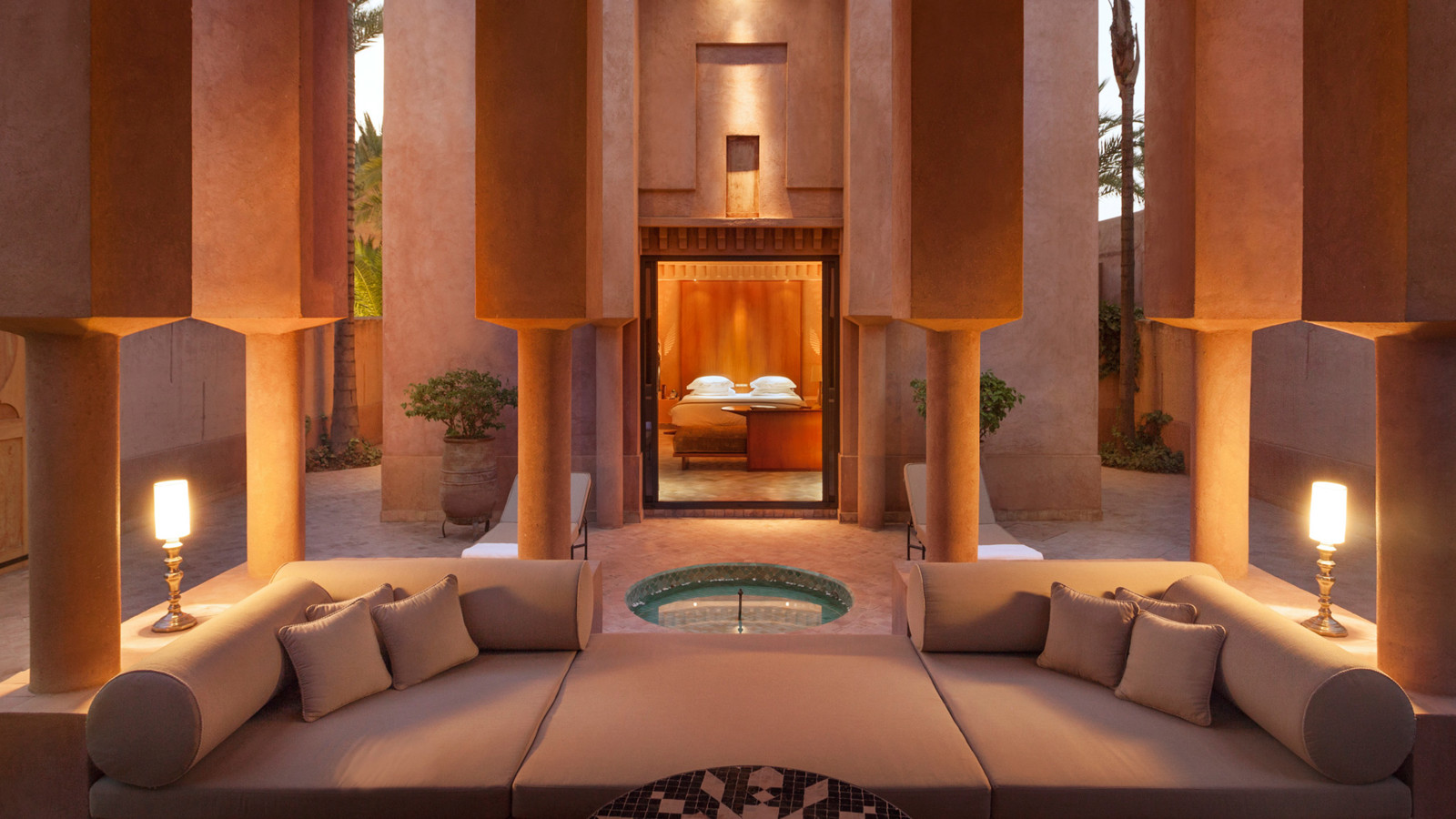 Detta fridfulla paradis dansar passionerat efter naturens tongångar och livssyn i Marocko. Du möts av dubbla handgjorda ekdörrar som leder in till en magnifik pelargång, Amanjenas design är i utsökt morisk arkitektur, byggt med lokalt material. Insidan har öppna ytor, högt i tak och lyktor av mässing. Varje rum har en egen privat gård med lusthus och fontän. Hotellet har två restauranger, den ena serverar autentisk marockansk mat och den andra bjuder på thailändskt och andra internationella rätter. Under taklyktornas sken, på arabiska mattor kan du koppla av efter en shoppingtur bland Amanjenas egna butiker.