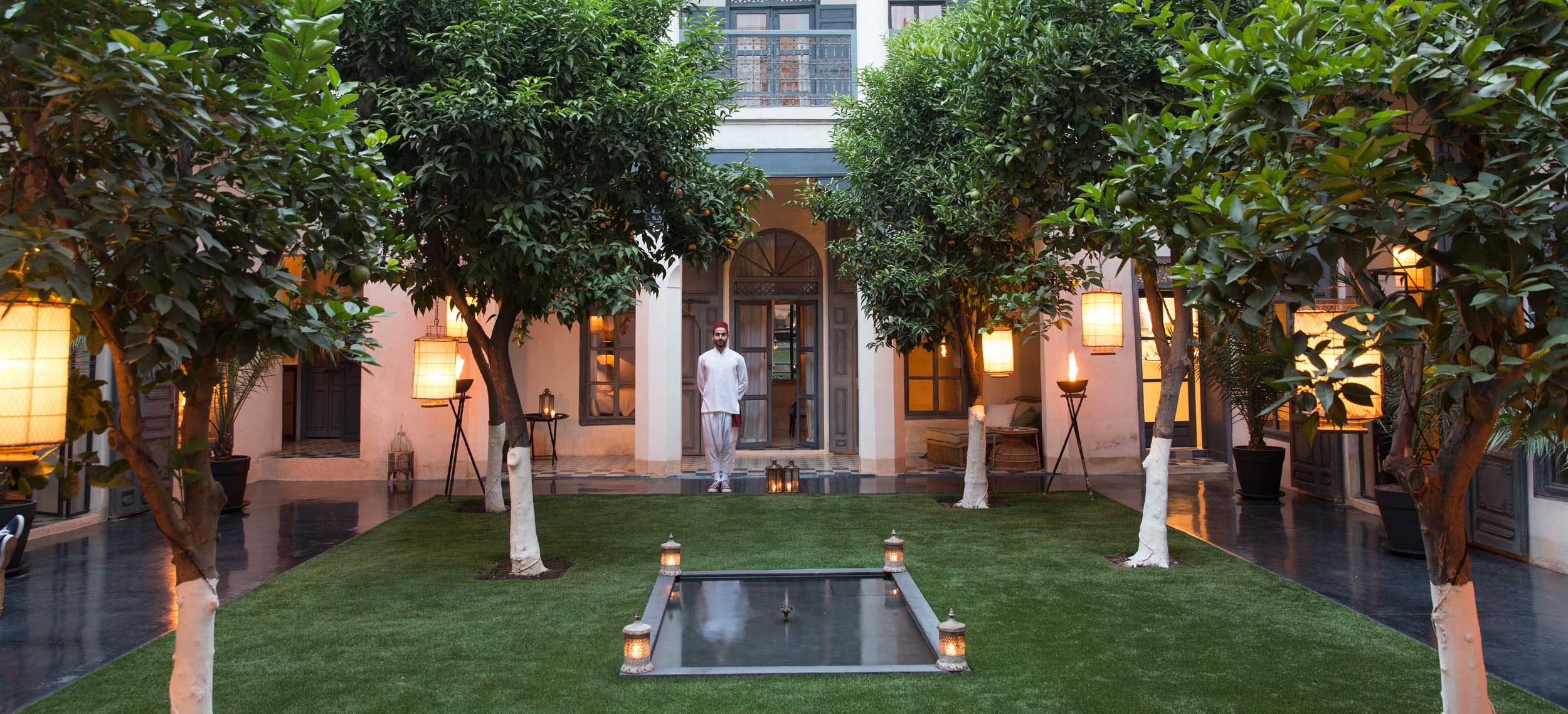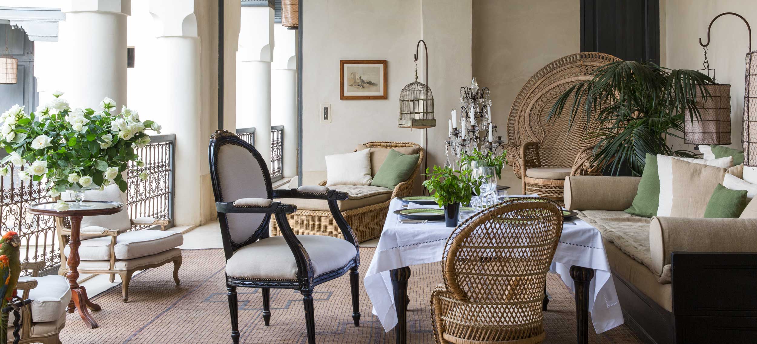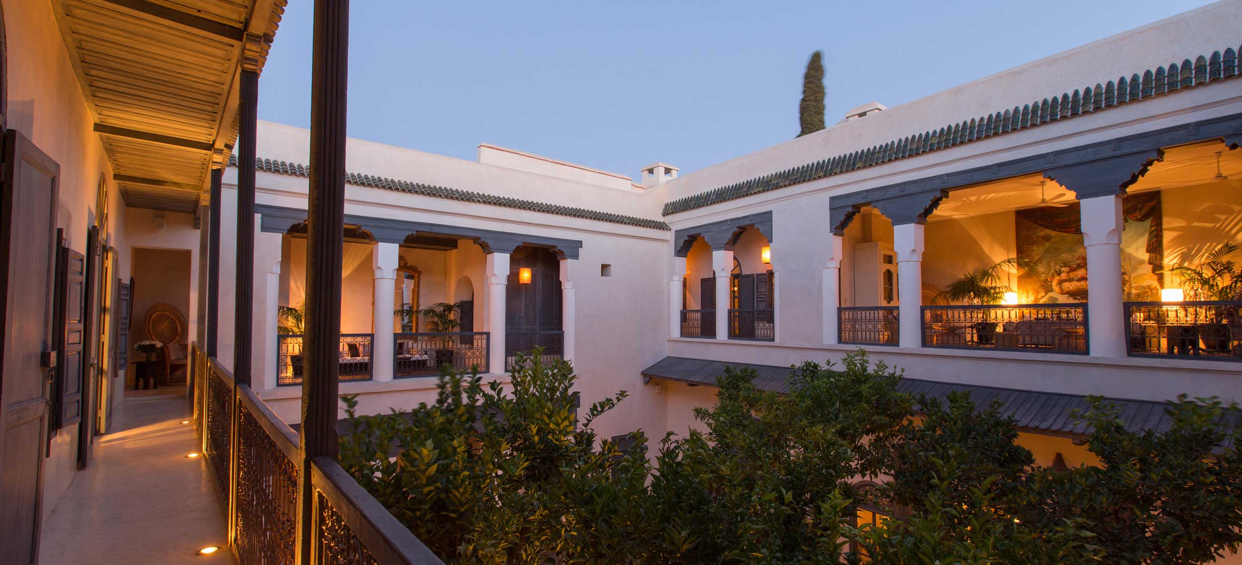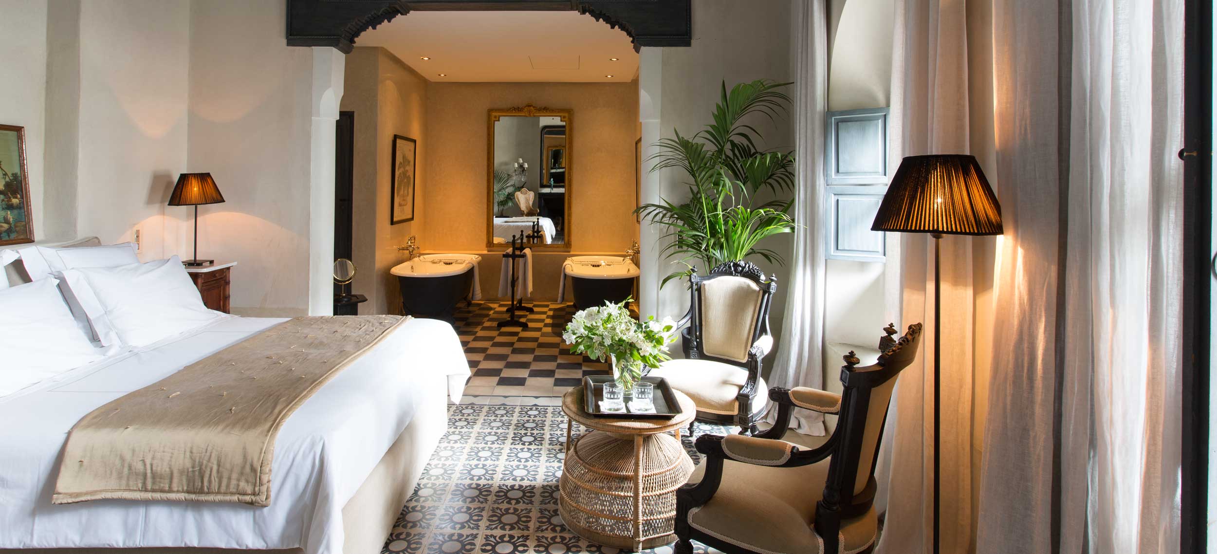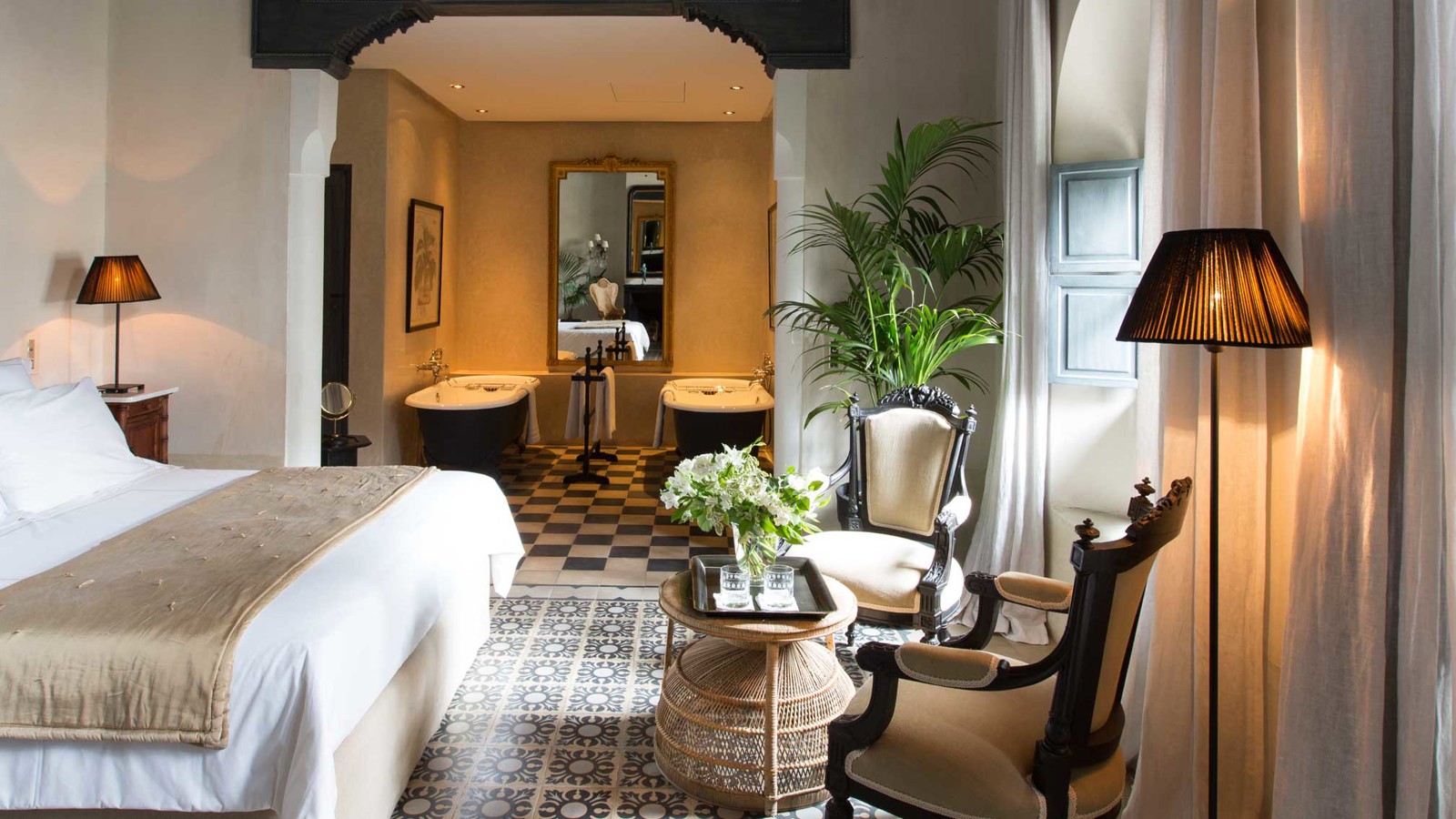 Riad de Tarabel är en riad i kolonial stil med stämning av en svunnen era. Den består av fyra hus som kopplats samman runt innergårdar, öppna lounger, terrasser och en åtta meter lång och uppvärmd pool. Riad de Tarabel ägs av den franske aristokraten Leonard Degoy och Rose Fournier, som har gett managern Laurent Bocca i uppdrag att se till sina gästers bästa, vilket han gör med bravur. Stilen påminner om en målning av Delcroix med en dramatisk användning av belysning och färg, med en romantisk flirt när det gäller möbler som kombinerar kolonialstil med fransk empire. Stilen i rum och sviter är densamma med golv i träkolsgrått, svartlackerade möbler och gnistrande ljuskronor. Här finns venetianska speglar, badrumsarmaturer i silver och kristallvaser med rosor i crèmetoner. Sängkläderna kommer från Maison de Blanc och rummen har en härlig golvvärme för kyliga marockanska nätter. Här finns ett spa, men ingen restaurang. Dock finns en egen kock som på beställning lagar och serverar en romantisk måltid. Här erbjuds du flygplatstransfer, lokal mobil och strykning av kläder. Läget är utmärkt, endast några steg från det kungliga palatset Dar el Bacha och fem minuters promenad från torget Djemaa el Fna.