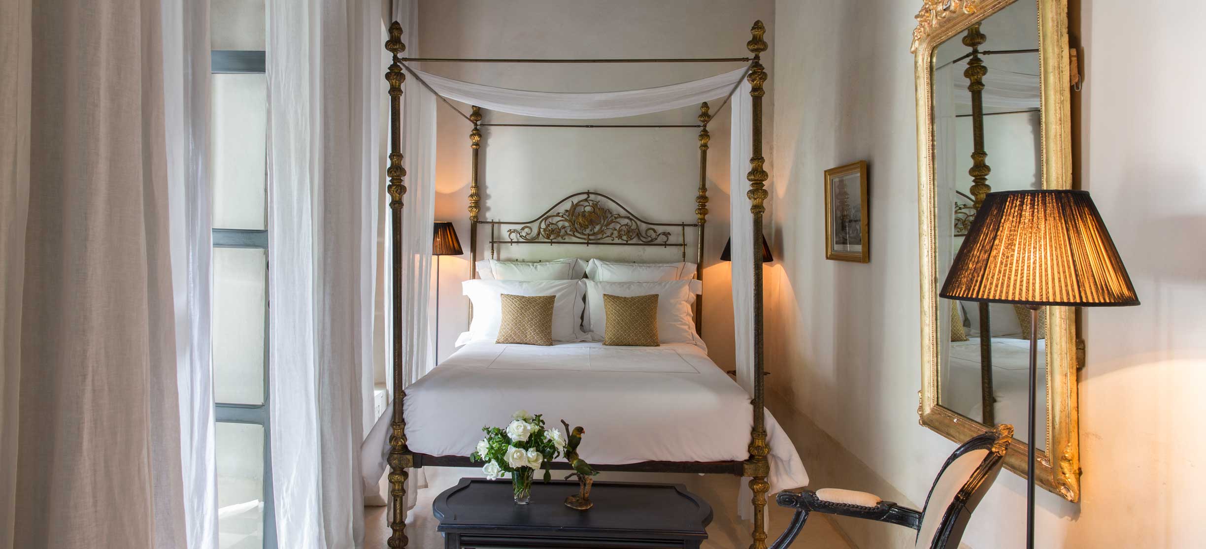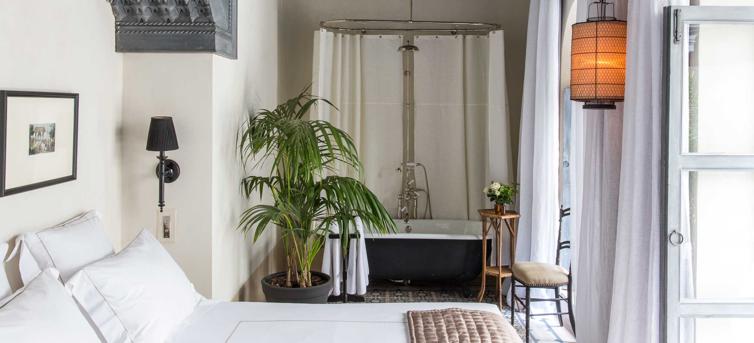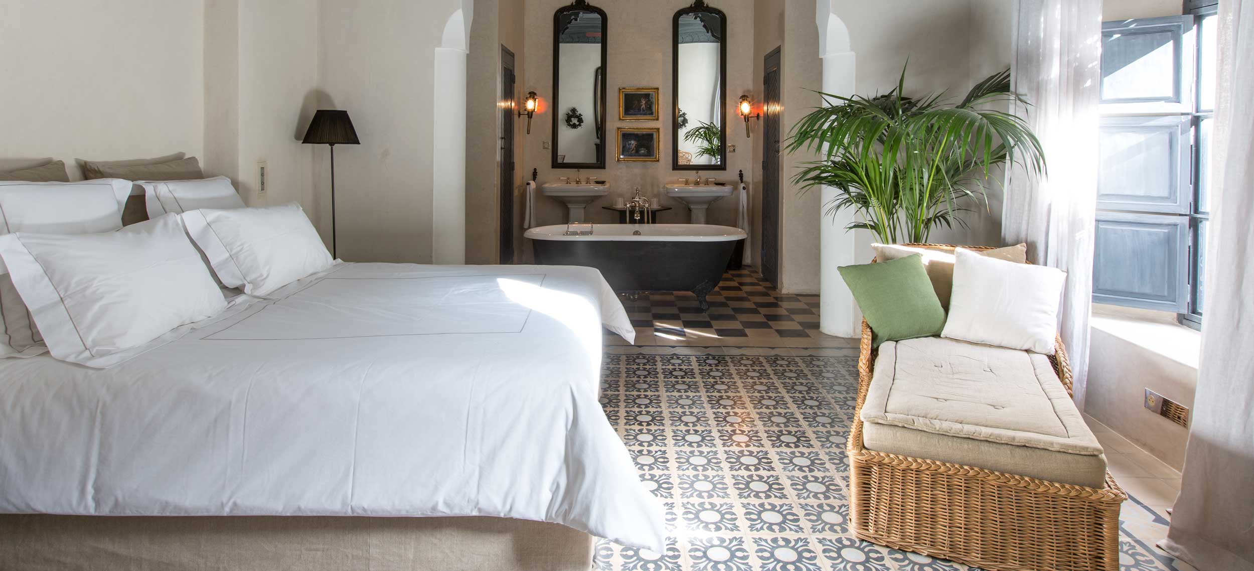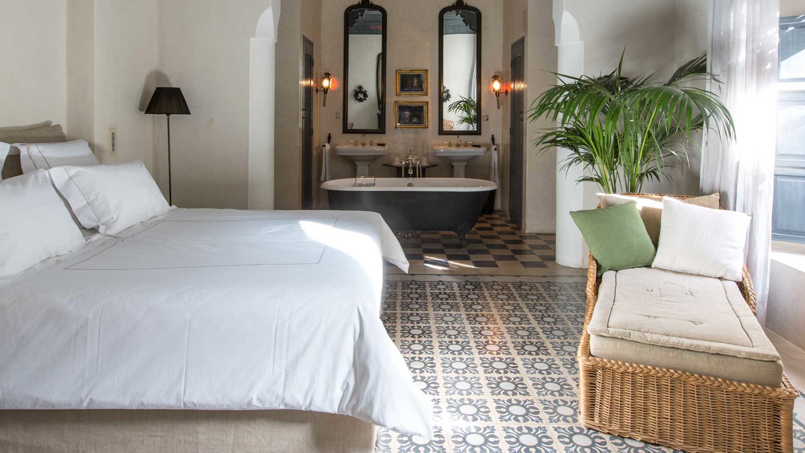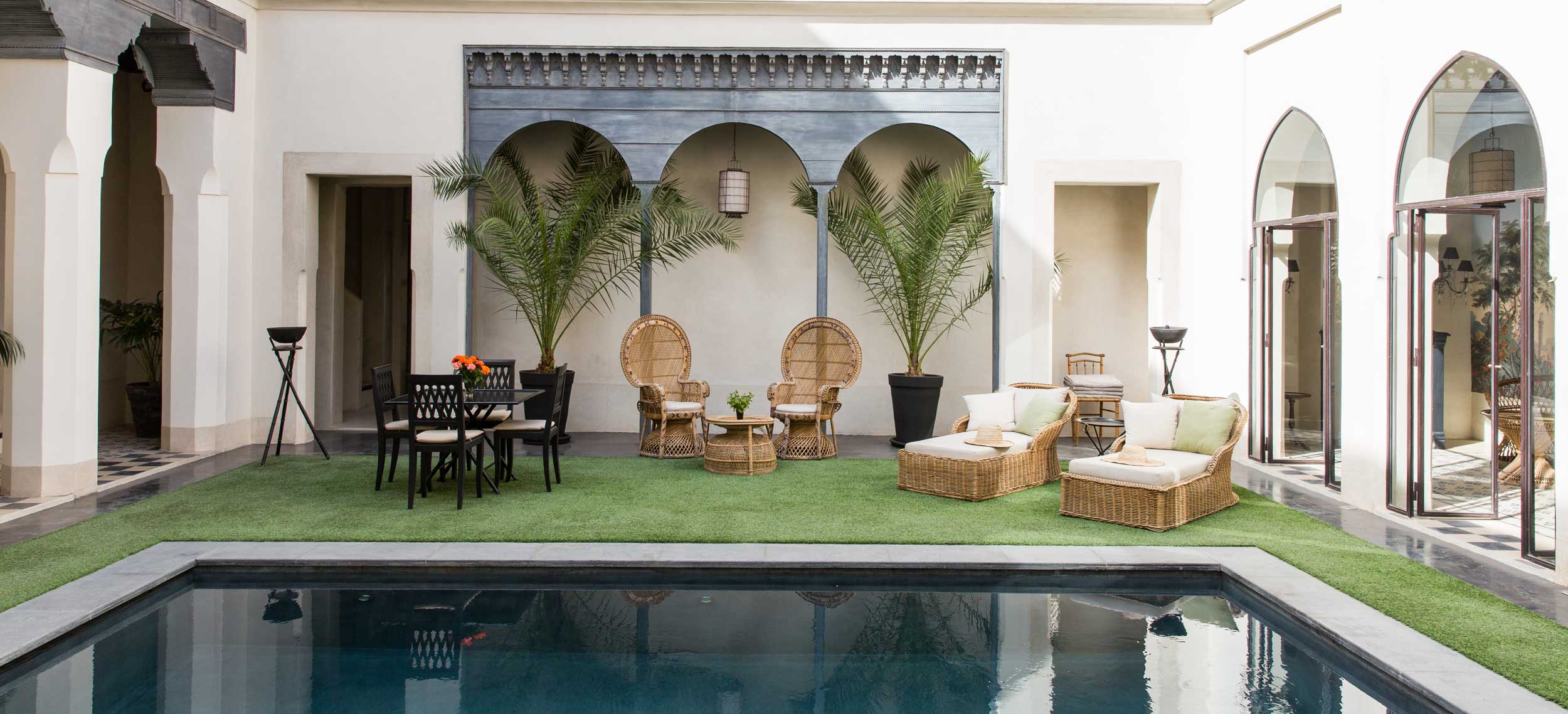 Riad de Tarabel är en riad i kolonial stil med stämning av en svunnen era. Den består av fyra hus som kopplats samman runt innergårdar, öppna lounger, terrasser och en åtta meter lång och uppvärmd pool. Riad de Tarabel ägs av den franske aristokraten Leonard Degoy och Rose Fournier, som har gett managern Laurent Bocca i uppdrag att se till sina gästers bästa, vilket han gör med bravur. Stilen påminner om en målning av Delcroix med en dramatisk användning av belysning och färg, med en romantisk flirt när det gäller möbler som kombinerar kolonialstil med fransk empire. Stilen i rum och sviter är densamma med golv i träkolsgrått, svartlackerade möbler och gnistrande ljuskronor. Här finns venetianska speglar, badrumsarmaturer i silver och kristallvaser med rosor i crèmetoner. Sängkläderna kommer från Maison de Blanc och rummen har en härlig golvvärme för kyliga marockanska nätter. Här finns ett spa, men ingen restaurang. Dock finns en egen kock som på beställning lagar och serverar en romantisk måltid. Här erbjuds du flygplatstransfer, lokal mobil och strykning av kläder. Läget är utmärkt, endast några steg från det kungliga palatset Dar el Bacha och fem minuters promenad från torget Djemaa el Fna.