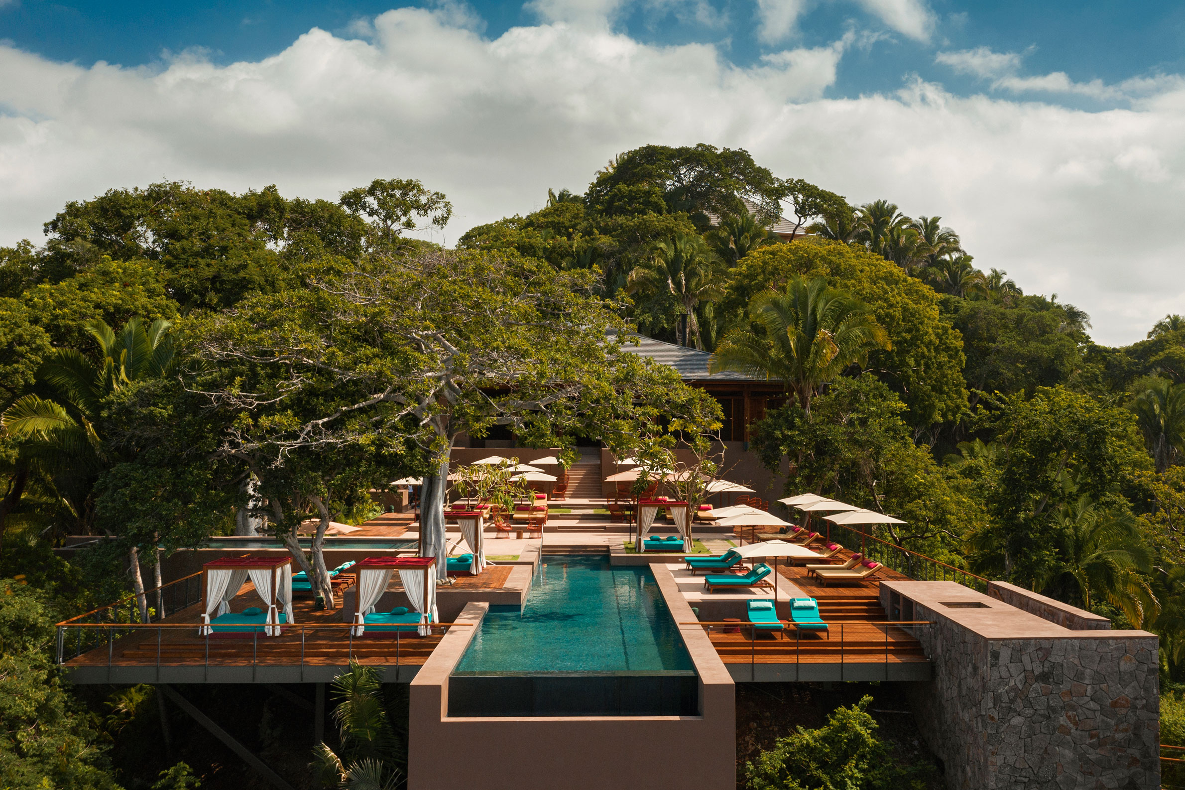 Mandarin Oriental Mandarina är ett modernt arkitektoniskt mästerverk med hållbar design och lika avskilt som enastående läge på toppen av de frodiga kustklipporna i Riviera Nayarits tropiska regnskog. Klipporna kantas av palmer, sandstränder och turkosa laguner. Du befinner dig mitt i orörd natur, samtidigt mindre än en timme från flygplatsen i Puerto Vallarta. Glöm standardrum! Här väljer du istället mellan Ocean Villa eller ett eget exklusivt Tree House. Båda boendealternativen erbjuder maximal avskildhet och lockar med infinitypooler, terrasser, havsutsikt, spatiösa badrum, utomhus-dusch och butlerservice. För större familjer finns villor med upp till fyra sovrum, kontor, två privata pooler, jacuzzi, vinkällare, biograf och terrass med barbecue-grill. När du vill röra på dig finns allt från guidade cykelturer genom regnskogen, vandringar med hotellets botanist, ridlektioner, vattensporter, surfing och fiske. Vill du varva ner erbjuder spaet naturlig läkning och en mängd behandlingar som blandar inhemska mayatraditioner med modern terapi. Barnklubben på Mandarina är ett paradis för de yngsta gästerna med flera trädhus, biograf, ett reservat för fjärilar, klättervägg och amfiteater – alltihopa designat av scendekoratören Brigitte Broch, som vann en Oscar för sitt arbete med filmen Moulin Rouge.