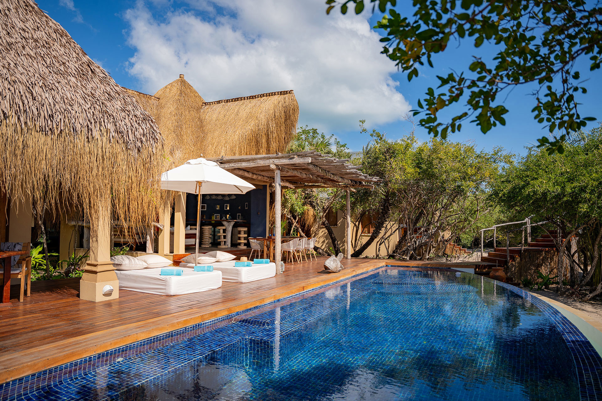 Azura är ett exklusivt eco-boutique hotell mellan de vita sanddynerna och havet på Benguerra Island i Bazarutoarkipelagen. Atmosfären är mycket privat, och Azura består endast av 20 fantastiska strandvillor. Alla är inredda med ljusa textilier, mörka mahognygolv, privat plungepool och både inom- och utomhusdusch. Allt är genomtänkt, från små detaljer och cool design till ett medvetet ekologiskt tänkande. Maten är tillagad av internationellt kända kockar och består av fisk, skaldjur och grönsaker som serveras med vin från Sydafrika eller från ägarens eget vinslott i Loiredalen. Middagen intas på stranden och enda belysningen kommer från månen, lanternor och lyktor. Atmosfären är intim och romantisk. Azura är en dröm för nygifta.