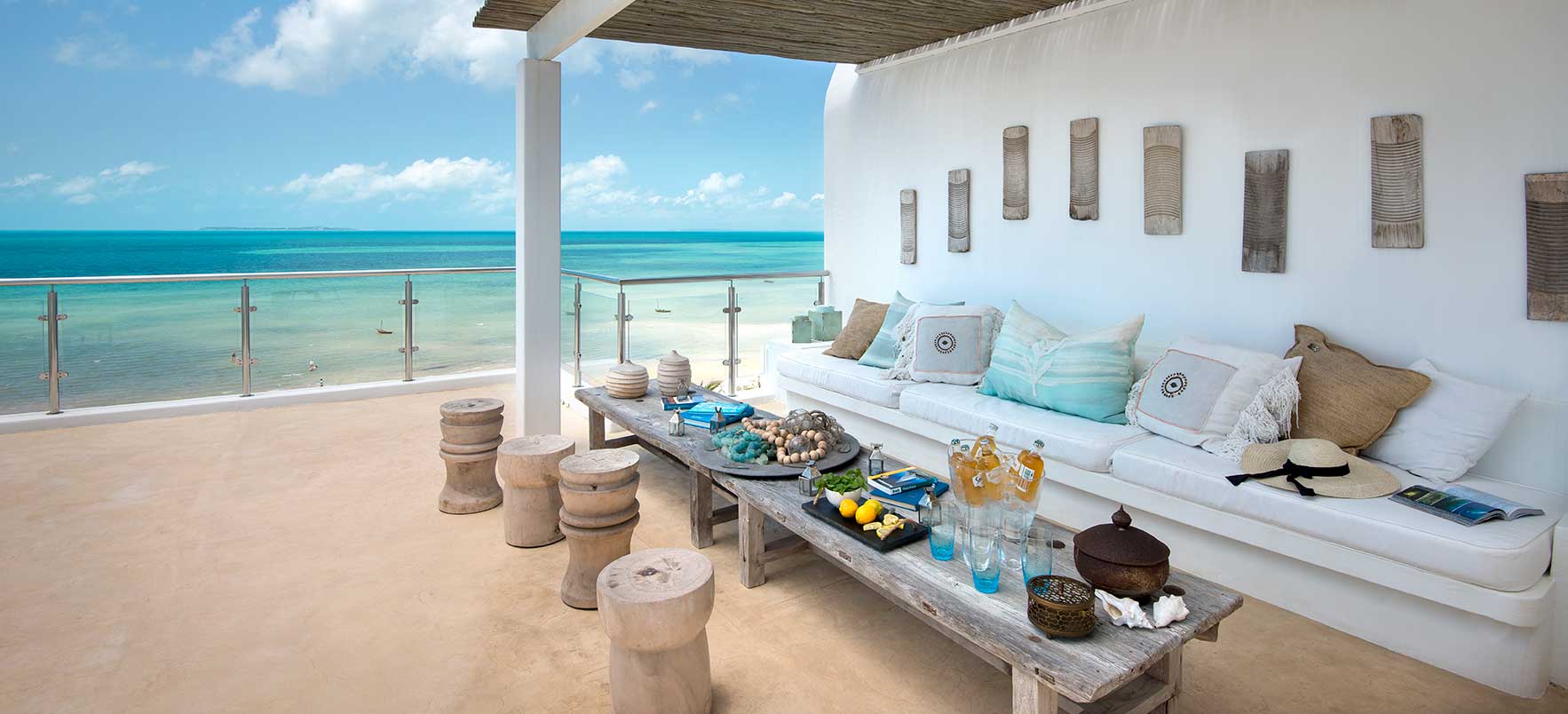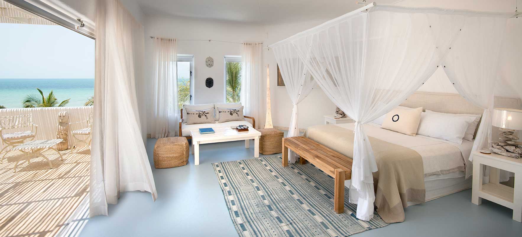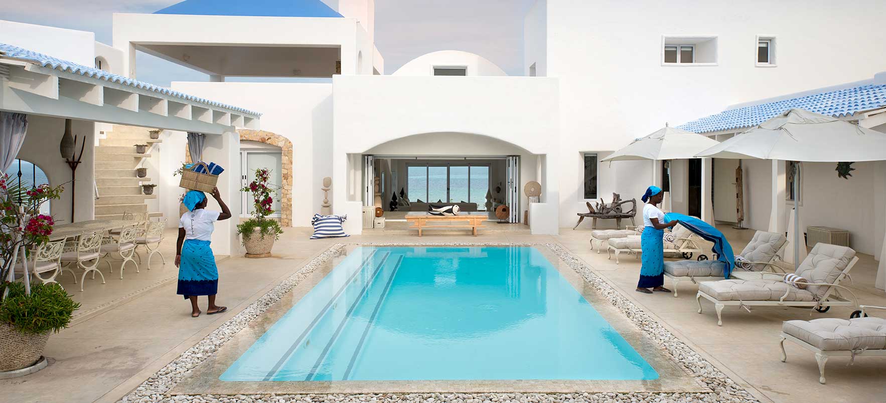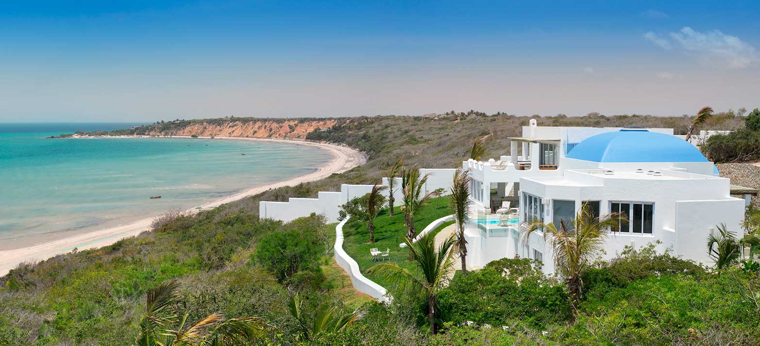 Vitmurade Santorini med sitt Kyklad-blå tak är ett landmärke norr om kuststaden Vilanculos – staden som är porten ut mot arkipelagen Bazarutos stränder av vaniljsocker ett hav blått som topas. Läget för villan som drivs som ett boutiquehotell är det allra bästa. Högt och privat samt frontar mot en egen sandstrand, skyddad i en stor marin nationalpark. Santoroni består av en stor villa med fem sviter och ett fristående privat gömställe för smekmånadsfirare, The Chapel, och ytterligare en 3-sovrumsvilla. Alla sviter vetter mot havet och har stora privata balkonger. Här finns en stor pool, avskilda terrasser, bar och en intim matsal. Den vindskyddade innergården är en oas. Från Santorini går en trappa ned till stranden. Köket bjuder på dagliga menyer tillredda av färska råvaror och köket är öppet 24 timmar om hungern skulle smyga sig på i den afrikanska natten. Spabehandlingar kan ordnas på begäran. Som boende på Santorini har du gratis transfer till Vilanculos och en guidad tur på stadens matmarknader. Dessutom aktiviteter som kajakpaddling, paddleboards och sandboard. Hotellet har dessutom en privat båt som kan bokas för djuphavsfiske.