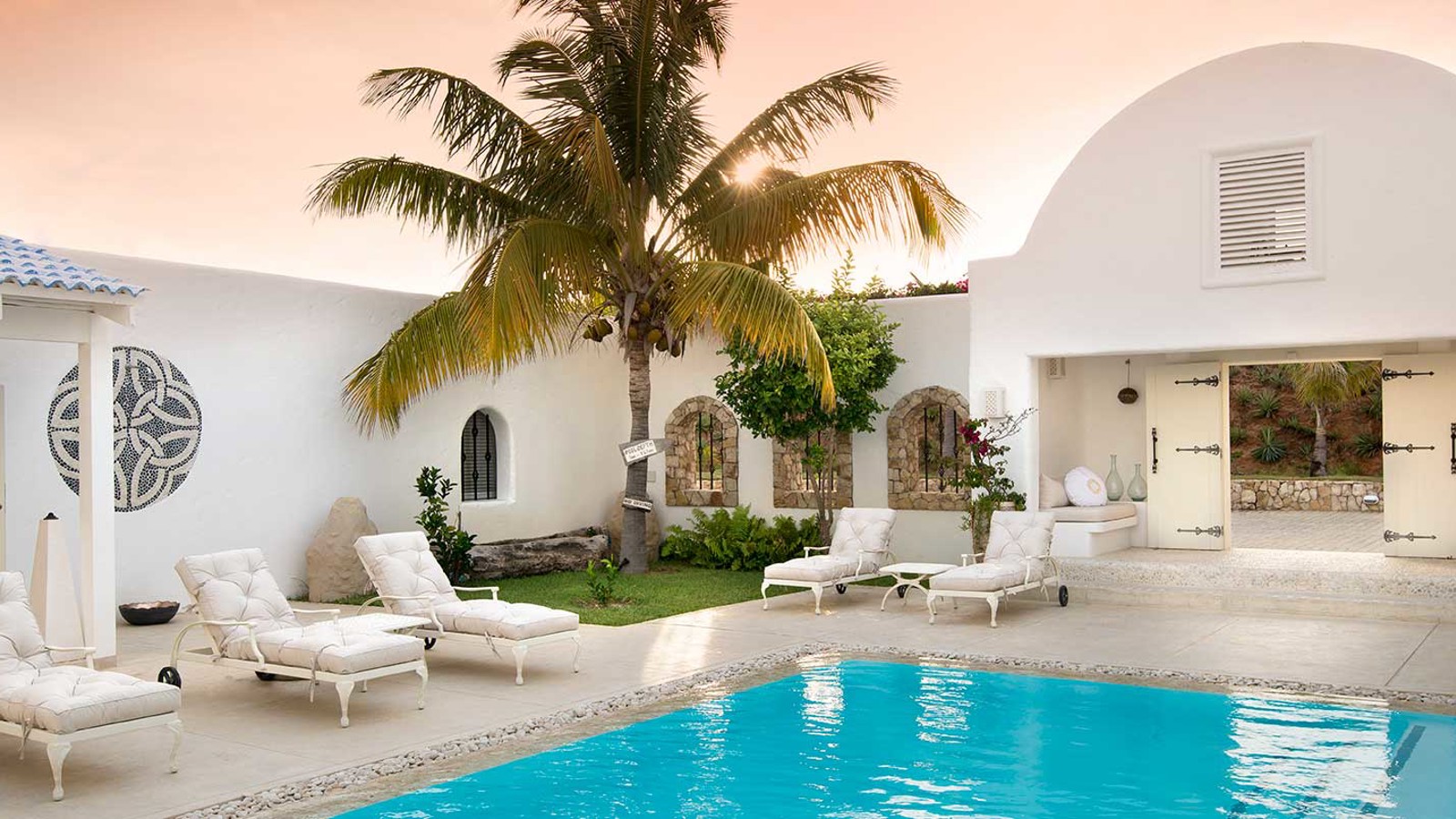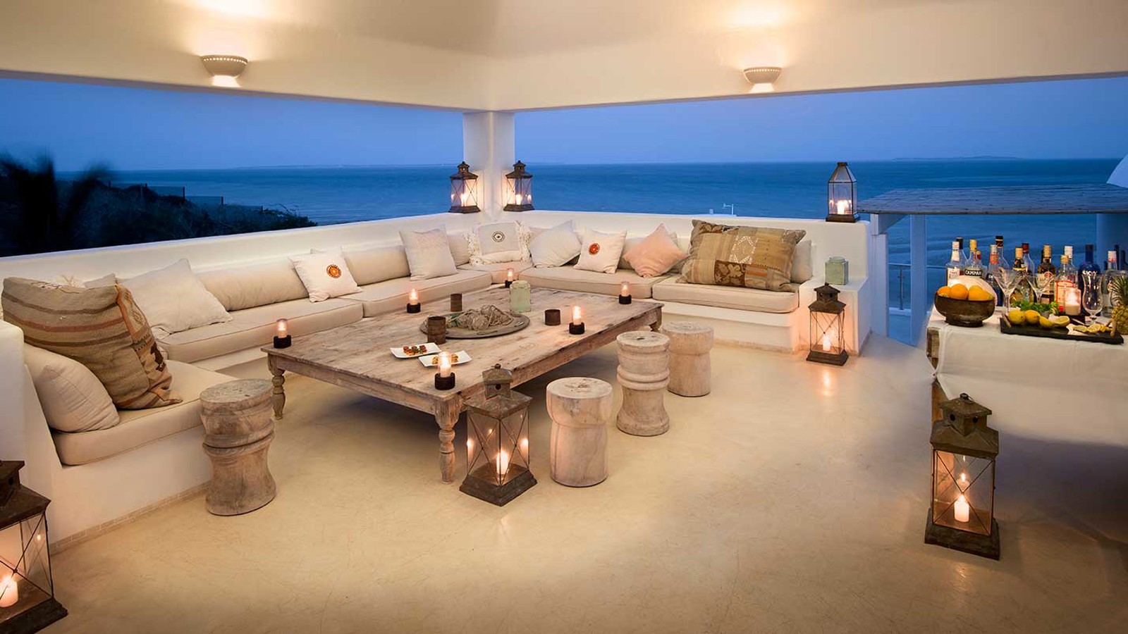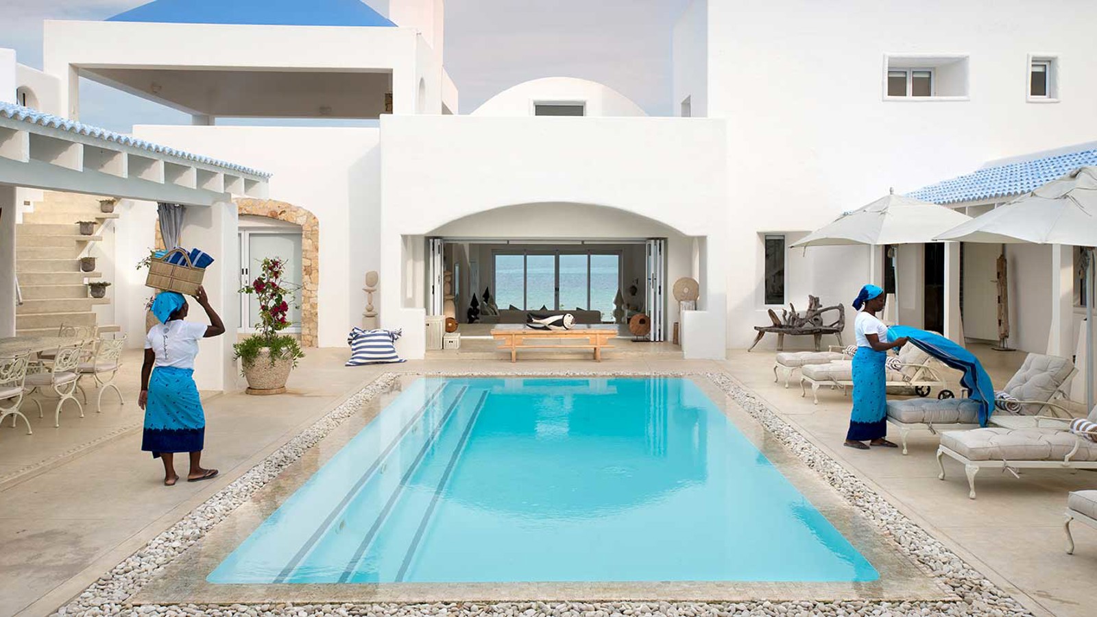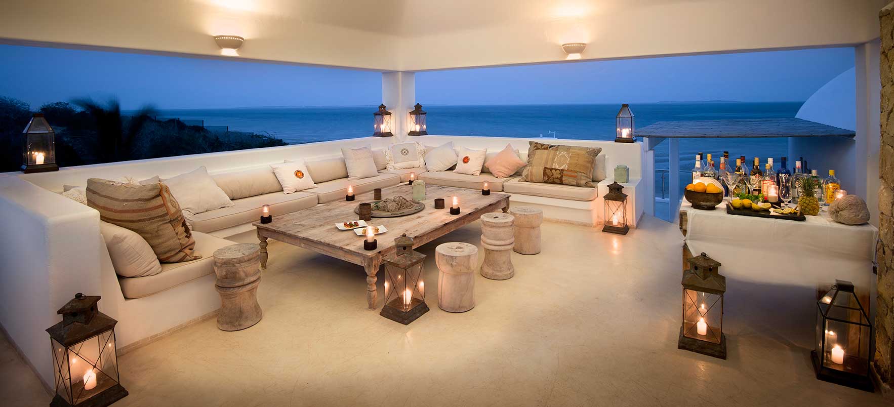 Vitmurade Santorini med sitt Kyklad-blå tak är ett landmärke norr om kuststaden Vilanculos – staden som är porten ut mot arkipelagen Bazarutos stränder av vaniljsocker ett hav blått som topas. Läget för villan som drivs som ett boutiquehotell är det allra bästa. Högt och privat samt frontar mot en egen sandstrand, skyddad i en stor marin nationalpark. Santoroni består av en stor villa med fem sviter och ett fristående privat gömställe för smekmånadsfirare, The Chapel, och ytterligare en 3-sovrumsvilla. Alla sviter vetter mot havet och har stora privata balkonger. Här finns en stor pool, avskilda terrasser, bar och en intim matsal. Den vindskyddade innergården är en oas. Från Santorini går en trappa ned till stranden. Köket bjuder på dagliga menyer tillredda av färska råvaror och köket är öppet 24 timmar om hungern skulle smyga sig på i den afrikanska natten. Spabehandlingar kan ordnas på begäran. Som boende på Santorini har du gratis transfer till Vilanculos och en guidad tur på stadens matmarknader. Dessutom aktiviteter som kajakpaddling, paddleboards och sandboard. Hotellet har dessutom en privat båt som kan bokas för djuphavsfiske.