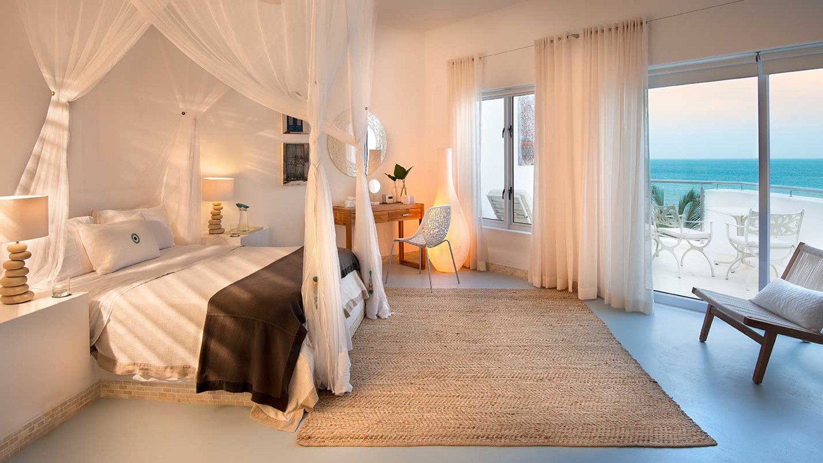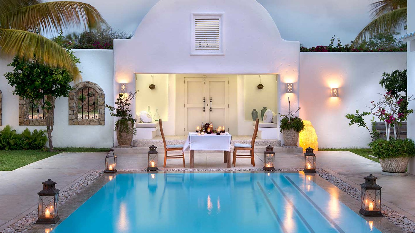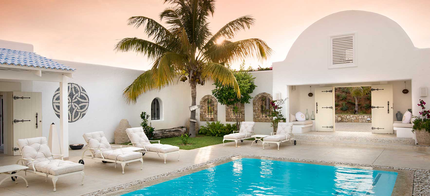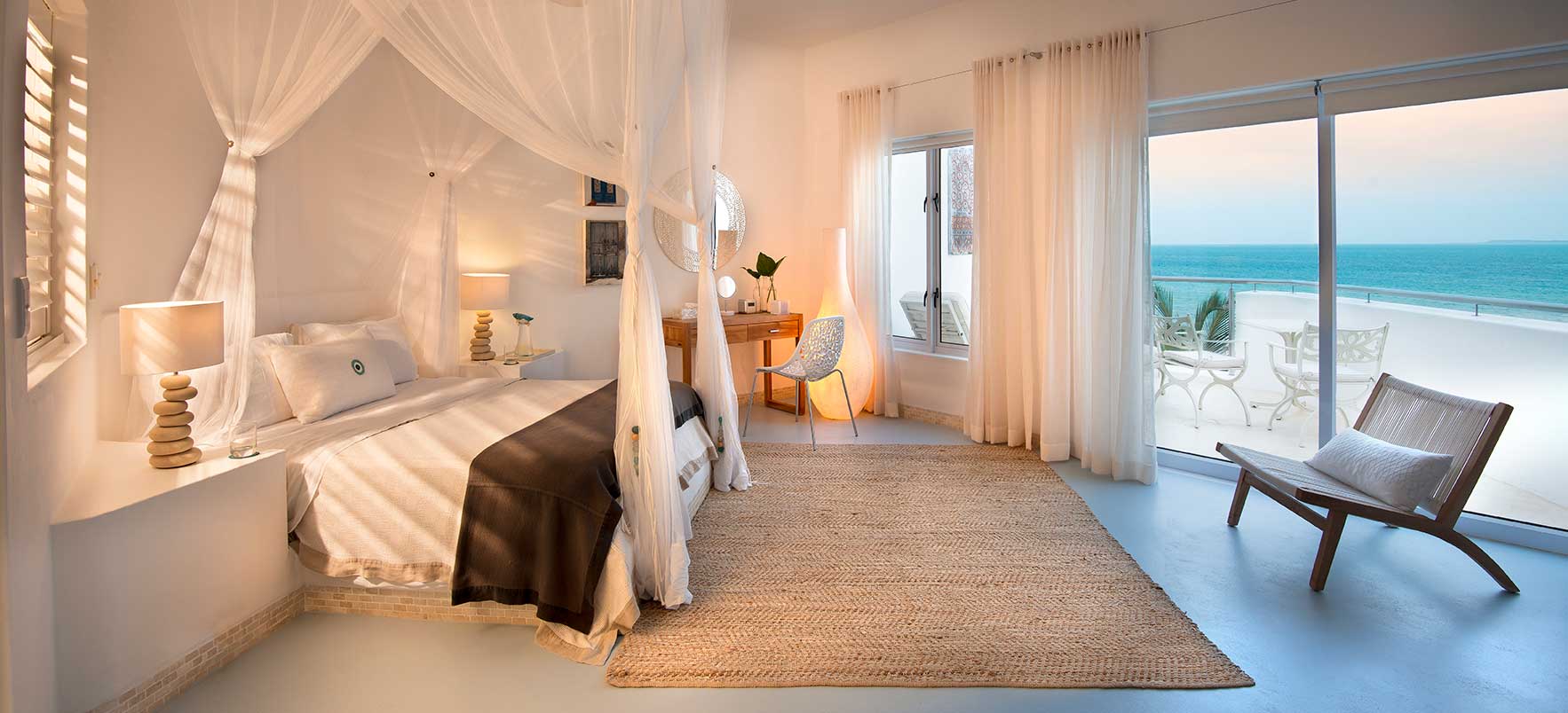 Vitmurade Santorini med sitt Kyklad-blå tak är ett landmärke norr om kuststaden Vilanculos – staden som är porten ut mot arkipelagen Bazarutos stränder av vaniljsocker ett hav blått som topas. Läget för villan som drivs som ett boutiquehotell är det allra bästa. Högt och privat samt frontar mot en egen sandstrand, skyddad i en stor marin nationalpark. Santoroni består av en stor villa med fem sviter och ett fristående privat gömställe för smekmånadsfirare, The Chapel, och ytterligare en 3-sovrumsvilla. Alla sviter vetter mot havet och har stora privata balkonger. Här finns en stor pool, avskilda terrasser, bar och en intim matsal. Den vindskyddade innergården är en oas. Från Santorini går en trappa ned till stranden. Köket bjuder på dagliga menyer tillredda av färska råvaror och köket är öppet 24 timmar om hungern skulle smyga sig på i den afrikanska natten. Spabehandlingar kan ordnas på begäran. Som boende på Santorini har du gratis transfer till Vilanculos och en guidad tur på stadens matmarknader. Dessutom aktiviteter som kajakpaddling, paddleboards och sandboard. Hotellet har dessutom en privat båt som kan bokas för djuphavsfiske.