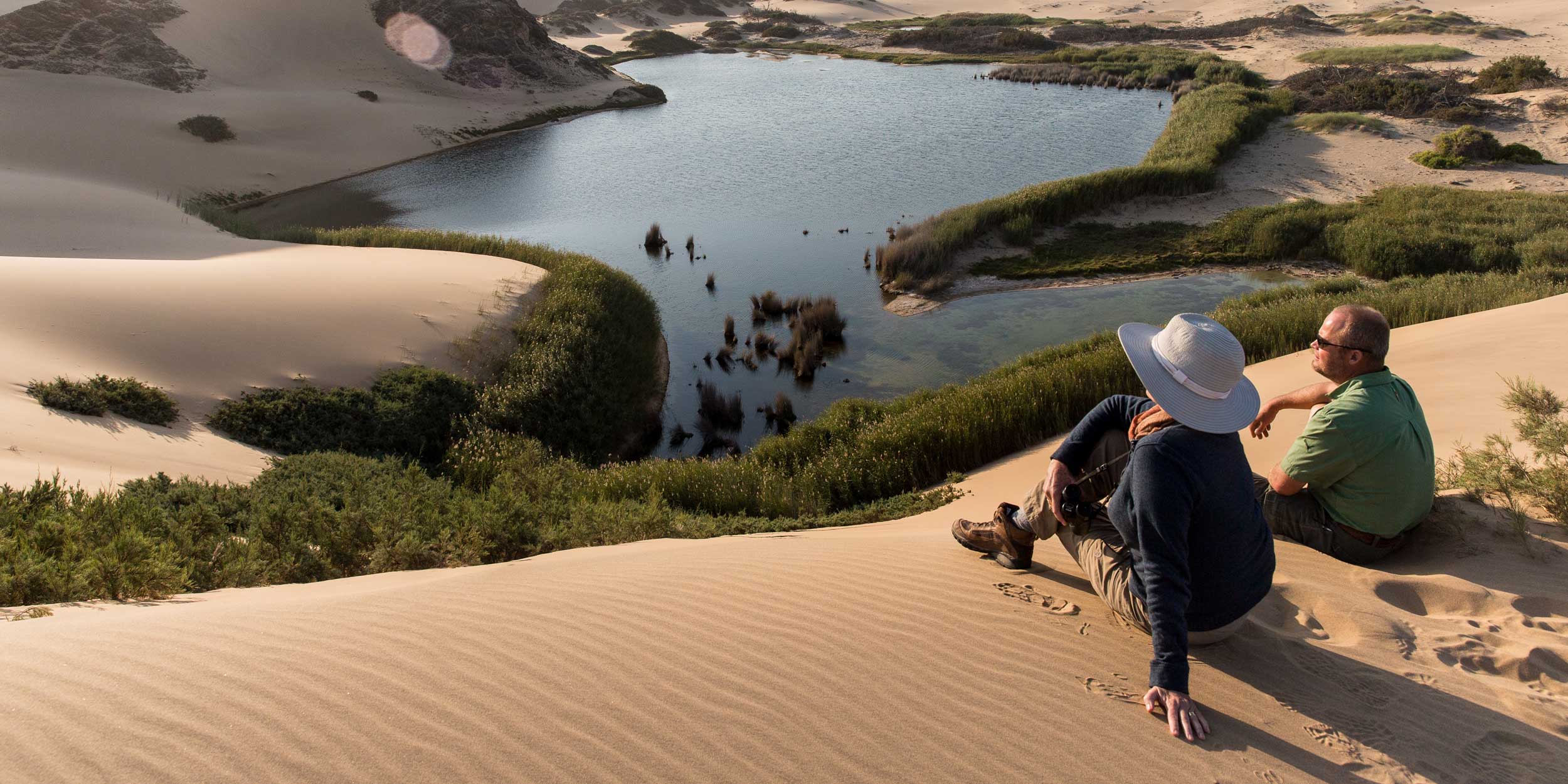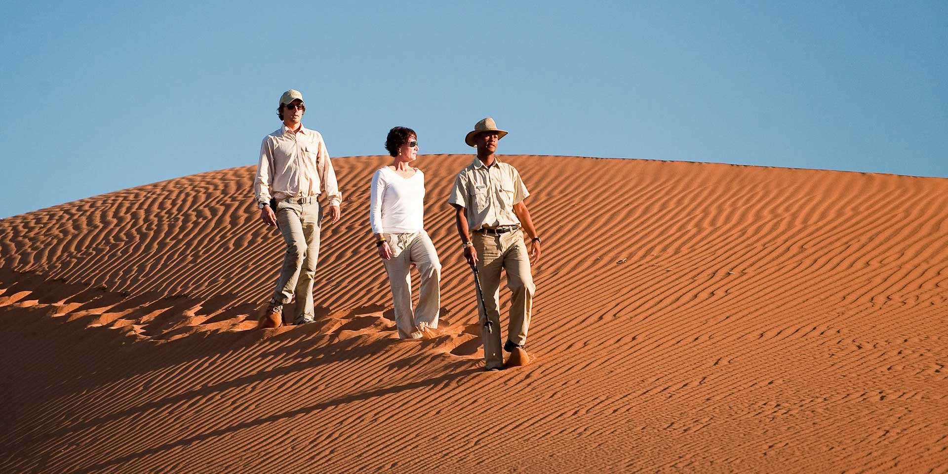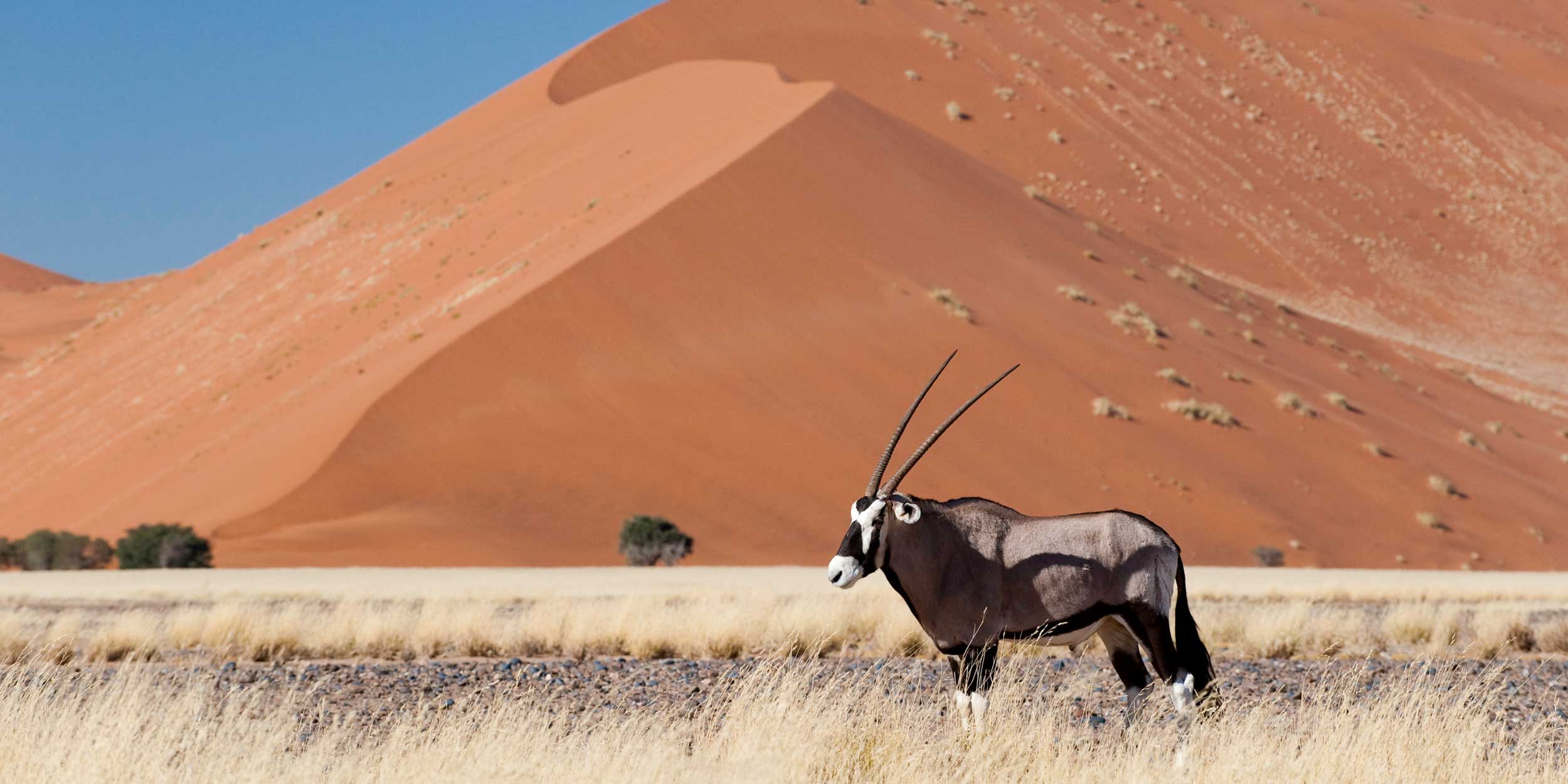 Overkligt. I Namibia möter du vidunderliga vyer, vilda landskap och vidder så ändlösa att gränsen för vad som är verkligt och overkligt suddas ut. Det överjordiskt vackra landet är kontrasternas Afrika. Här breder Kalahariöknen ut sig för att sedan omärkbart förvandlas till Namiböknens röda sand, innan den dramatiskt störtar ned i Atlantens kalla vatten längs Diamantkusten. Längre norr ut tar skelettkusten vid, där noshörningar fortfarande strövar bland sanddyner och de i ökensanden övergivna spökskepp som gett kusten sitt namn. Naturens nyckfulla Namibia är gepardens gränslösa jaktmarker och den sylvasst krönta oryxantilopens eget kungadöme. Tillsammans med grannländerna Sydafrika, Botswana och Zambia erbjuder man också på safari i världsklass. Med naturreservat större än många europeiska länder och med en del av landet som sträcker sig in i Okavangodeltat bjuds en traditionell safari i jakt på Afrikas stora fem. Men på något sätt är det ändå annorlunda. Precis som vidderna, vyerna och det vackra vilda. Namibia är (verkligen) overkligt.
