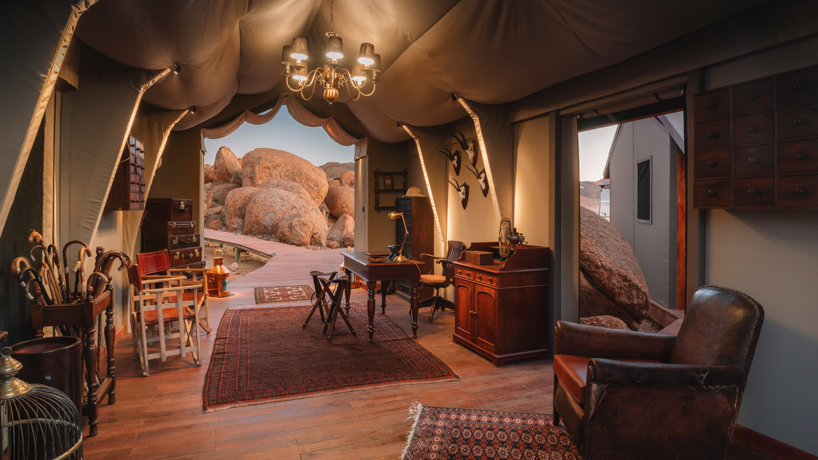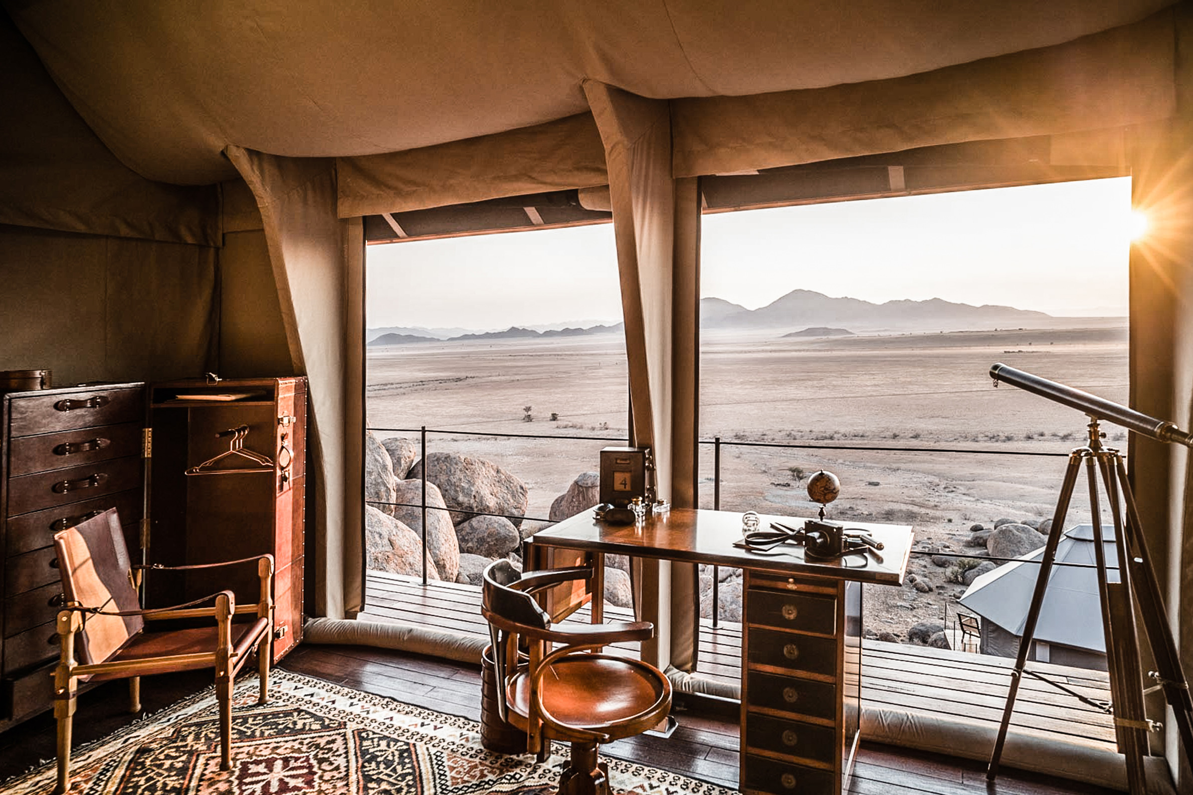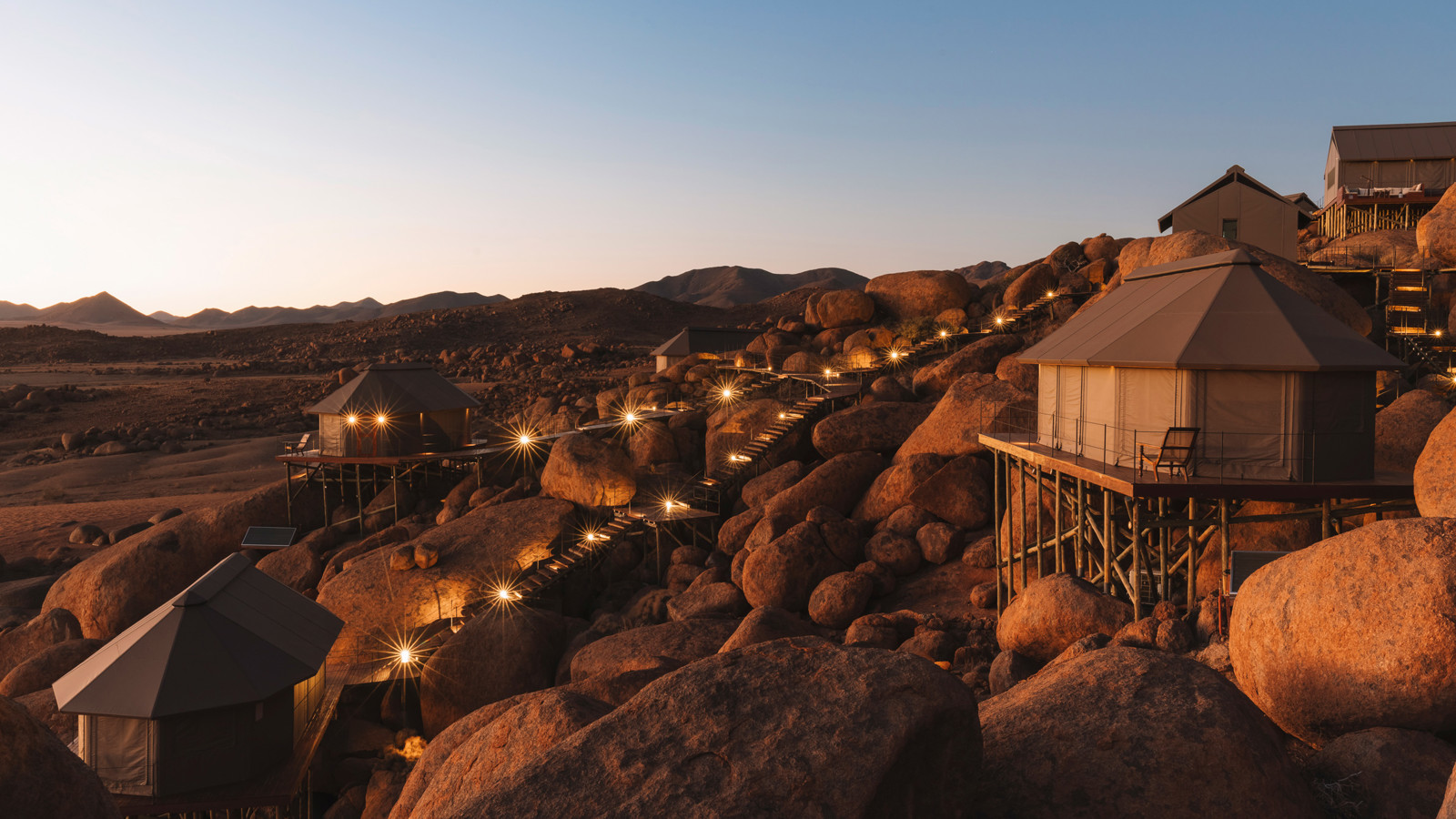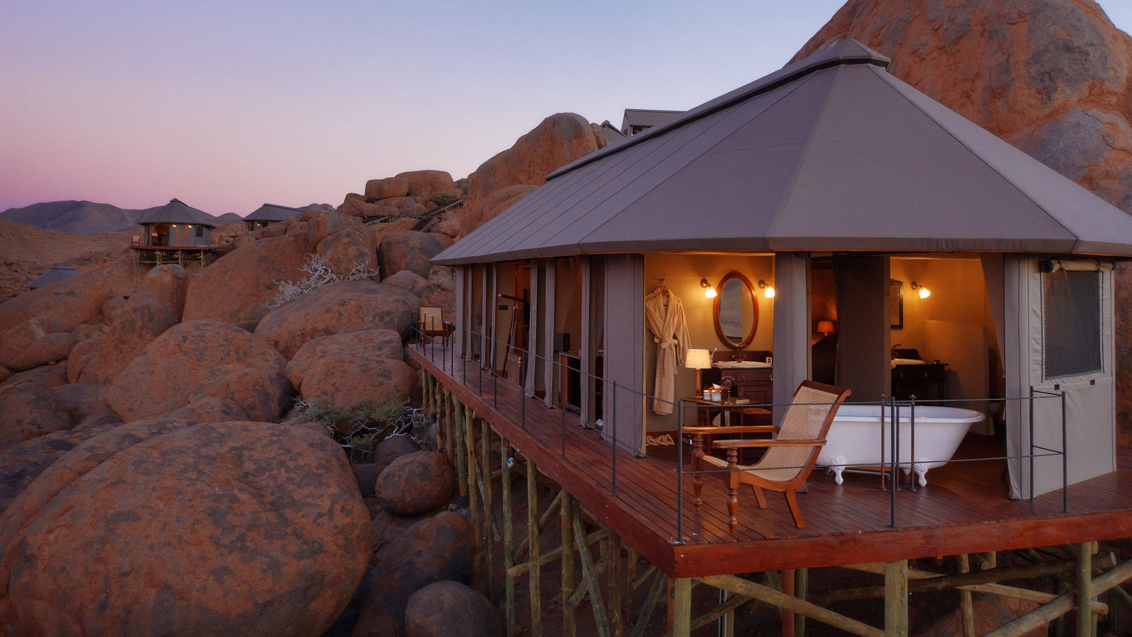 Zannier Hotels exklusiva camp Sonop är belägen i regionen Karas i södra delen av Namiböknen och erbjuder en boendeupplevelse utöver det vanliga. Här finns 10 läckra och rymliga tältsviter som ligger inkilade mellan stora stenbumlingar och erbjuder en magnifik utsikt över öknen. Att bo här är som en resa tillbaka i tiden då inredningen andas 1920-tal med läder, trä och antikviteter. Middagarna serveras i det stora mässtältet och intas med silver och kristall i skenet av stearinljus från stora kandelabrar. Servicen är exceptionellt hög och maten likaså. Efter middagen lockar Sonops cocktail och cigarr lounge. Mellan de dagliga aktiviteterna kan gästerna koppla av i den uppvärmda poolen, njuta av massage eller ett gympass.