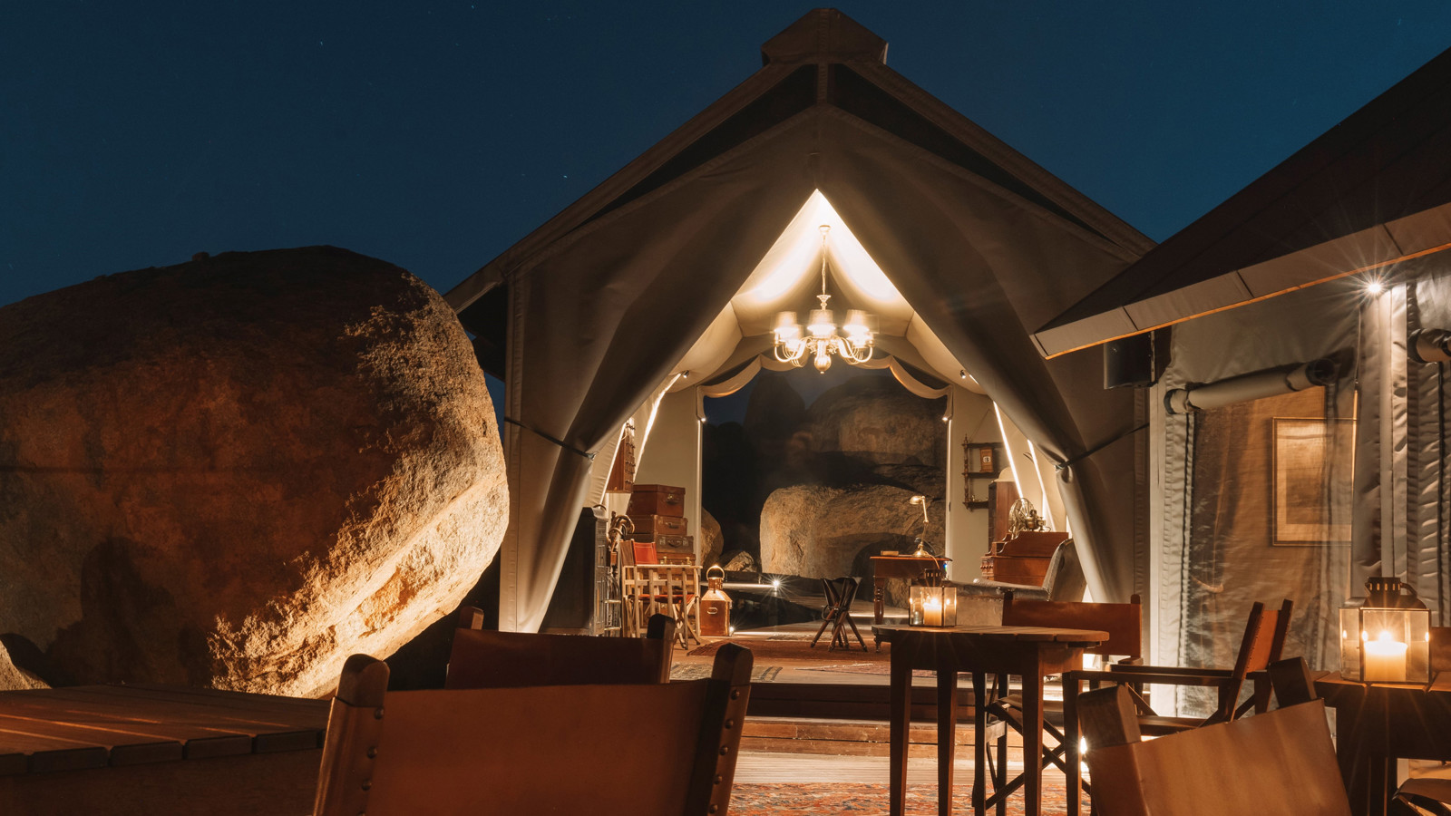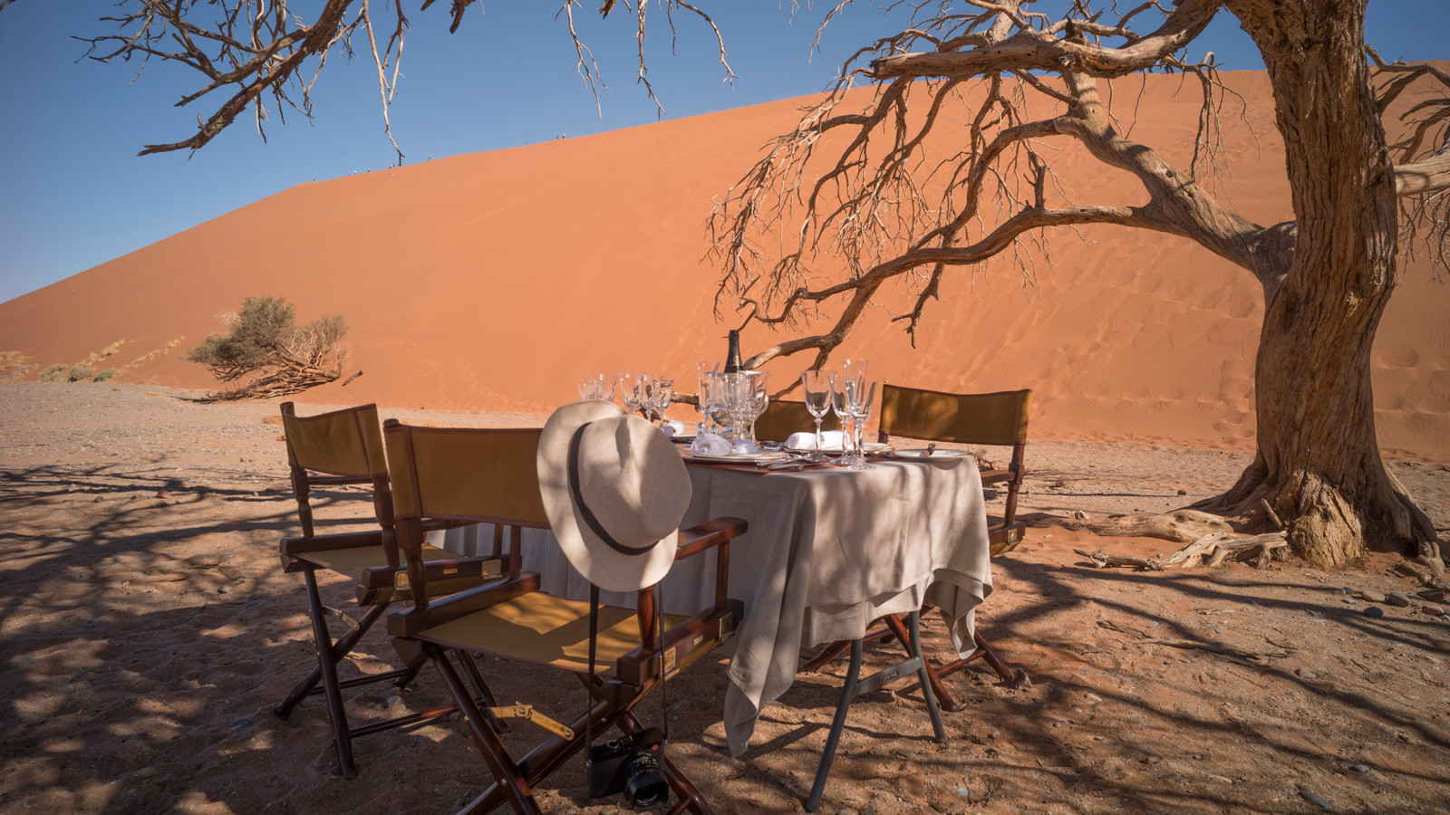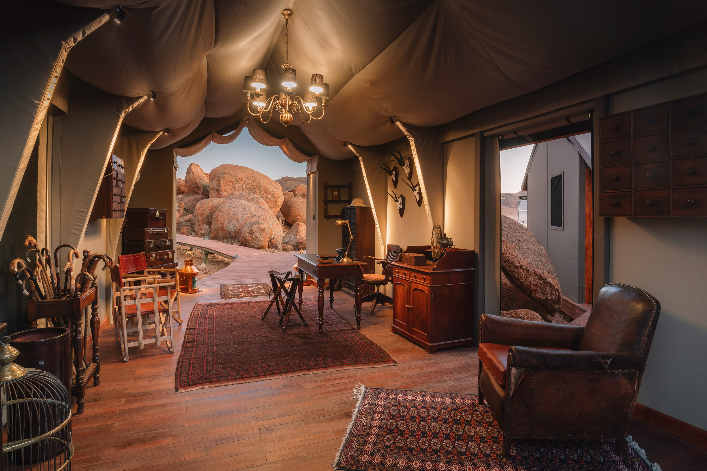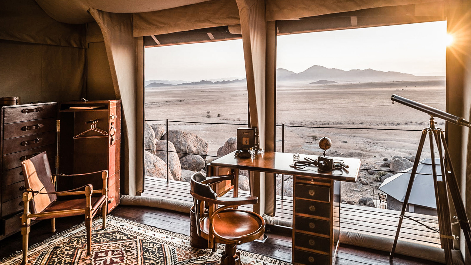 Zannier Hotels exklusiva camp Sonop är belägen i regionen Karas i södra delen av Namiböknen och erbjuder en boendeupplevelse utöver det vanliga. Här finns 10 läckra och rymliga tältsviter som ligger inkilade mellan stora stenbumlingar och erbjuder en magnifik utsikt över öknen. Att bo här är som en resa tillbaka i tiden då inredningen andas 1920-tal med läder, trä och antikviteter. Middagarna serveras i det stora mässtältet och intas med silver och kristall i skenet av stearinljus från stora kandelabrar. Servicen är exceptionellt hög och maten likaså. Efter middagen lockar Sonops cocktail och cigarr lounge. Mellan de dagliga aktiviteterna kan gästerna koppla av i den uppvärmda poolen, njuta av massage eller ett gympass.