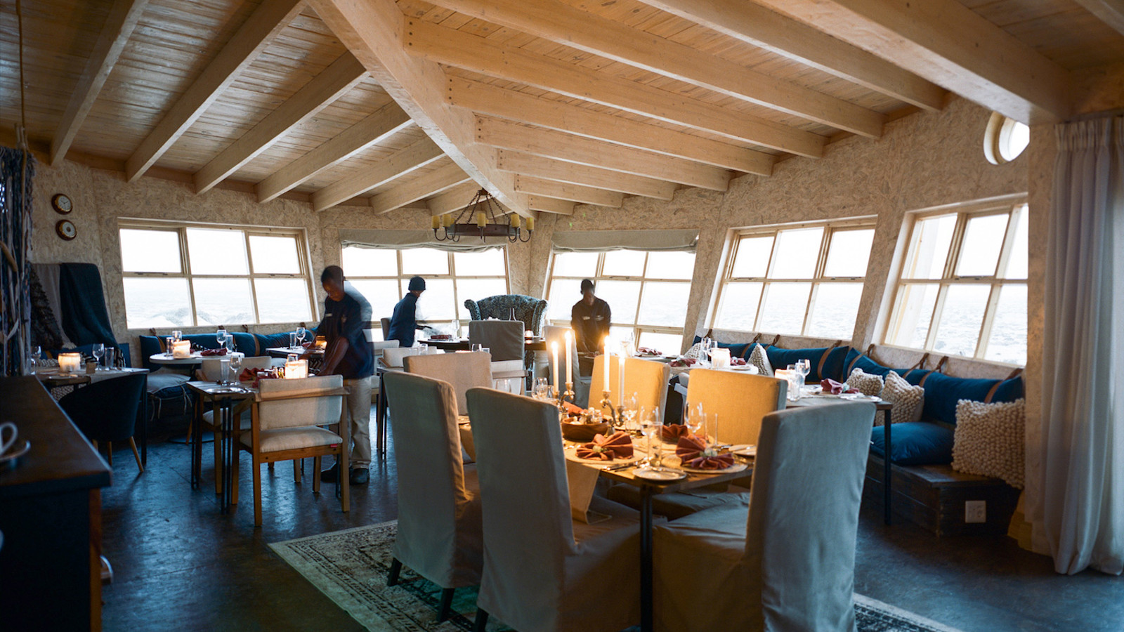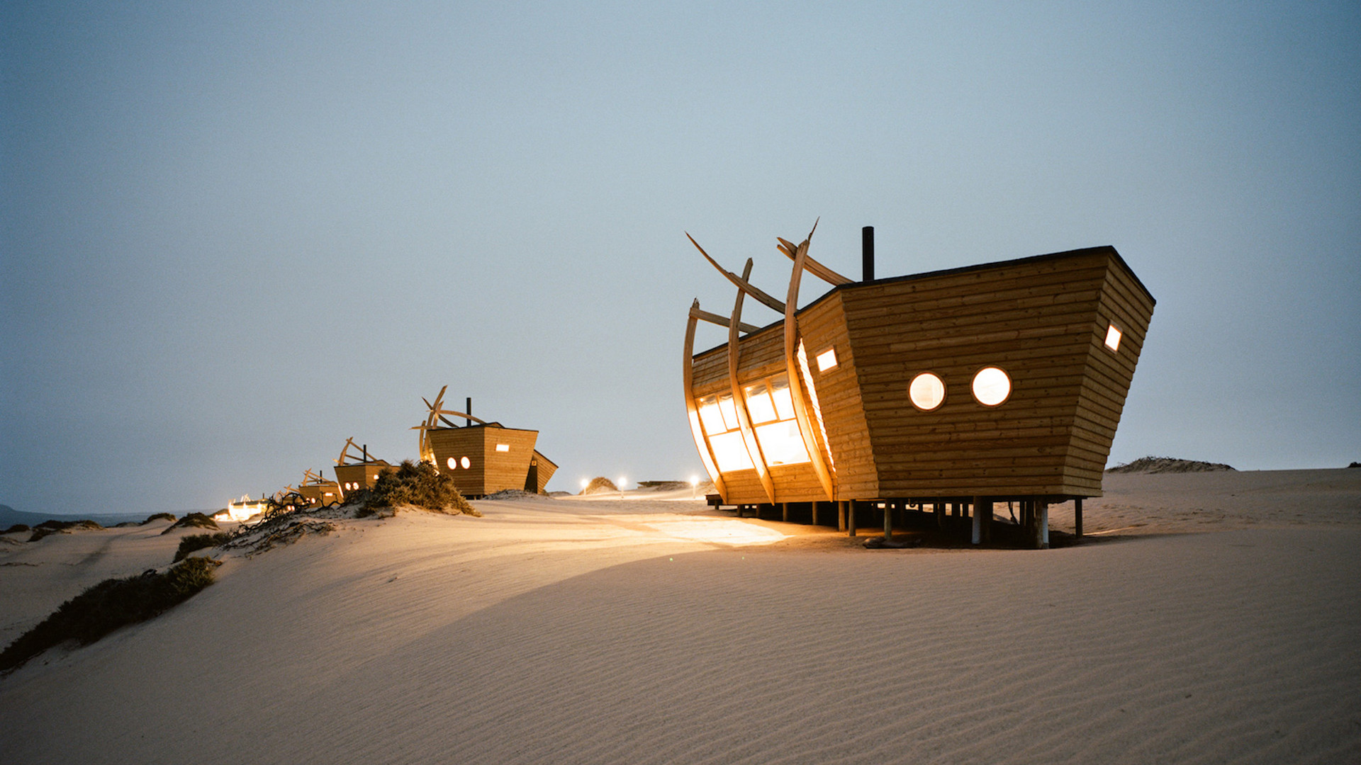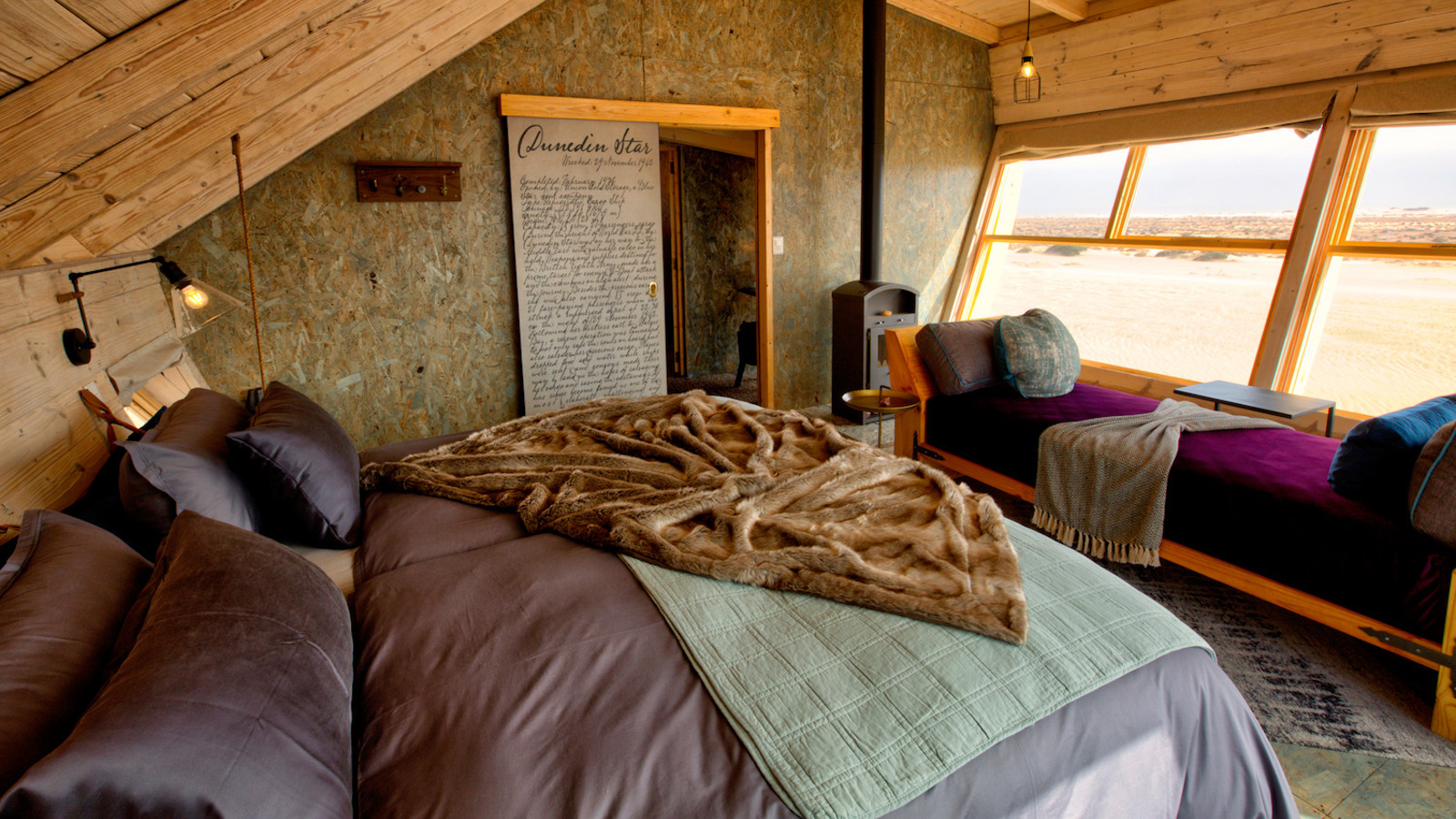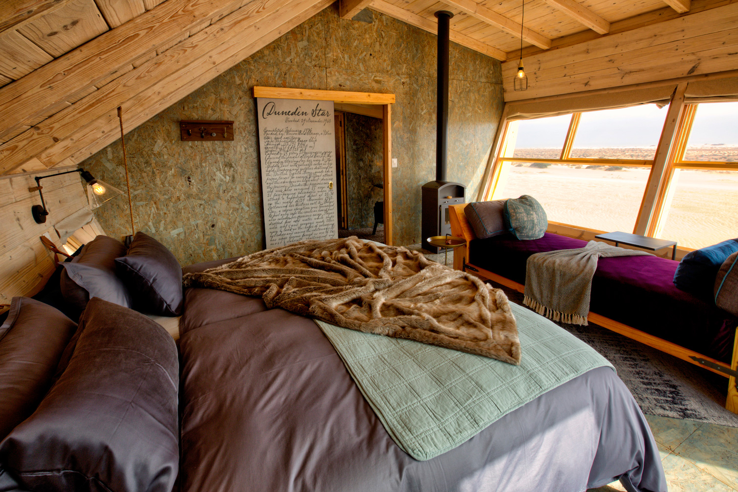 Få boenden är så unika som Shipwreck Lodge. Lodgens 10 stugor påminner om förlista skepp utplacerade bland sanddynerna på Namibias ökända kuststräcka - Skeleton Coast. Denna 500 km långa kuststräcka är känt för just skeppsvrak som strandat efter hårt väder till sjöss. Lodgens stugor drivs med solpaneler och erbjuder en magnifik utsikt över Atlanten. Ljusa träslag blandas med färgstarka detaljer i både inredning och textiler. I huvudbyggnaden finns lodgens restaurang och mysiga lounge med öppen spis. Från trädäcket utomhus kan man njuta av en kopp kaffe och betrakta utsikten. Dagarna fylls med olika aktiviteter. Trots all sand och öken finns en hel del djur i området. Quad bikes och fiske är andra aktiviteter som erbjuds till alla gäster.