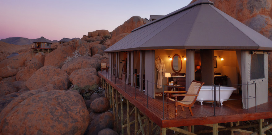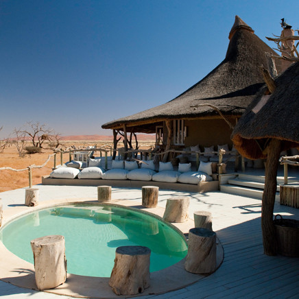 Lyxlodgen Omaanda, som ligger ca 30 minuter utanför Windhoek, är det perfekta stället att koppla av på efter en intensiv rundresa i Namibia. Lodgens 12 lyxsviter är byggda i samma stil och tradition som Ovambofolkets hyddor. Och inget har lämnats åt slumpen. Inredningen går i ljusa textilier och trä. I badrummet finns både dusch och badkar. En öppen spis värmer gott i den kalla Kalaharinatten. Under dygnets hetare timmar finns luftkonditionering. Lodgens allmänna utrymmen bjuder in till lugna stunder framför brasan med en god bok och ett glas vin. Den uppvärmda utomhuspoolen ligger omgivet av ett stort trädäck med bekväma solstolar. Vyerna är magnifika och bli inte förvånad om du ser en grupp vildhundar leka en bit ifrån!