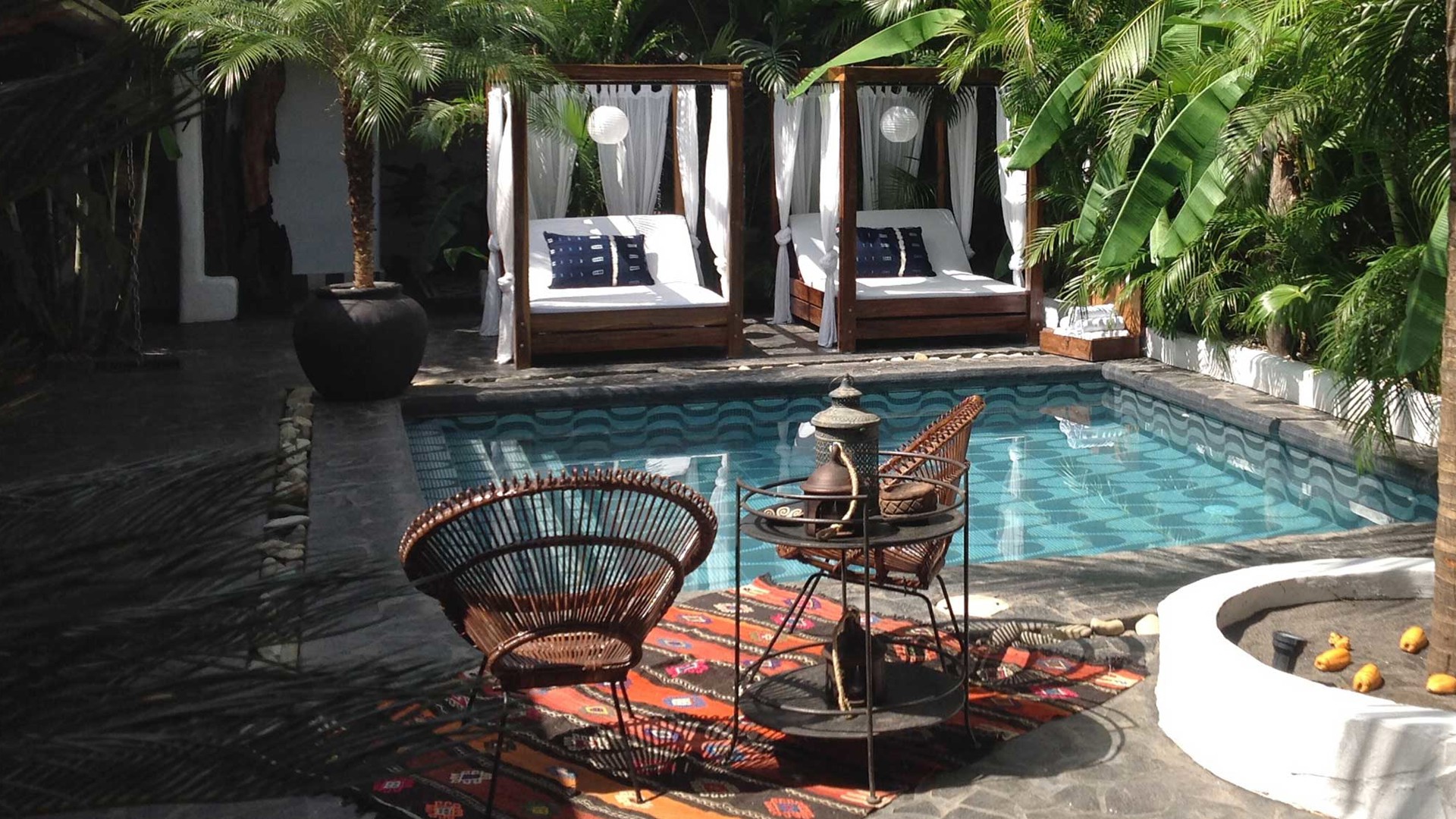 Det bästa boutiquehotellet i Amerikas äldsta stad Granada är litet, lummigt och lyxigt. Tribal Hotel består av fem rum och två sviter runt en härlig innergård med magisk känsla och stämning. Runt en underbart kaklad pool som i mönster påminner om trottoarerna längs Copacabana råder en loungekänsla och den täckta verandan som omger innergården skapar en känsla av gemensamt vardagsrum och matplats för hotellets gäster. Stilen är vackert modern med en touch av både Afrika och Amerika. Rum och sviter har privat terrass bakom skjutdörrar av glas och blir till en naturlig förlängning av rummet. Frukosten serveras alltid på terassen eller sviternas stora balkong med inbyggd soffa, handgjorda stolar och färgglada Kelimmattor från Turkiet. Tribal Hotel har ett perfekt läge i färgglada Granada på lugna Calle Cuiscoma, endast två kvarter från gågatan Calle Calzada med sina restauranger, barer och latinska nattliv. Från Granada är det ungefär 50 minuter till huvudstaden Managua och en och en halv timma till Stilla Havets stränder i San Juan del Sur.