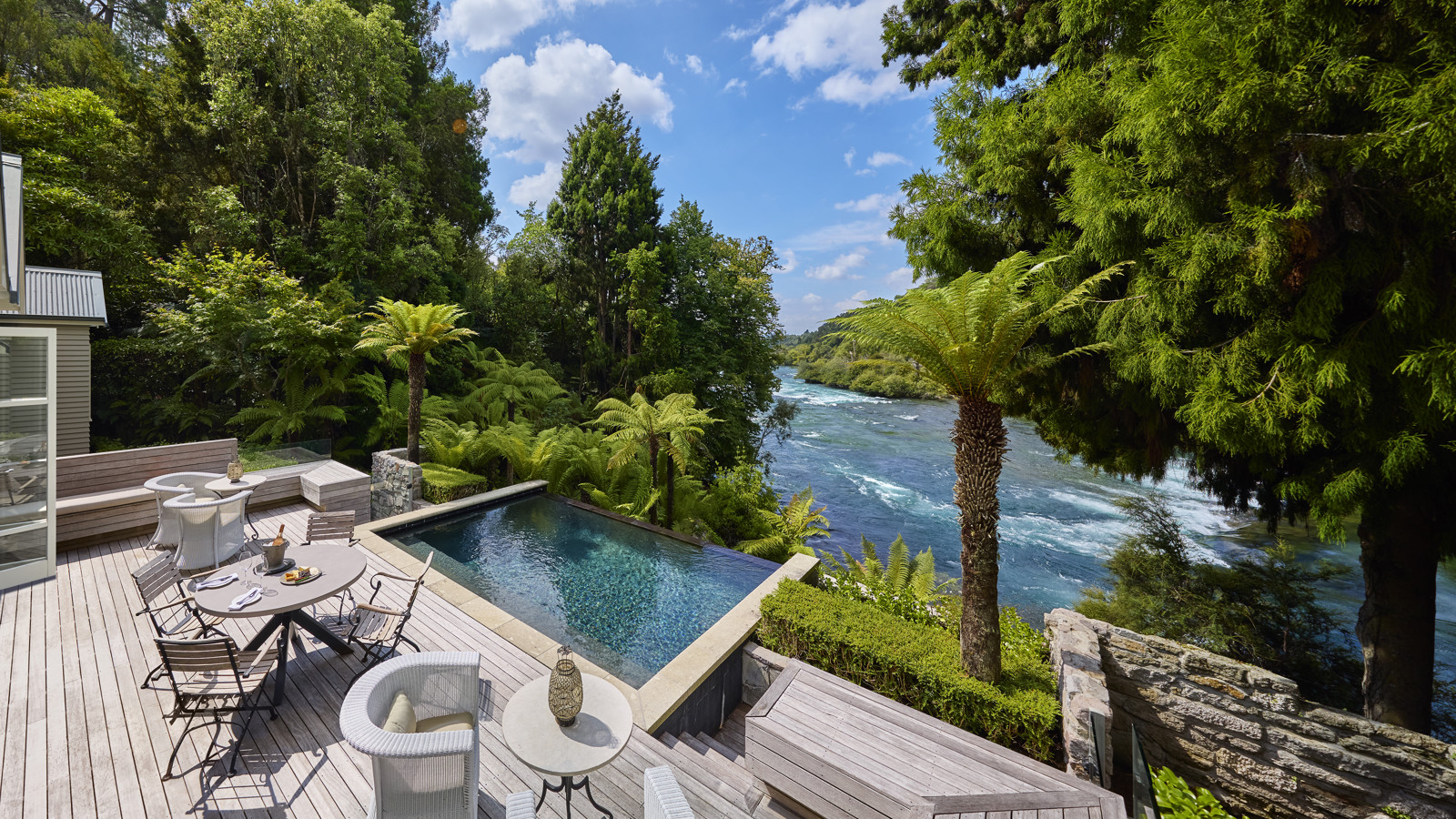 Mitt på Nordön nära sjön Taupo ligger Huka Lodge. Det som från början var en liten fiskestuga är numera ett berömt hotell som har lockat till sig kungligheter och andra celebriteter från världens alla hörn. Huka Lodge ligger på branten till Waikato River och med sina rum erbjuder de en service och komfort av yppersta klass. Huvudbyggnaden blir den stora samlingsplatsen för gästerna vid frukost innan de beger sig ut på dagens aktiviteter eller vid fördrinken innan middag, som för övrigt dukas upp vid långbord. Inom nära omkrets från Huka Lodge finns möjligheter till fiske, golf, ridning, helikoptersightseeing, kajaking etc. Bättre än så här kan det inte bli på Nya Zeeland!