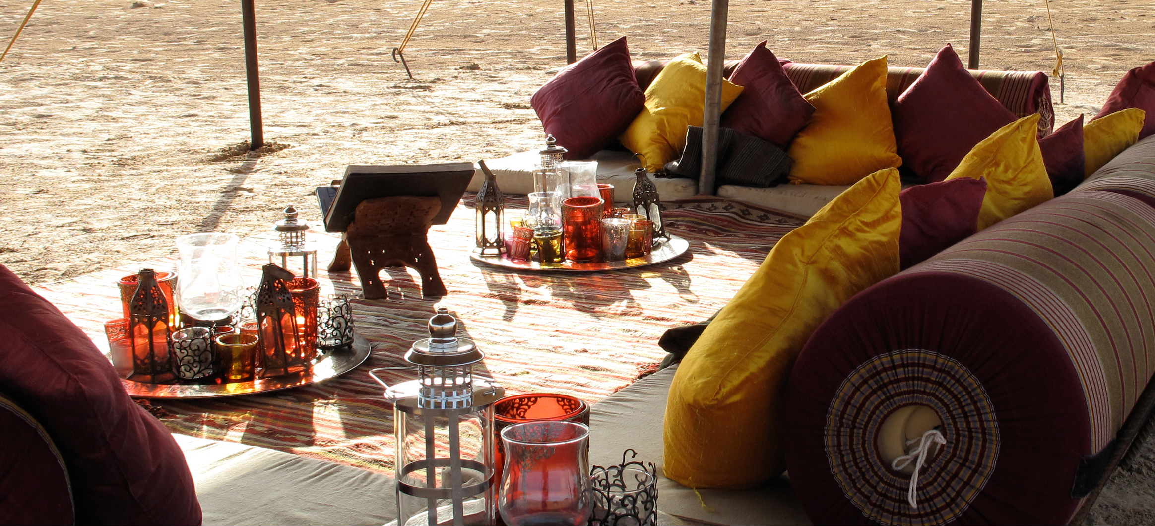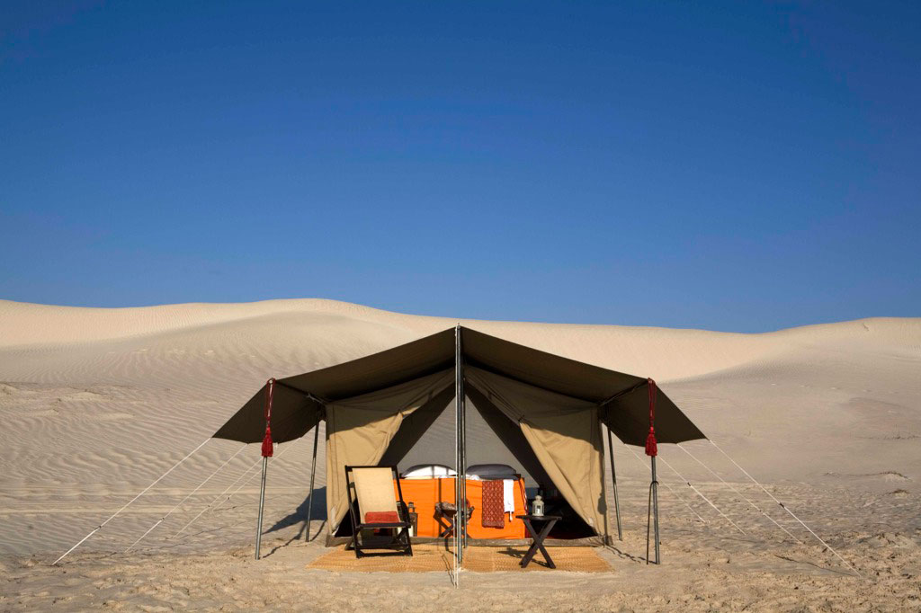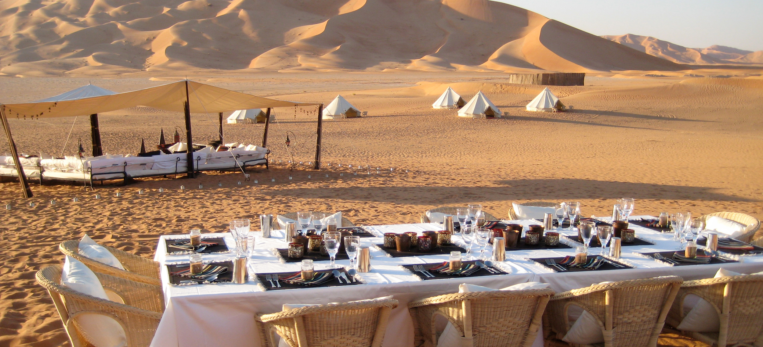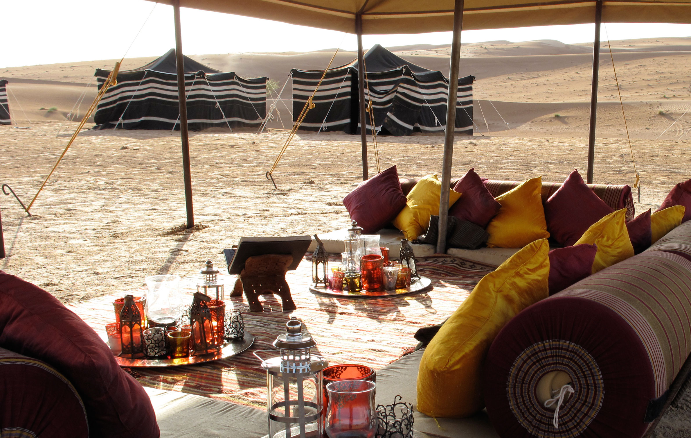 Hud Hud Travel är en exklusiv ökensafari där du bor i helt privata tältläger utan andra gäster och påminner om en äkta en beduinupplevelse. Du blir otroligt väl omhändertagen av bra guider och åker i bekväma fyrhjulsdrivna jeepar mellan camperna, till exempel från sandöknen Wahiba Sands till ett tältläger direkt på stranden vid Indiska oceanen. Tälten är rymliga och du sover i riktiga sängar bland kuddar och bolster. Varje tält har egen dusch och faciliteter. Det finns ingen elektricitet och att duscha i uppvärmda ”bucket showers” direkt under bar himmel och stjärnor är en del av den unika upplevelsen. I öknen där det är lite kallare om nätterna sker boendet i fyrkantiga syrianska tält med väggar tjocka som mattor. På stranden där nätterna är varmare är tälten tunnare och påminner om en afrikansk safariupplevelse på savannen. De underbara rätterna av grytor, grillat och nybakt bröd tillreds i kökstältet endast med gasolkök och kockar med pannlampa. De njuts sedan i natten bland mattor, kuddar och med vattenpipa under den arabiska stjärnhimlen. Hud Hud Travel är att leva underbart beduinliv - i ”Tusen och en natt-stil”.